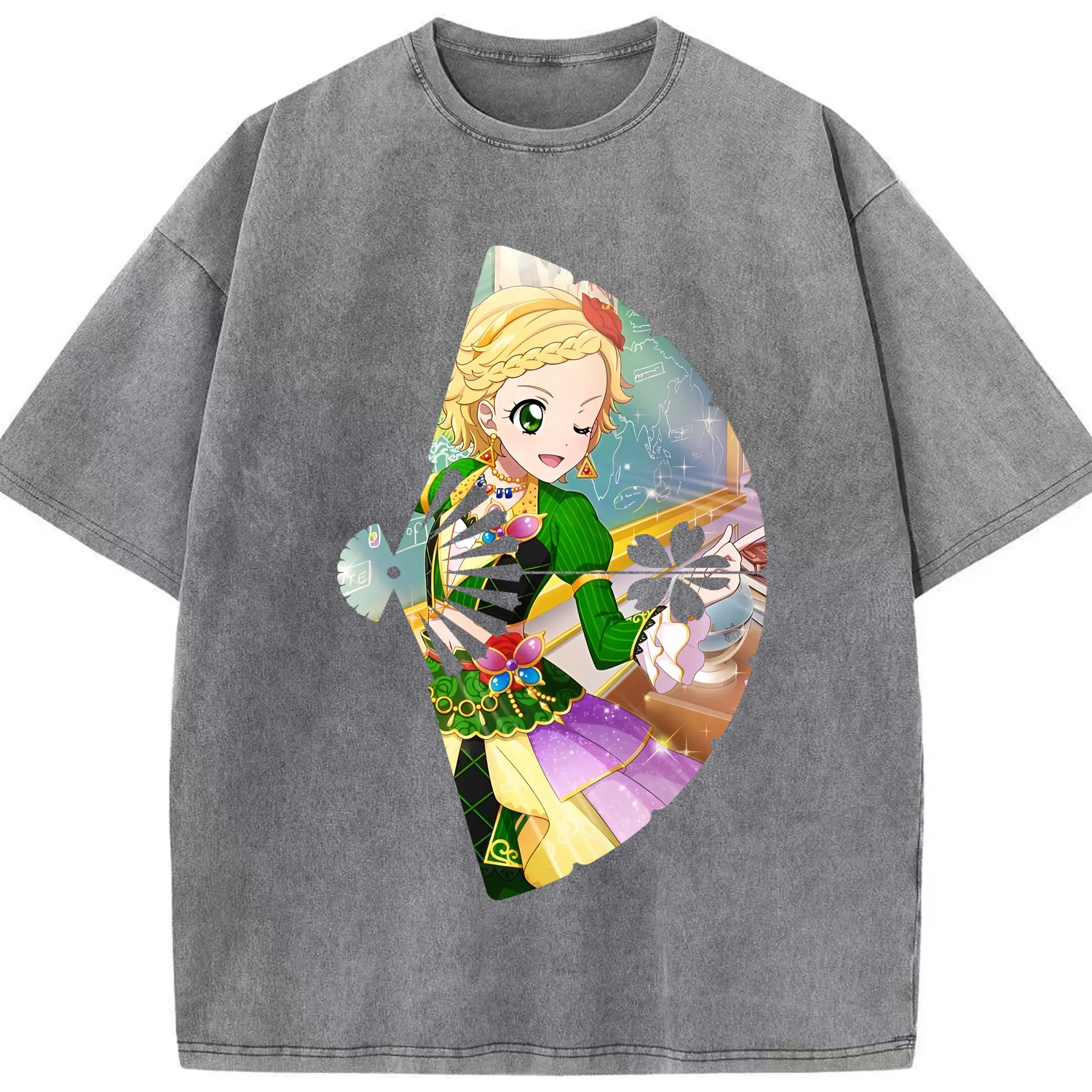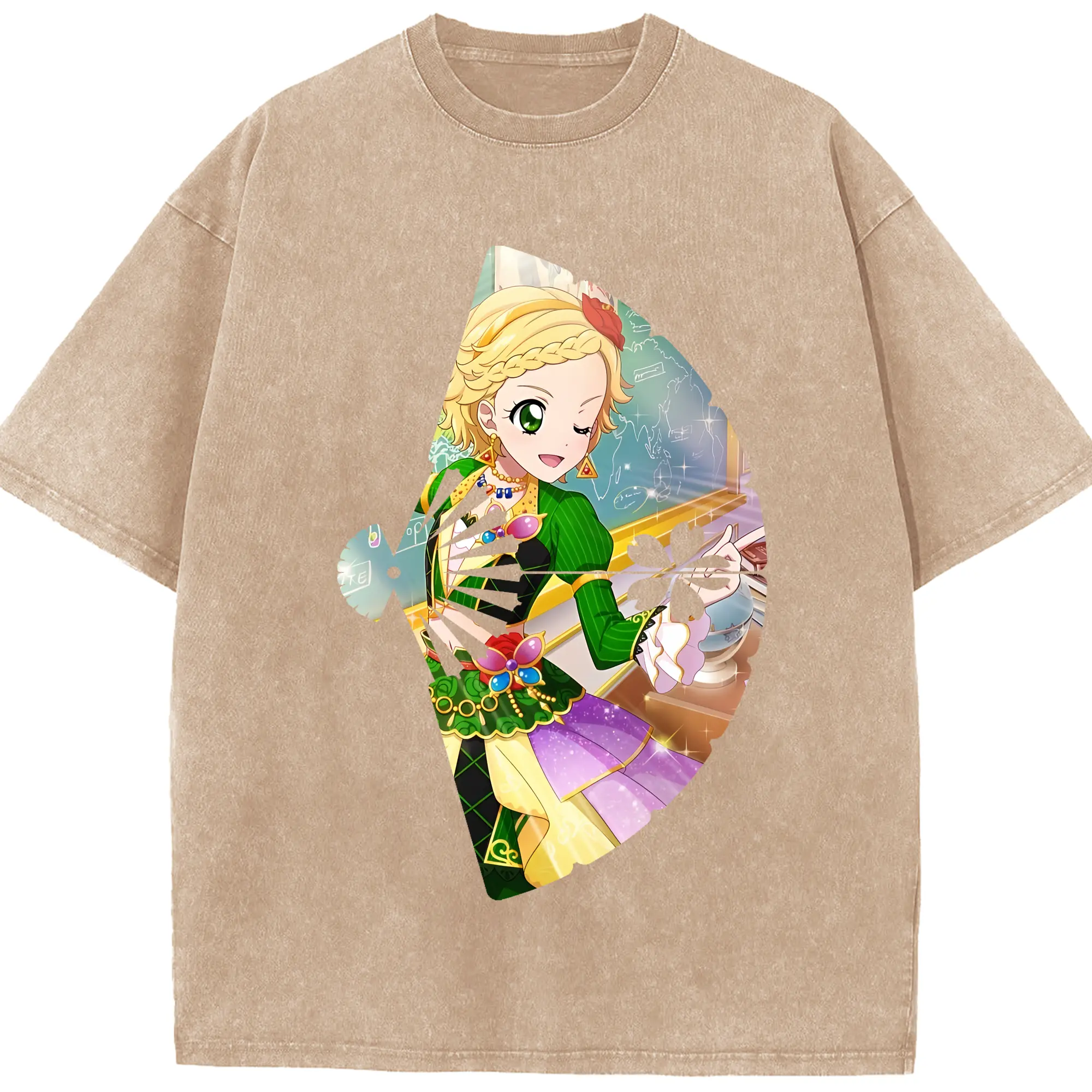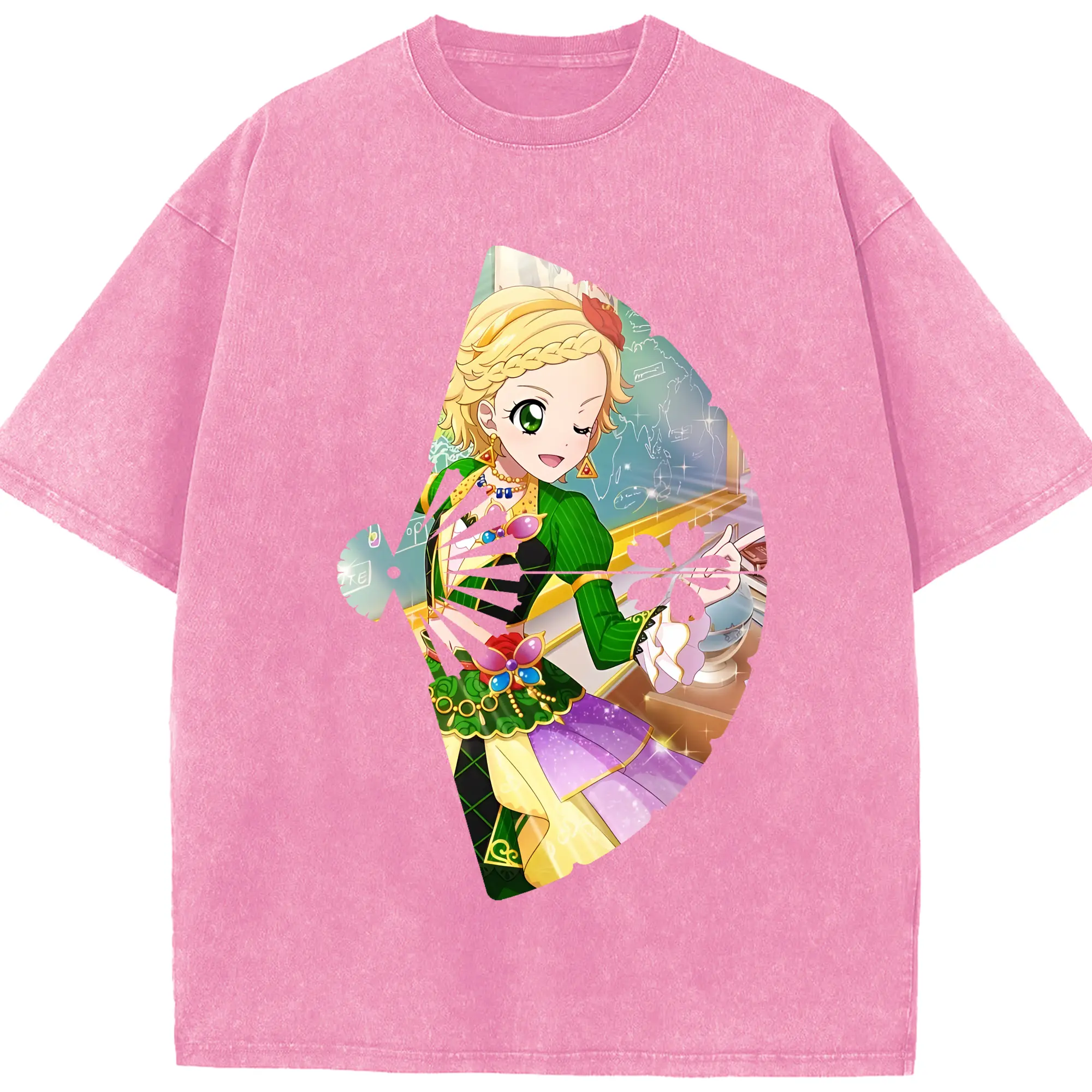 アイカツ グッズ 新条 ひなき - 綿100% ヴィンテージ風 半袖Tシャツ ・ 背面プリント ・ 柔らか肌触り ・ 通気性 快適 ・ スポーツ カジュアル 外出用