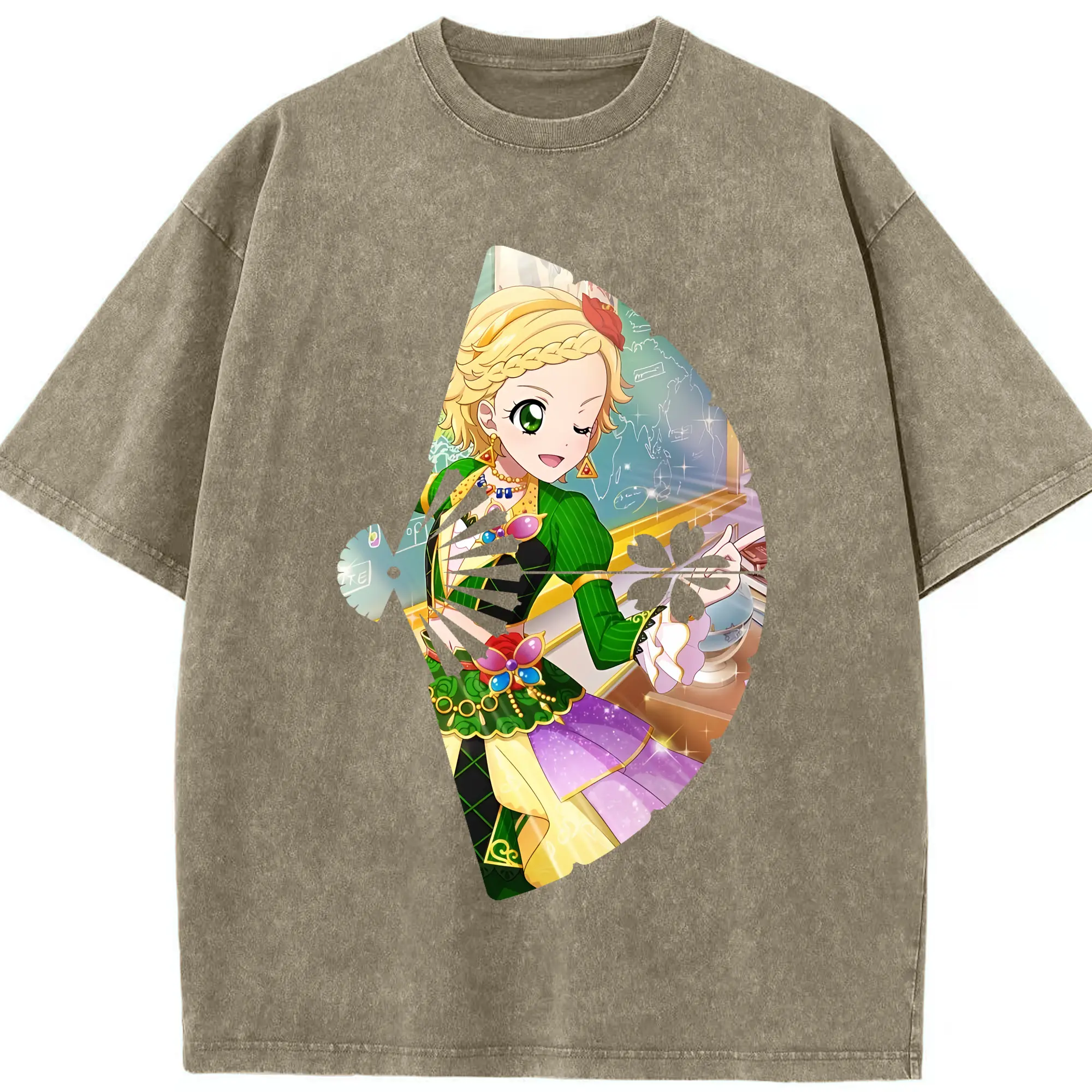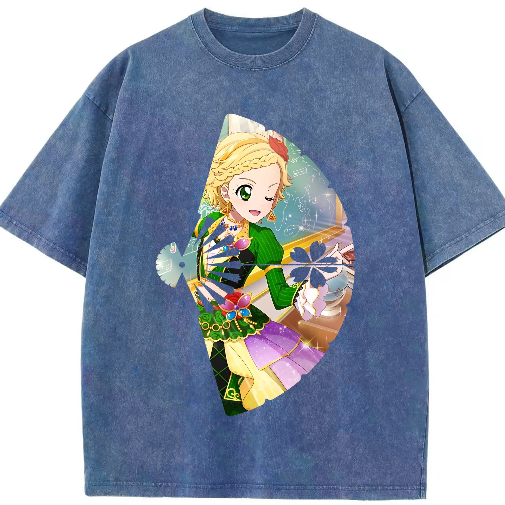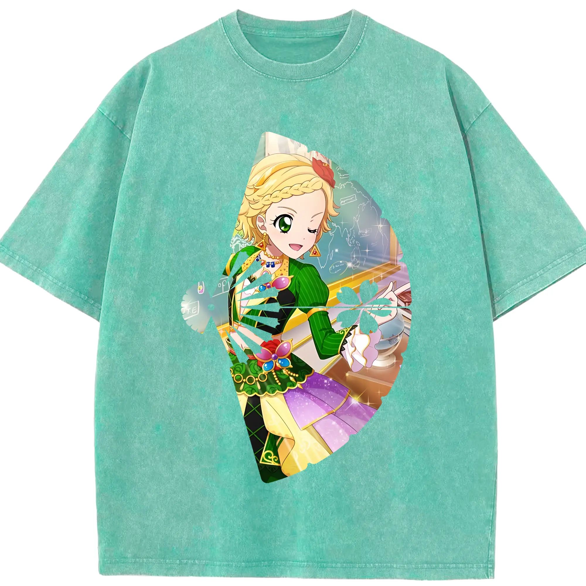 アイカツ グッズ 新条 ひなき - 綿100% ヴィンテージ風 半袖Tシャツ ・ 背面プリント ・ 柔らか肌触り ・ 通気性 快適 ・ スポーツ カジュアル 外出用