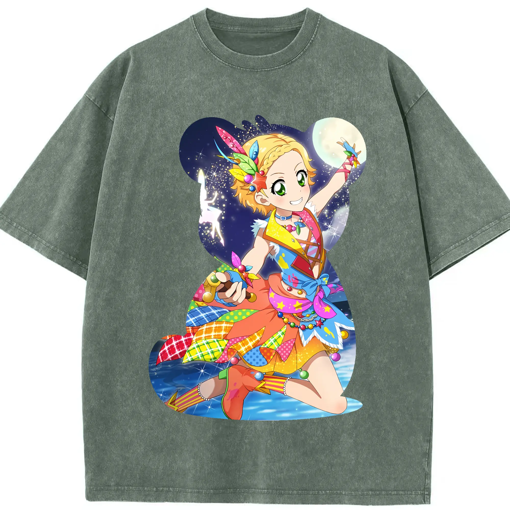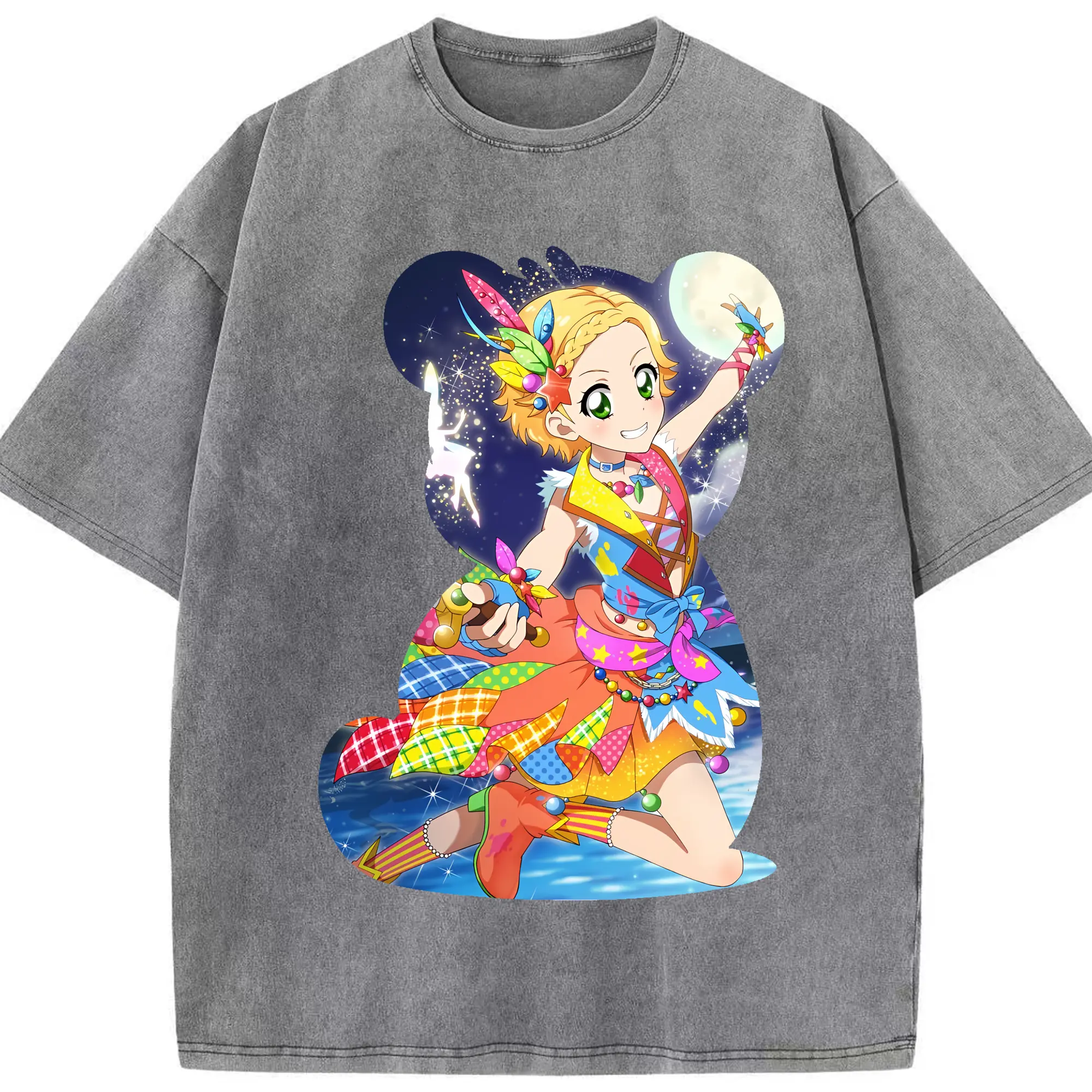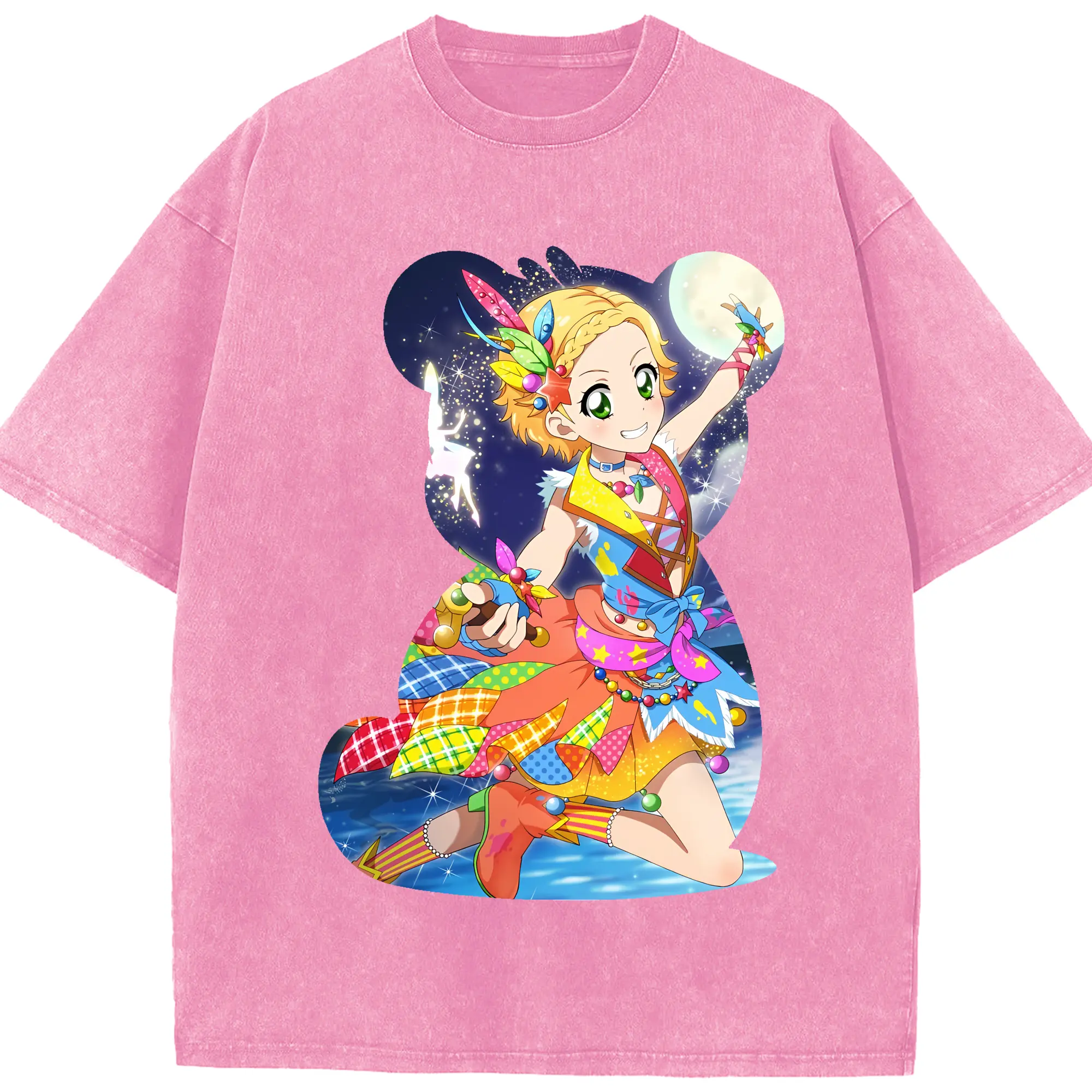 アイカツ グッズ 新条 ひなき - 綿100% ヴィンテージ風 半袖Tシャツ ・ 背面プリント ・ 柔らか肌触り ・ 通気性 快適 ・ スポーツ カジュアル 外出用