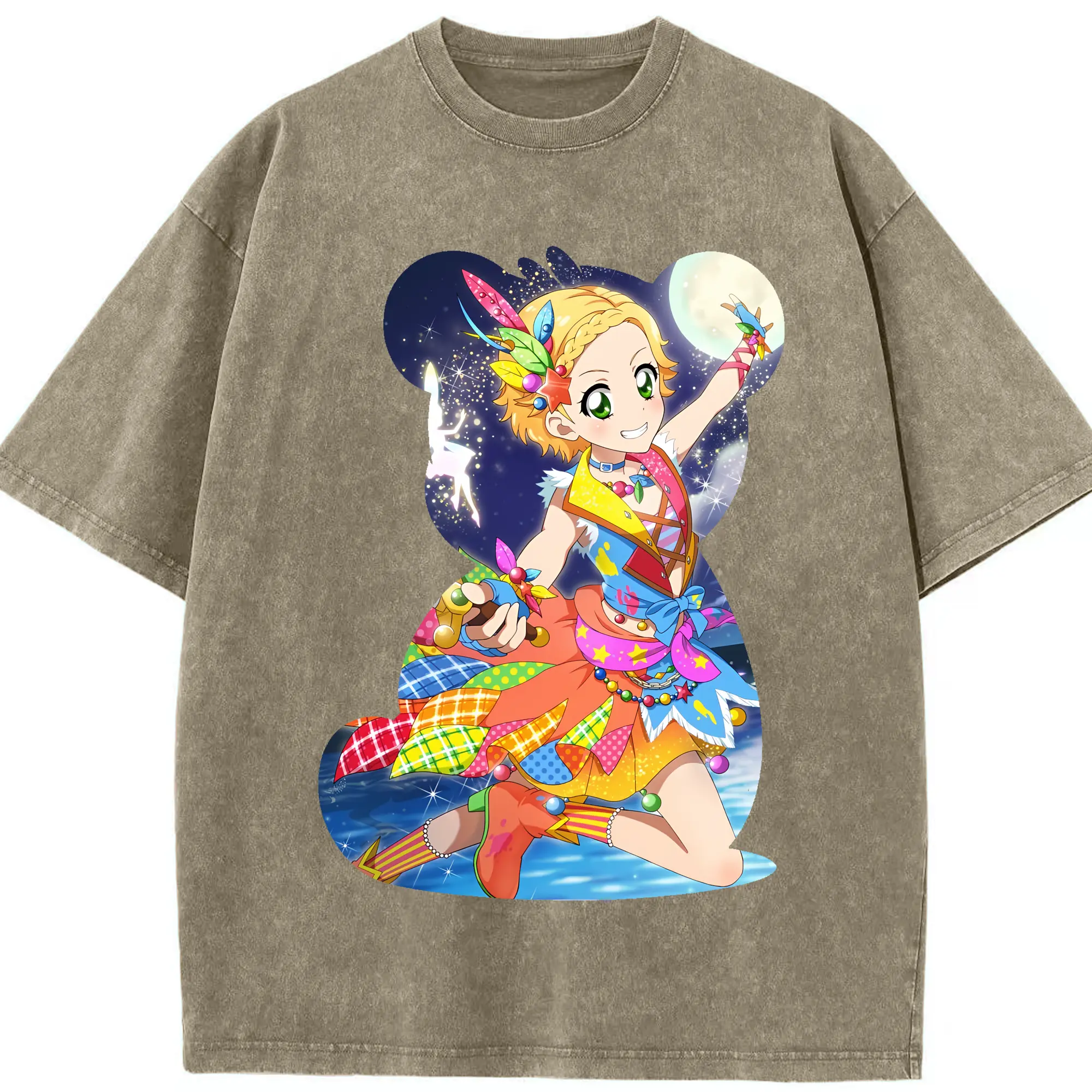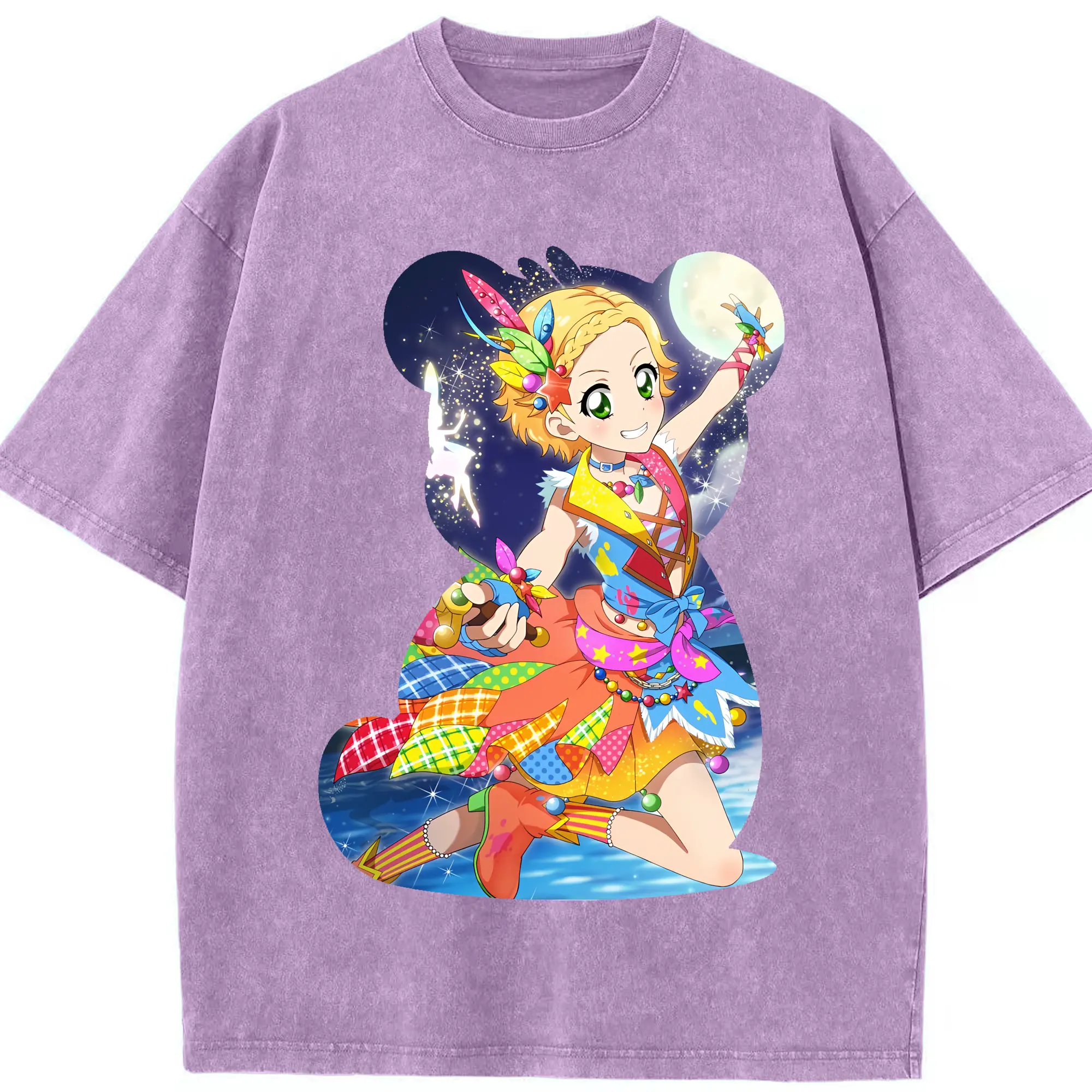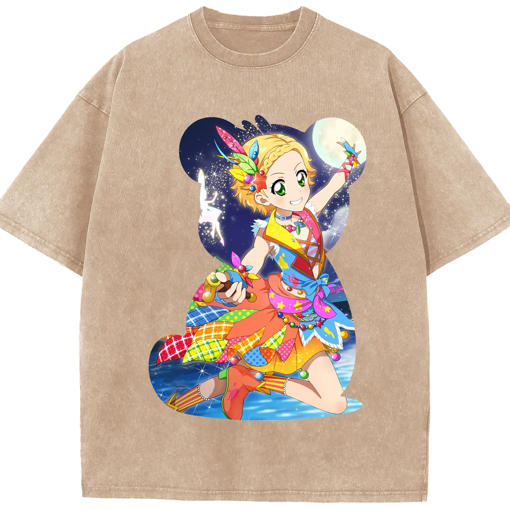 アイカツ グッズ 新条 ひなき - 綿100% ヴィンテージ風 半袖Tシャツ ・ 背面プリント ・ 柔らか肌触り ・ 通気性 快適 ・ スポーツ カジュアル 外出用