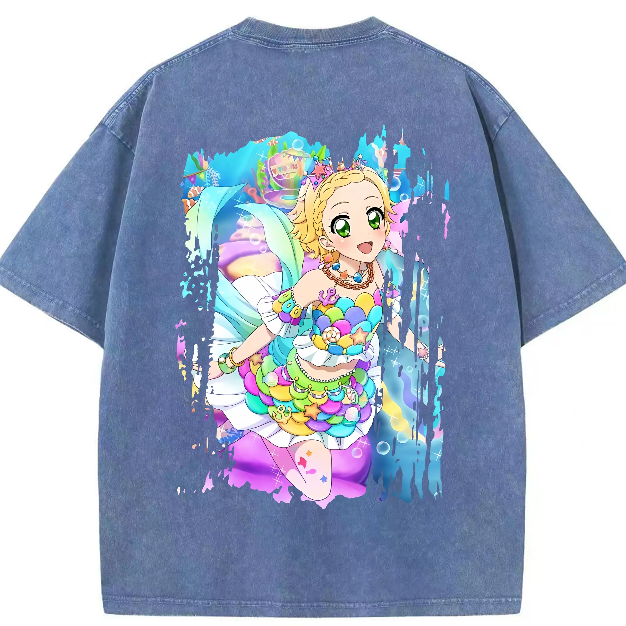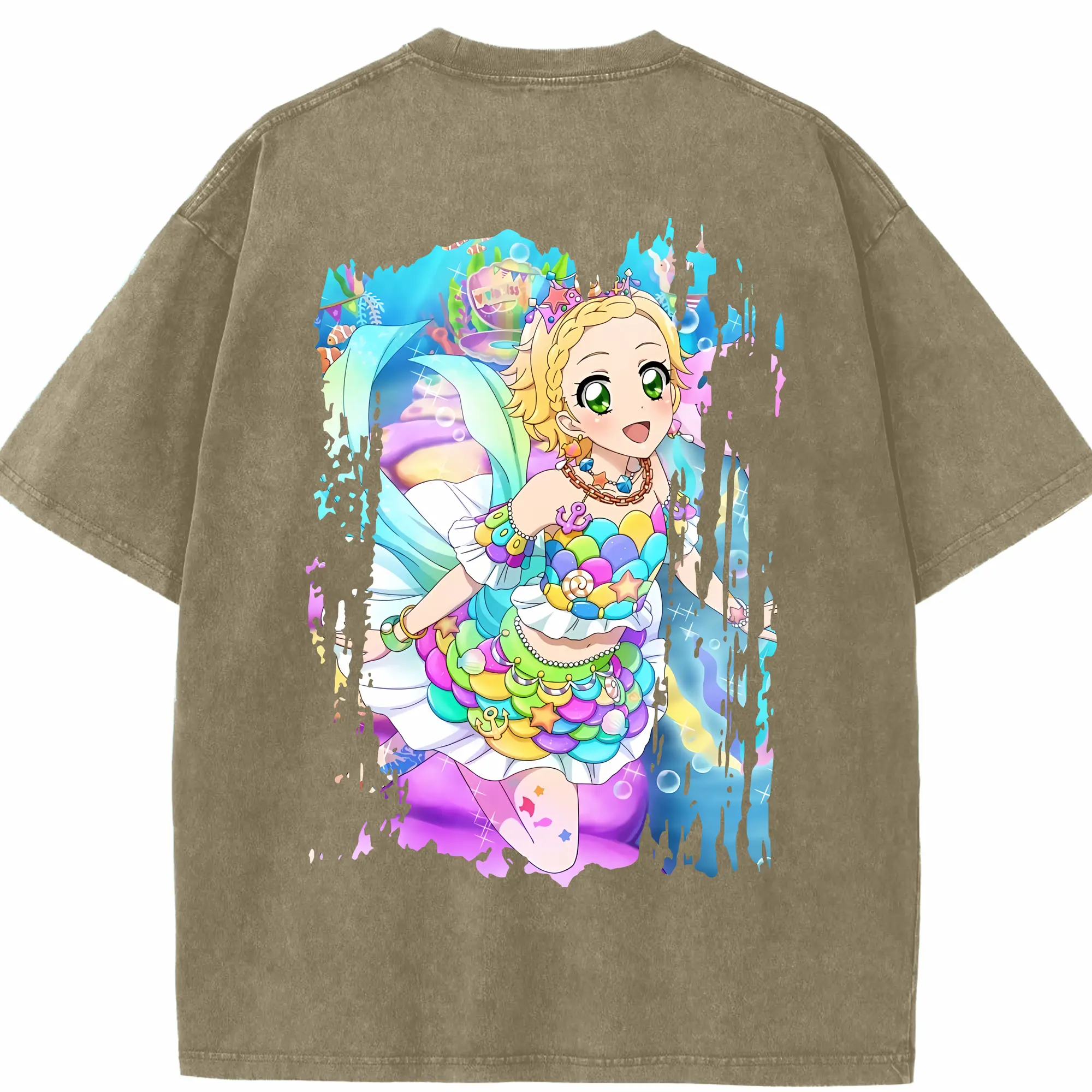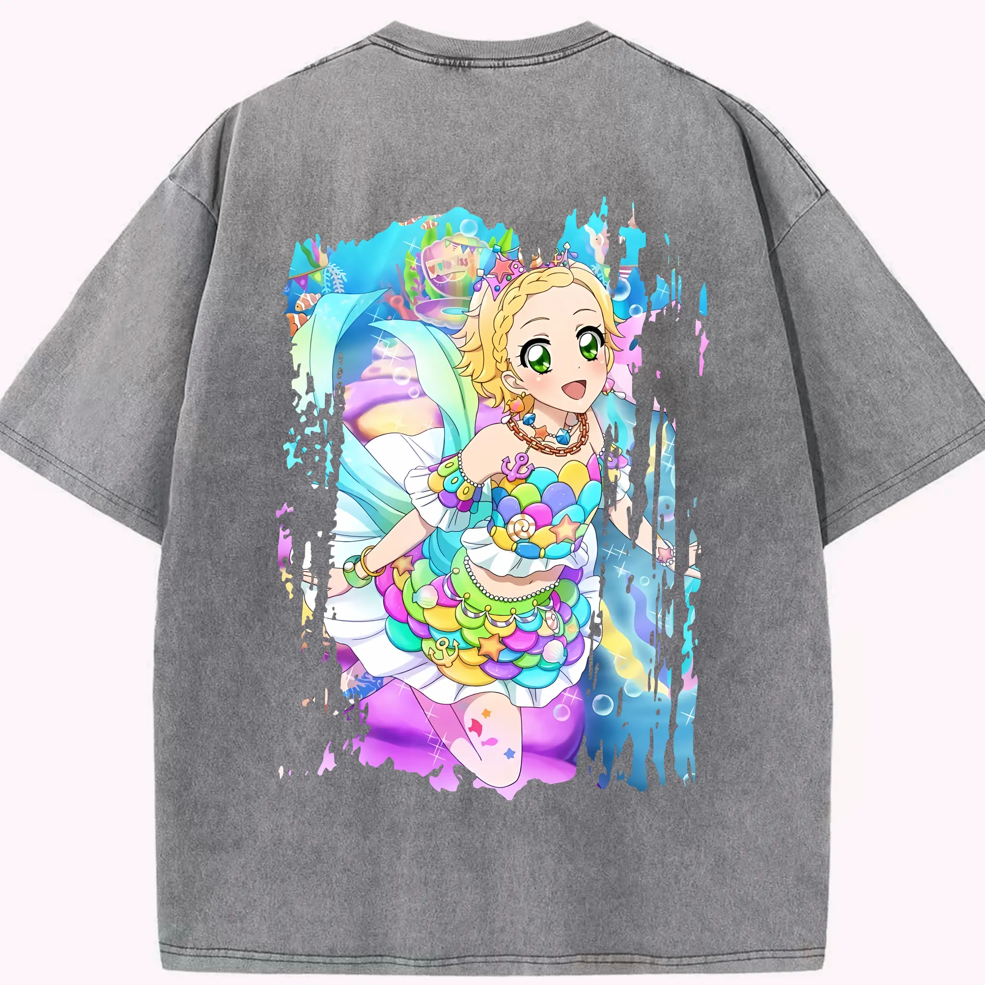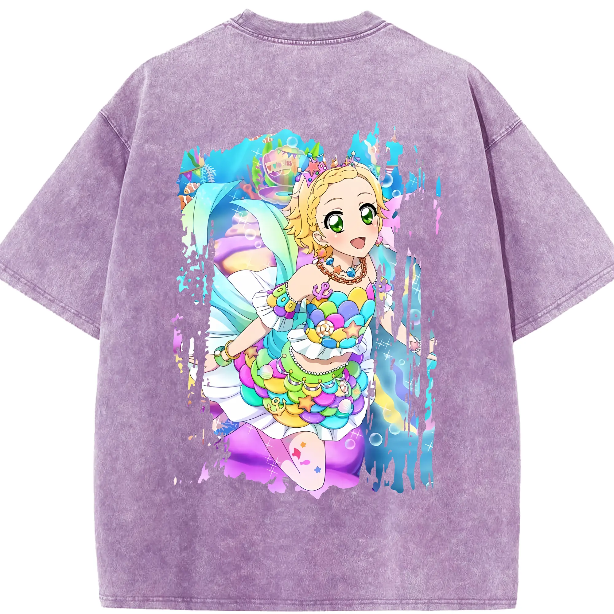 アイカツ グッズ 新条 ひなき - 綿100% ヴィンテージ風 半袖Tシャツ ・ フロントプリント ・ 柔らか肌触り ・ 通気性 快適 ・ スポーツ カジュアル 外出用