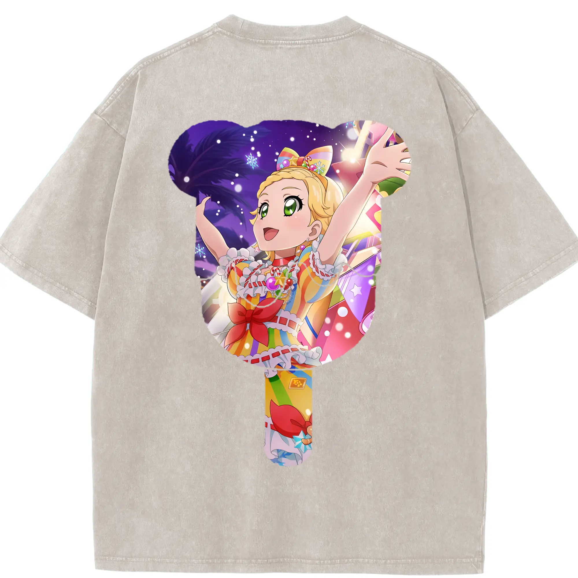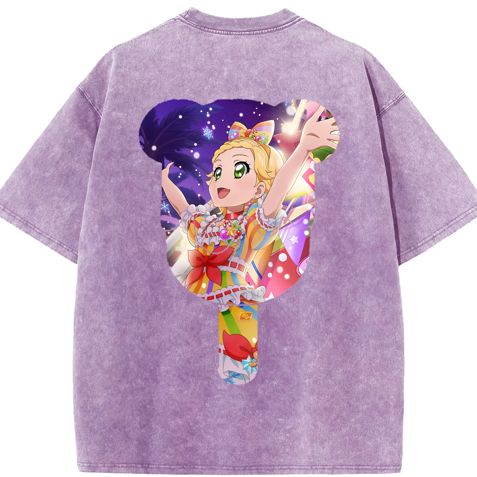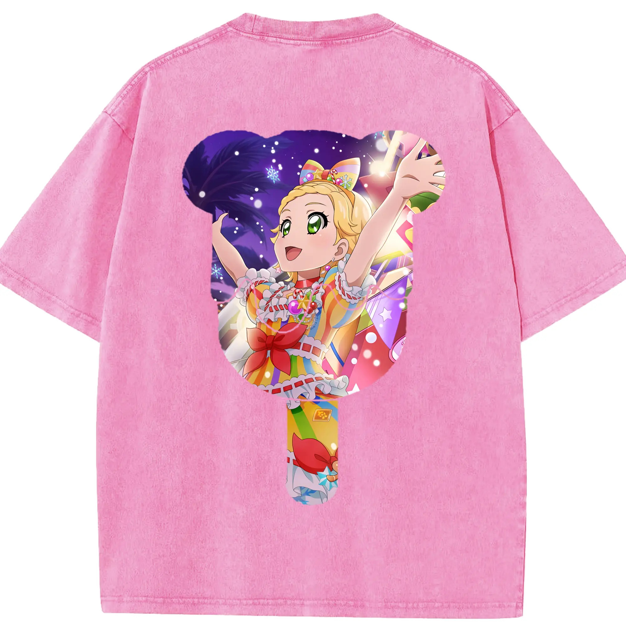 アイカツ グッズ 新条 ひなき - 綿100% ヴィンテージ風 半袖Tシャツ ・ フロントプリント ・ 柔らか肌触り ・ 通気性 快適 ・ スポーツ カジュアル 外出用
