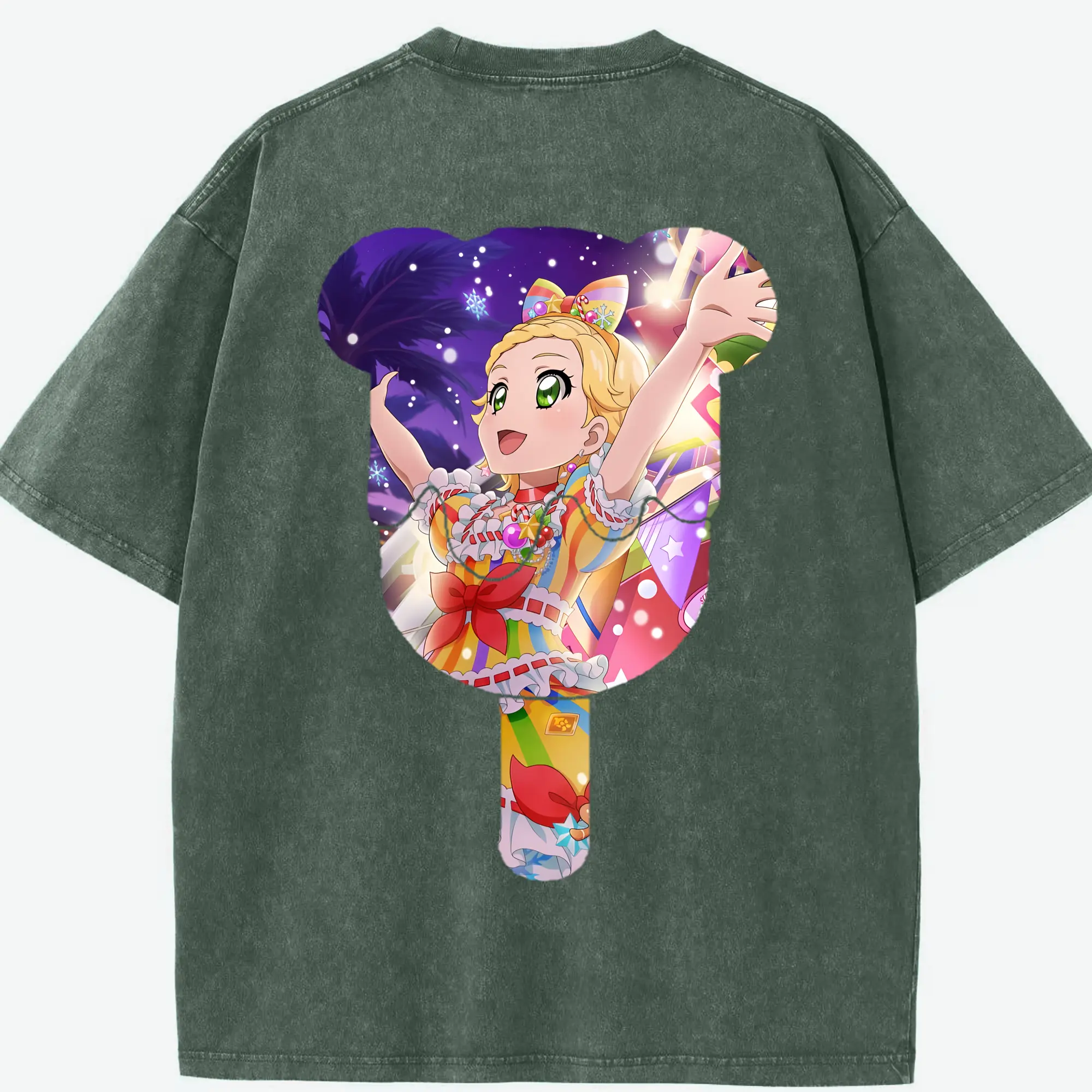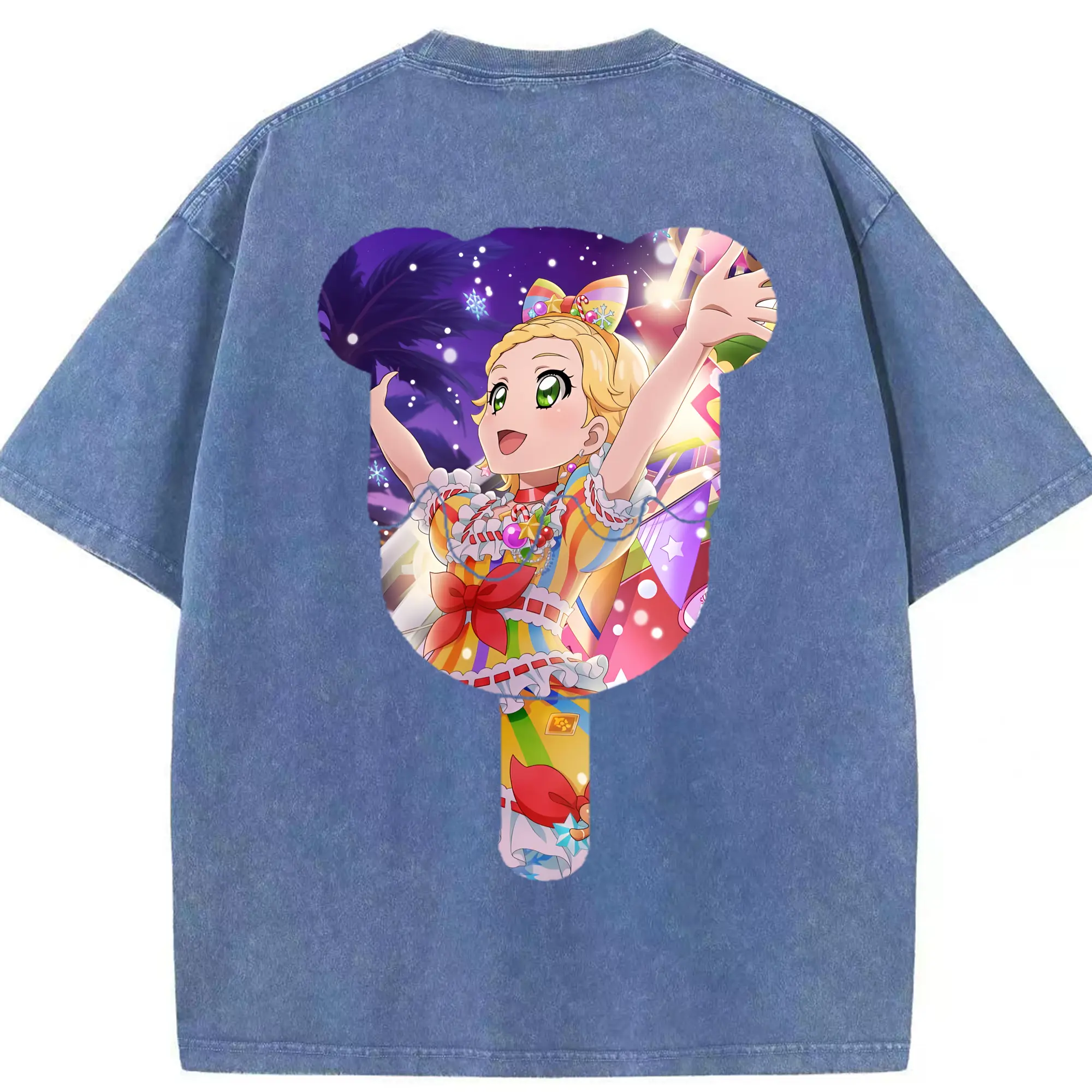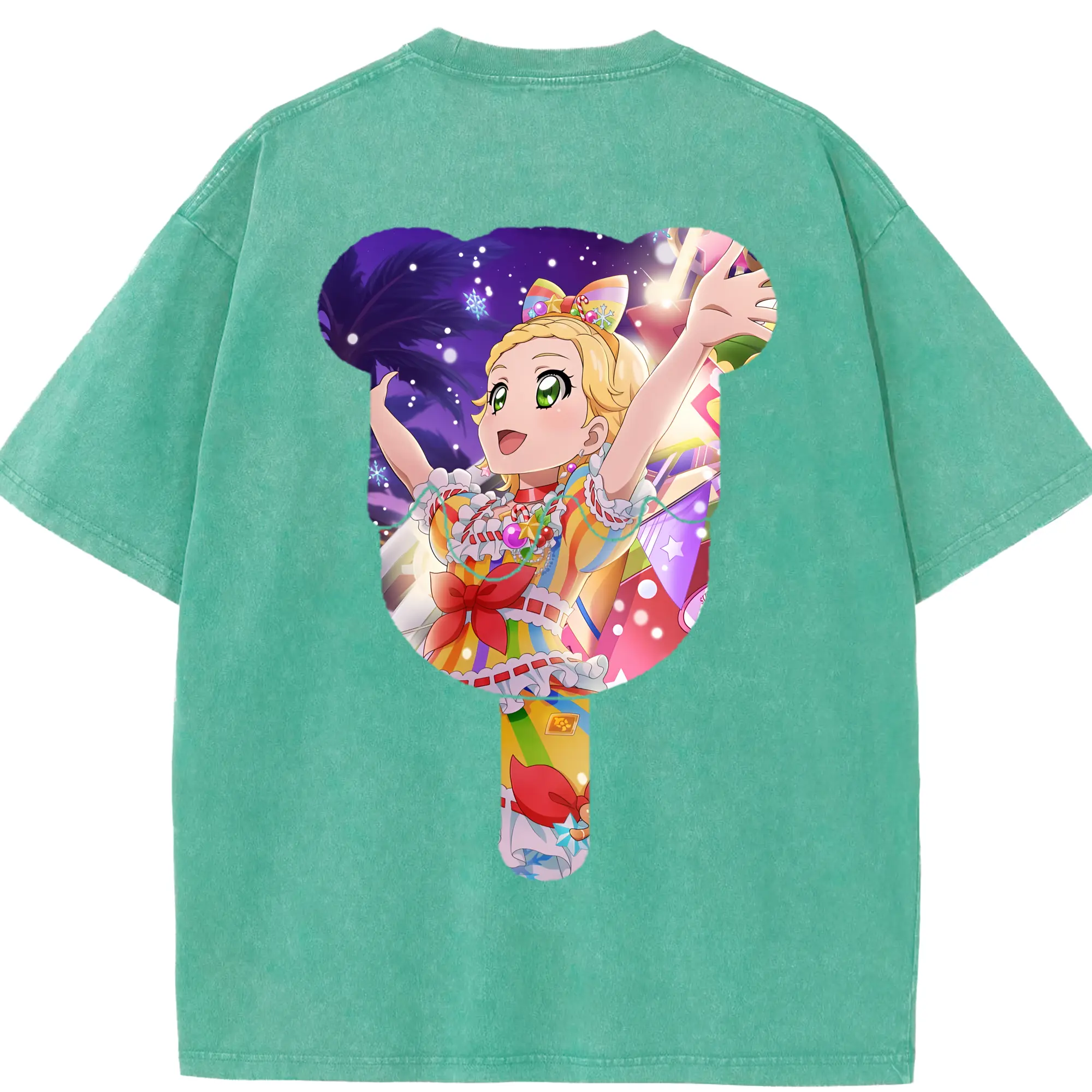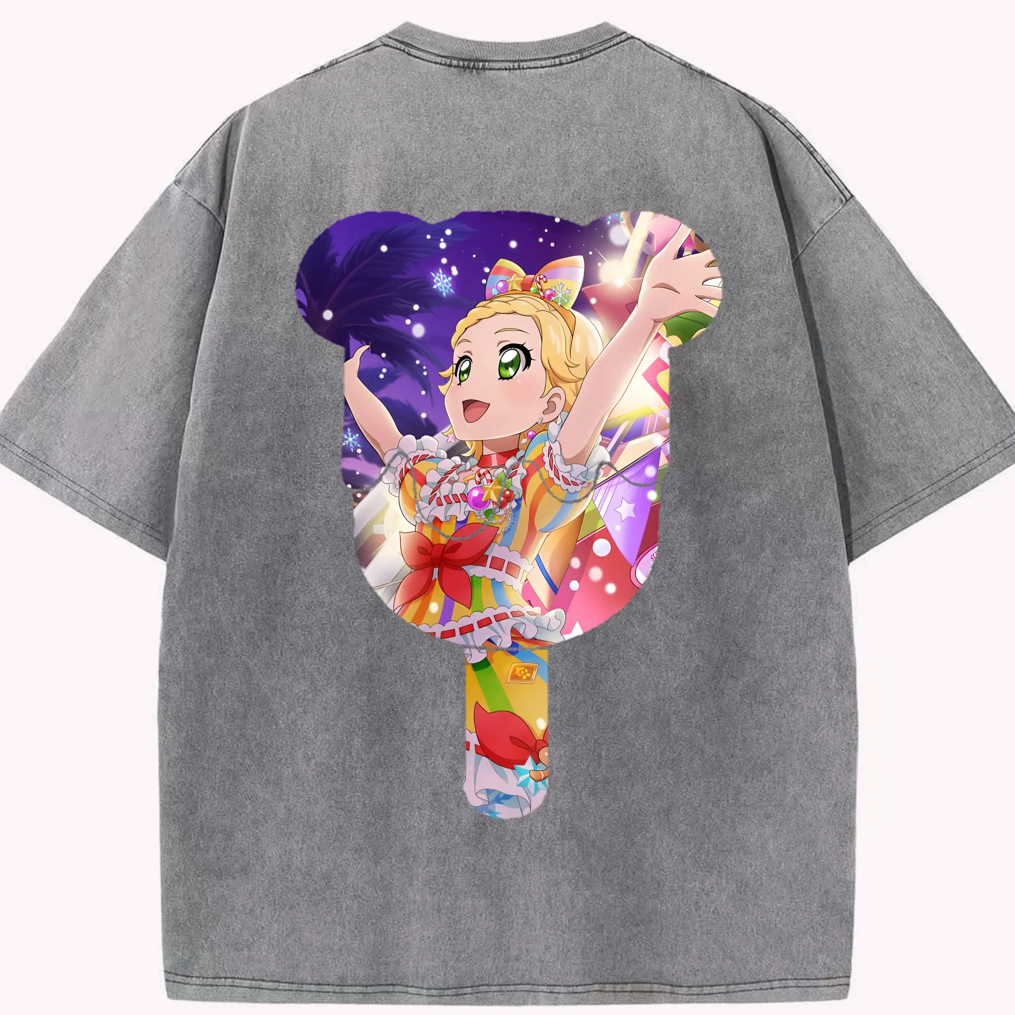 アイカツ グッズ 新条 ひなき - 綿100% ヴィンテージ風 半袖Tシャツ ・ フロントプリント ・ 柔らか肌触り ・ 通気性 快適 ・ スポーツ カジュアル 外出用