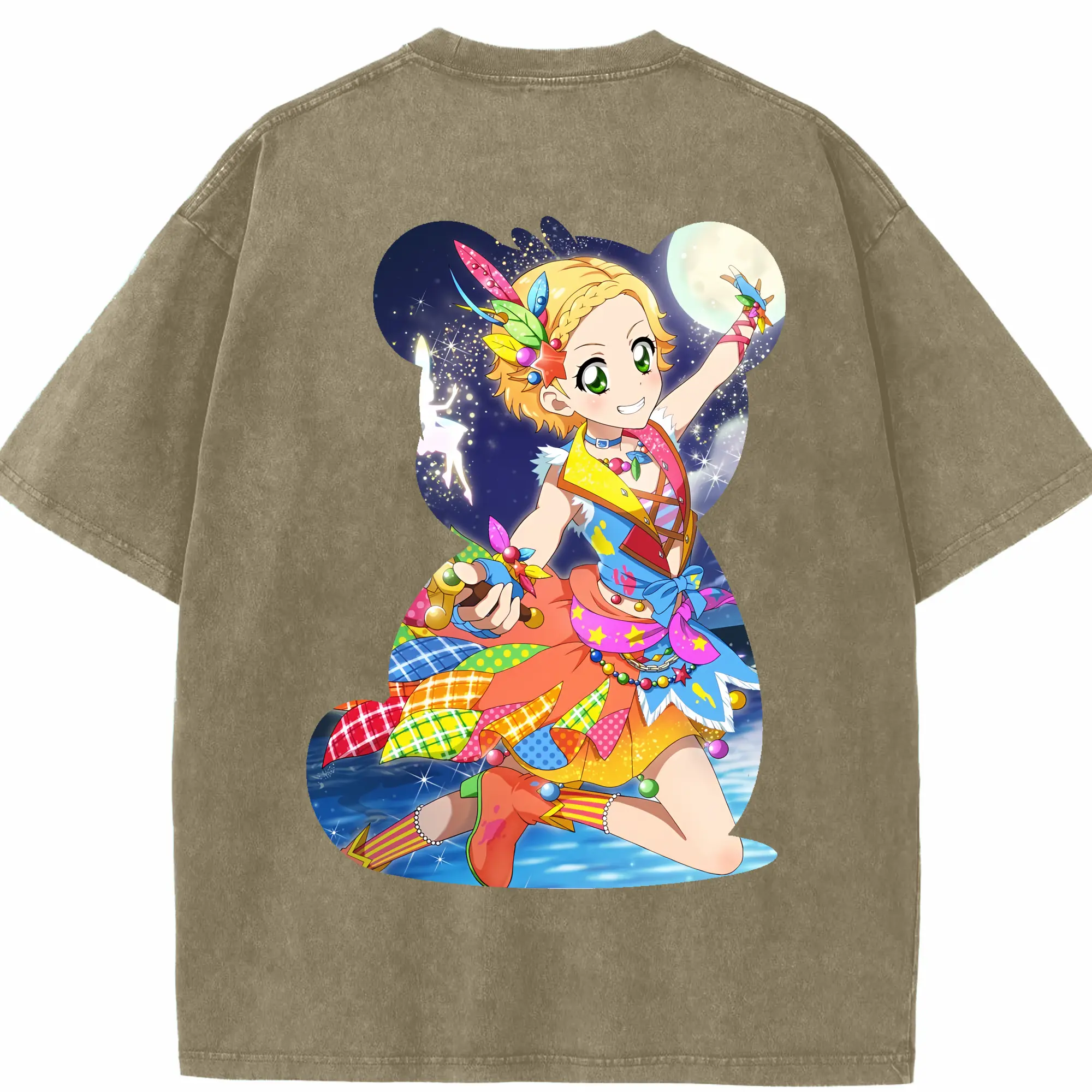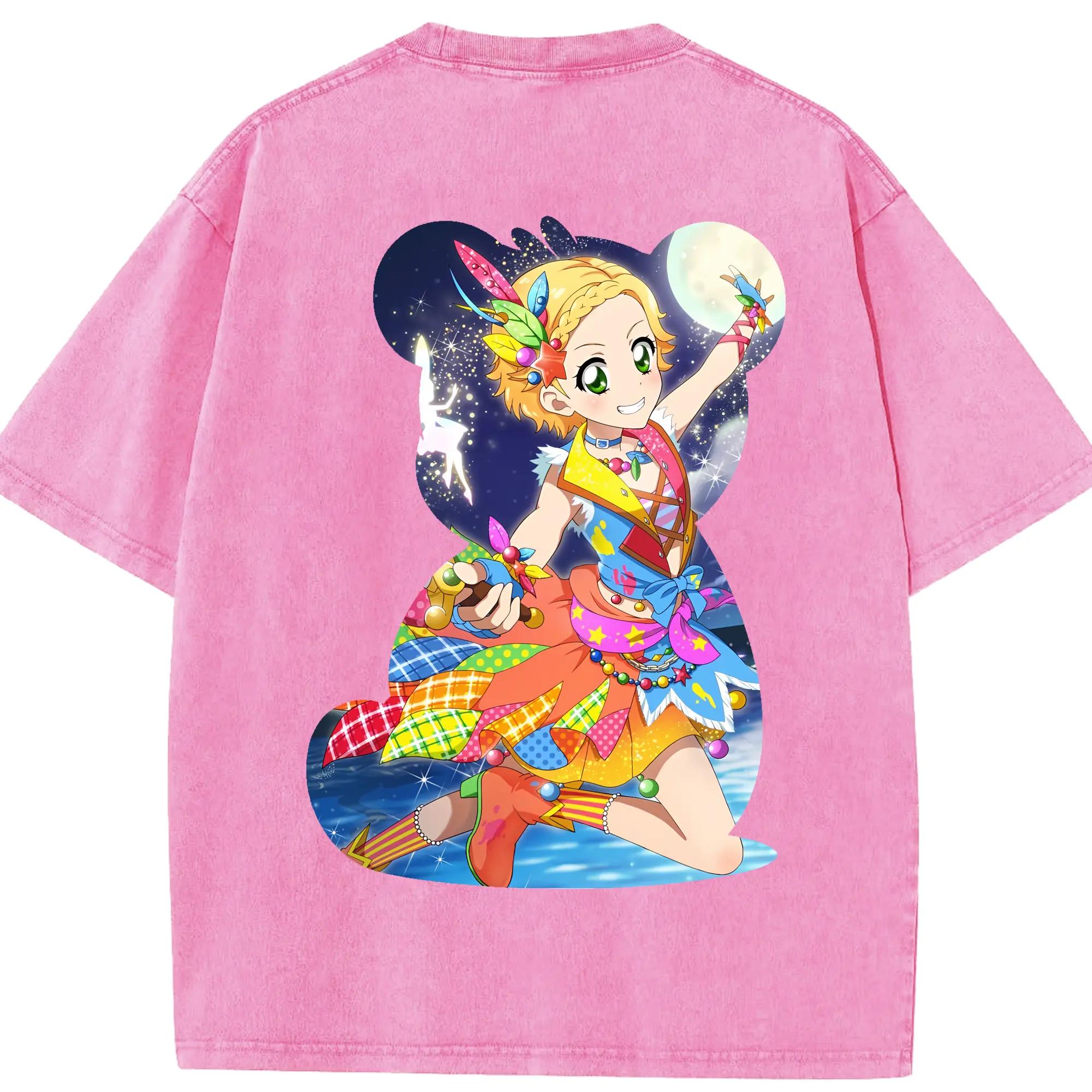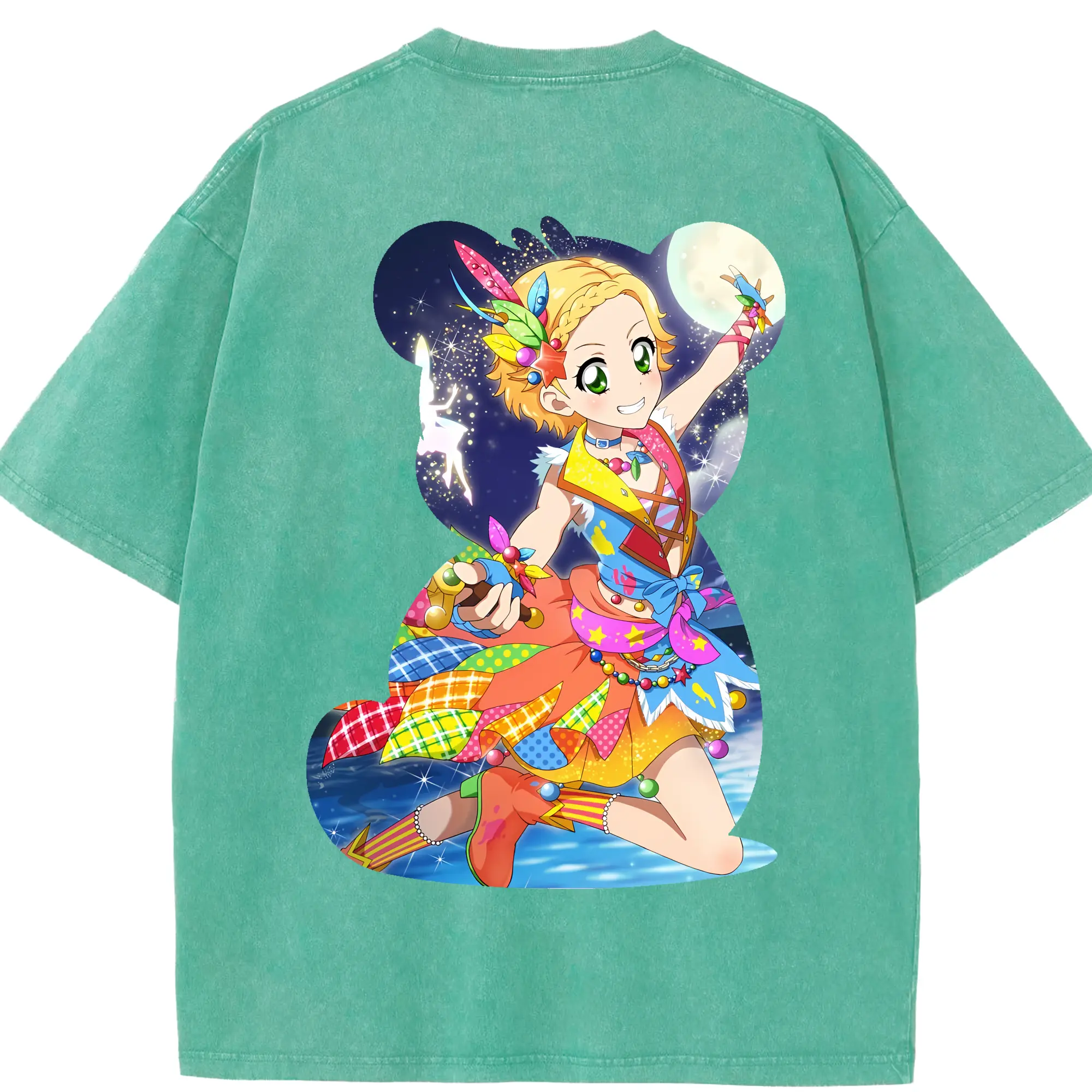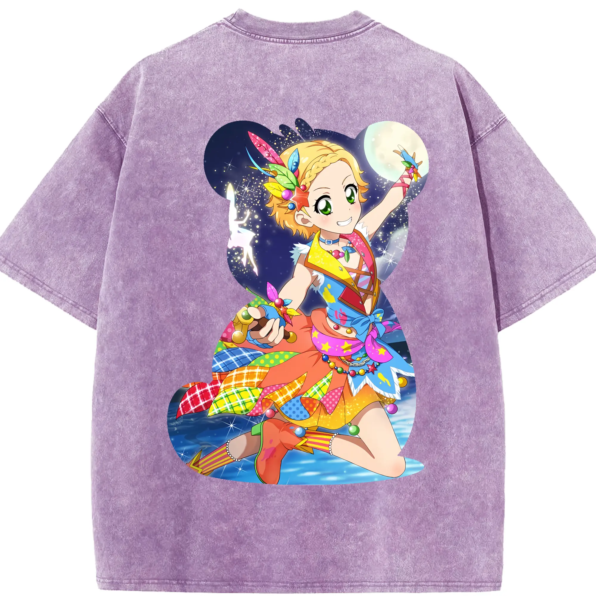 アイカツ グッズ 新条 ひなき - 綿100% ヴィンテージ風 半袖Tシャツ ・ フロントプリント ・ 柔らか肌触り ・ 通気性 快適 ・ スポーツ カジュアル 外出用