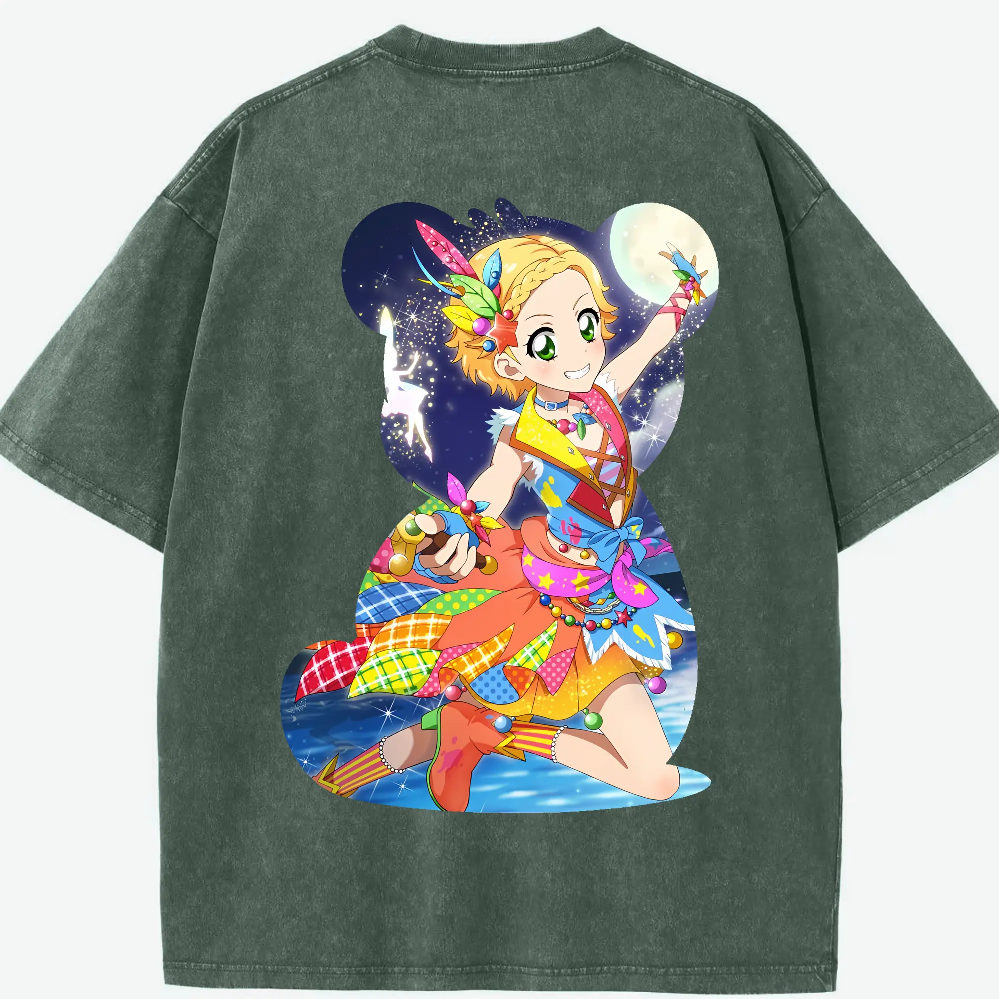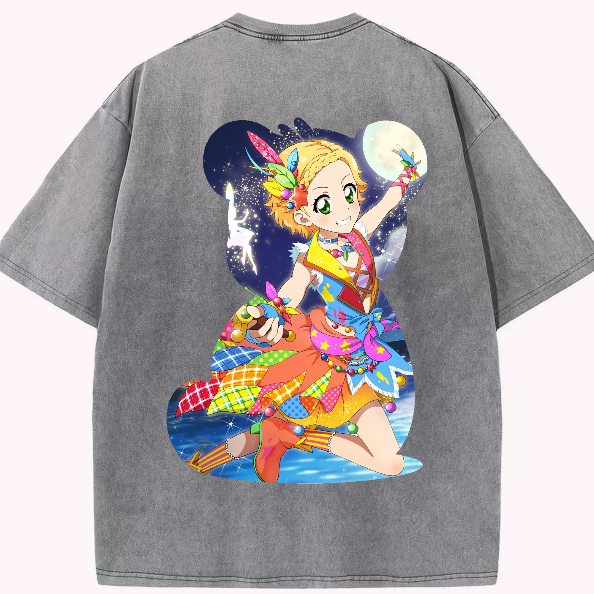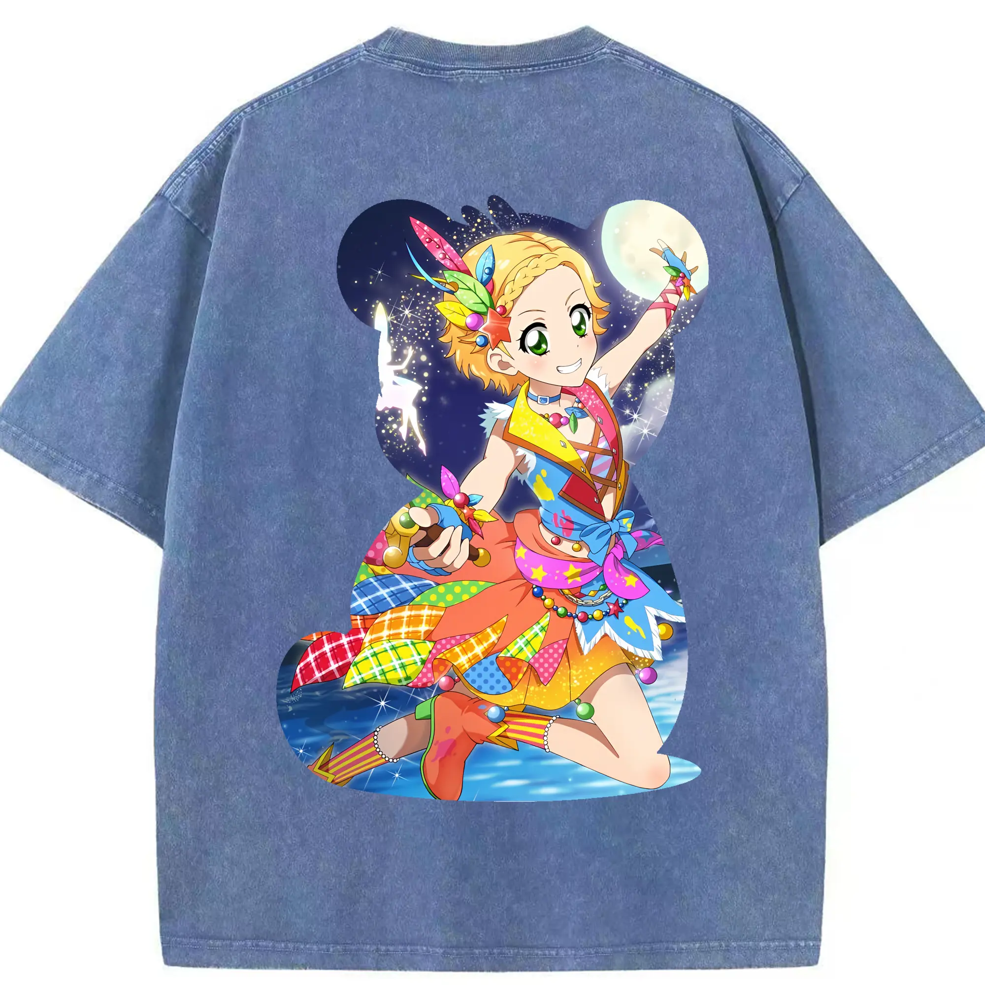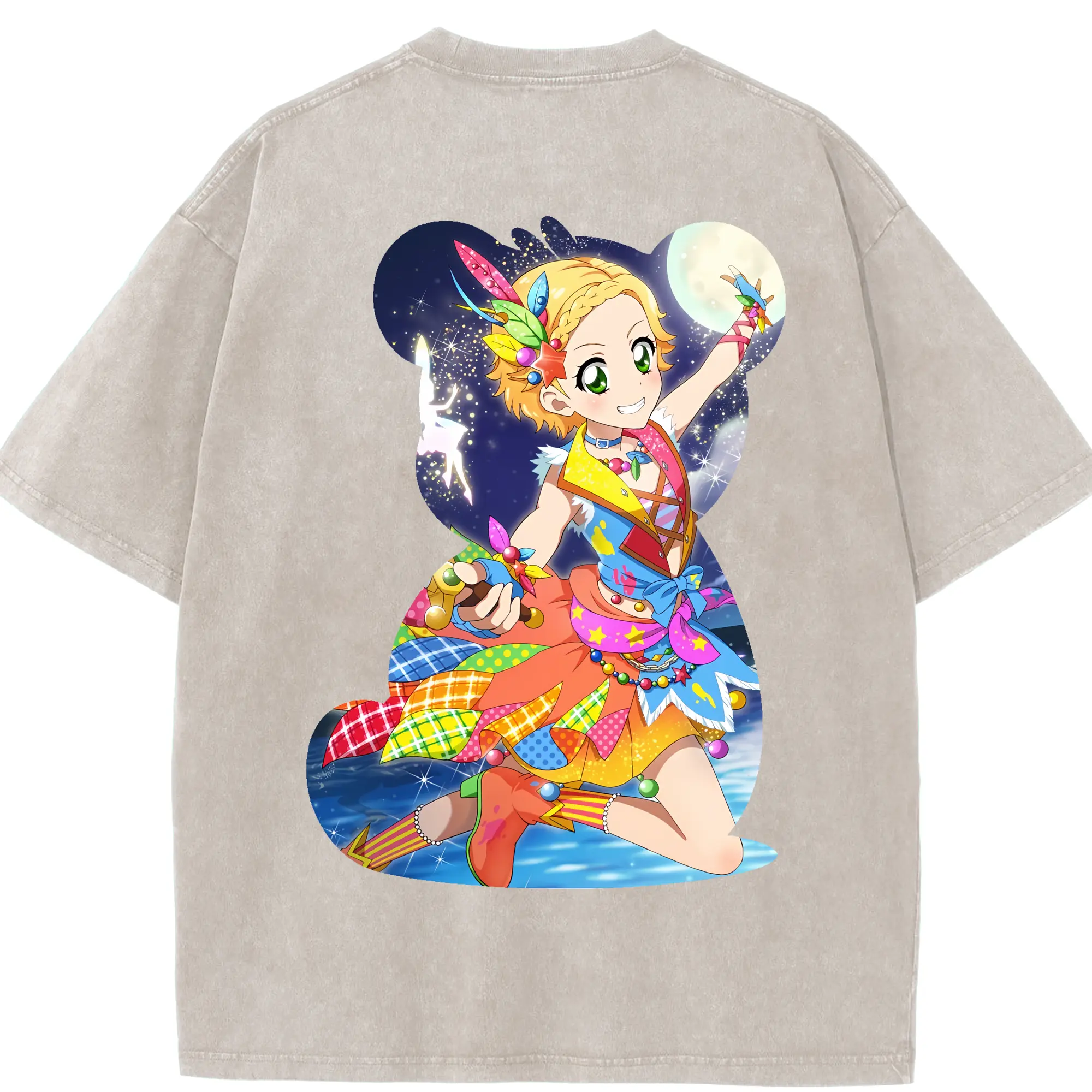 アイカツ グッズ 新条 ひなき - 綿100% ヴィンテージ風 半袖Tシャツ ・ フロントプリント ・ 柔らか肌触り ・ 通気性 快適 ・ スポーツ カジュアル 外出用