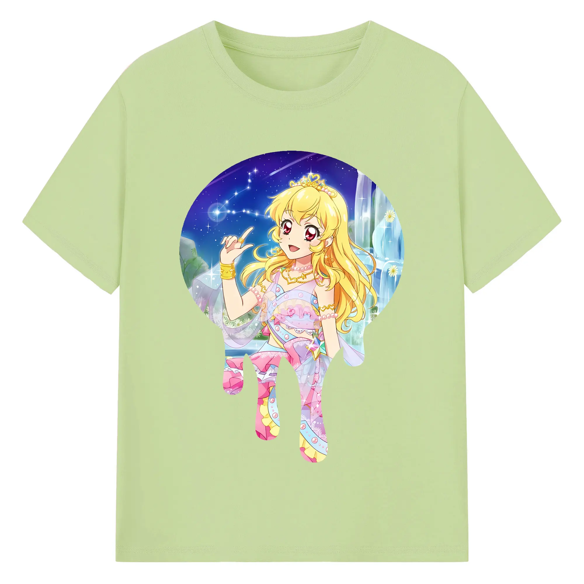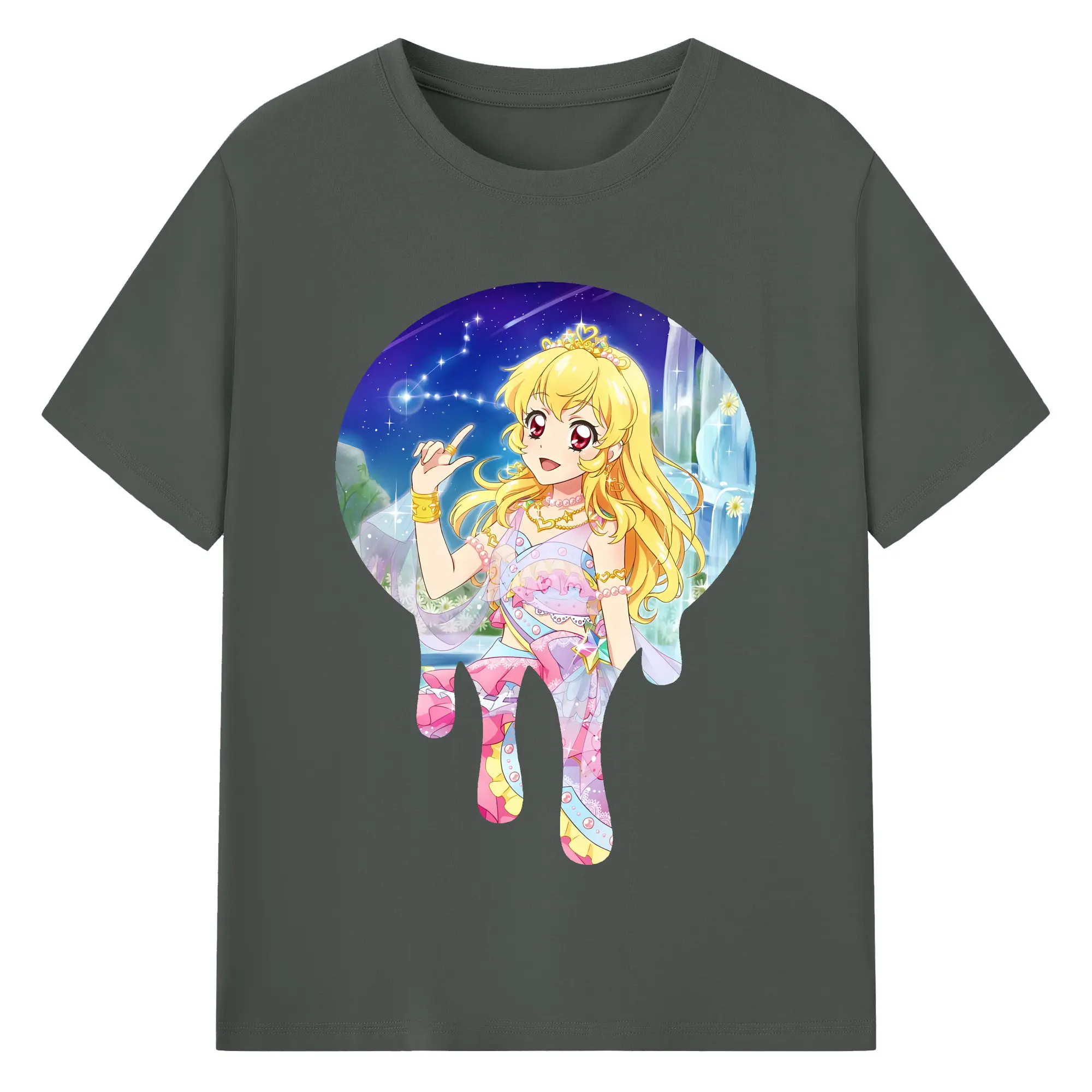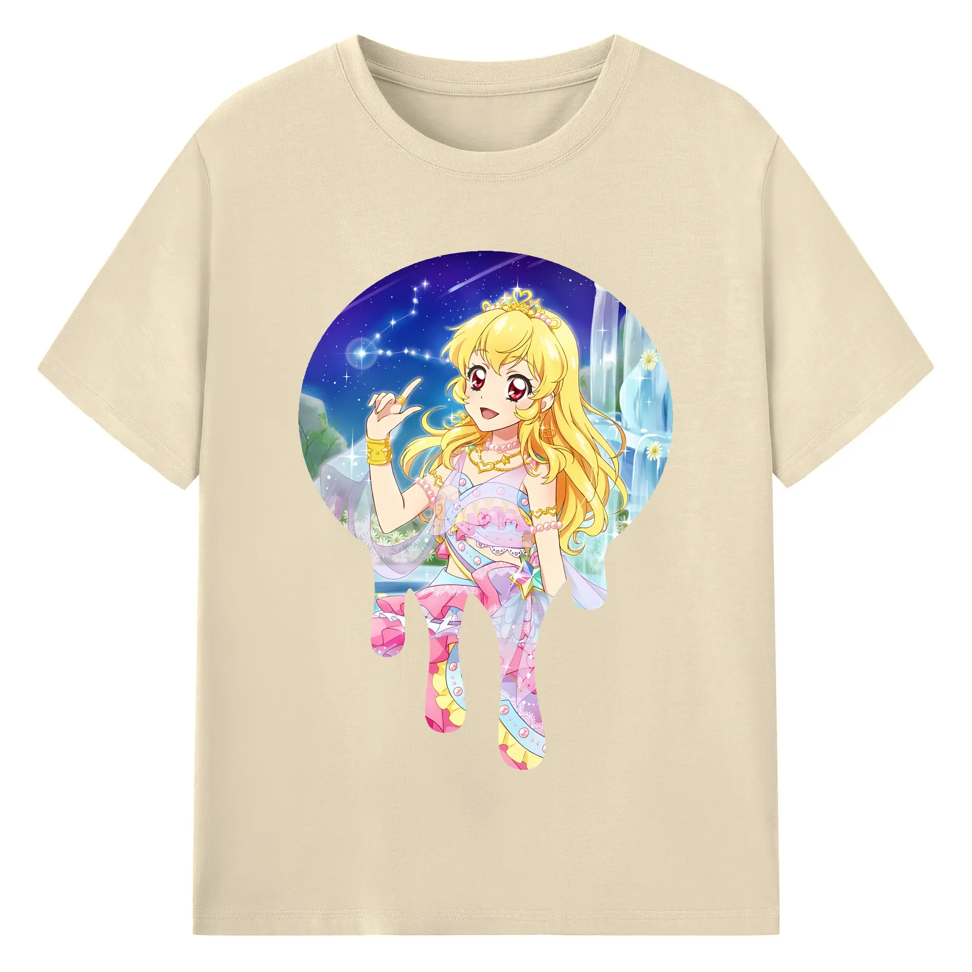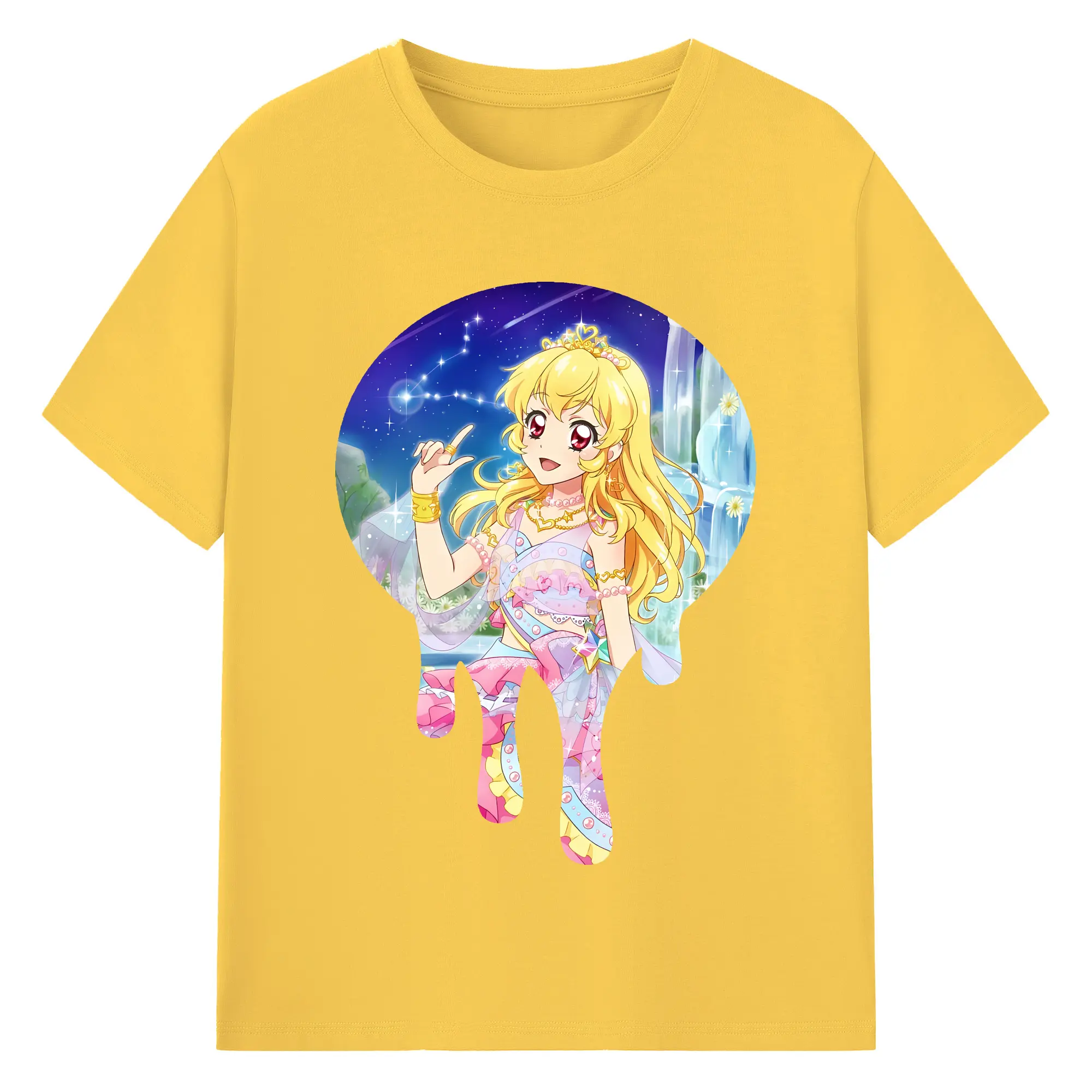 アイカツ グッズ 星宮 いちご - 綿100% ヴィンテージ風 半袖Tシャツ ・ フロントプリント ・ 柔らか肌触り ・ 通気性 快適 ・ スポーツ カジュアル 外出用