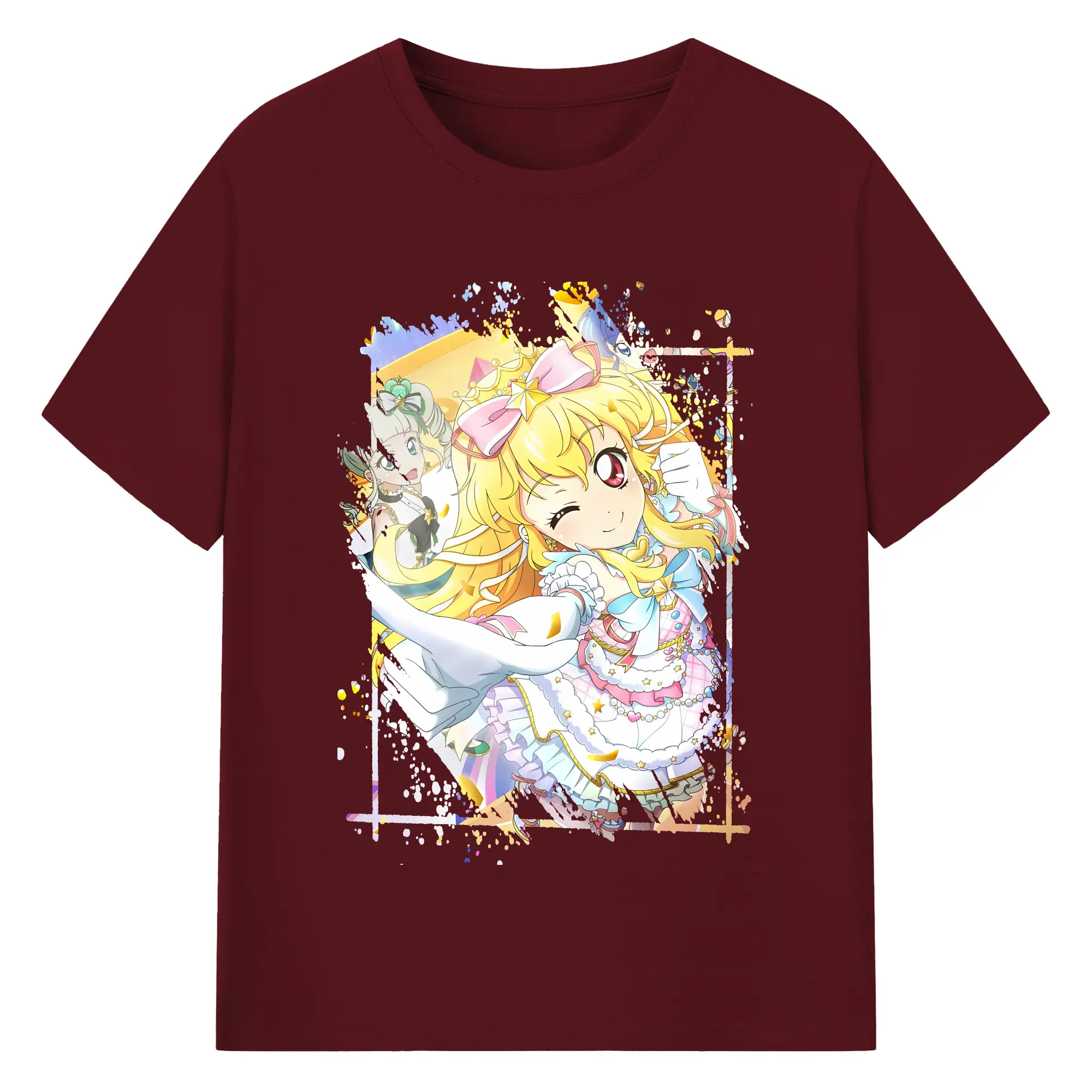 アイカツ グッズ 星宮 いちご - 綿100% 半袖Tシャツ ・ バックプリント ・ 快適 通気性 ・ 日常使い 散歩 スポーツ用