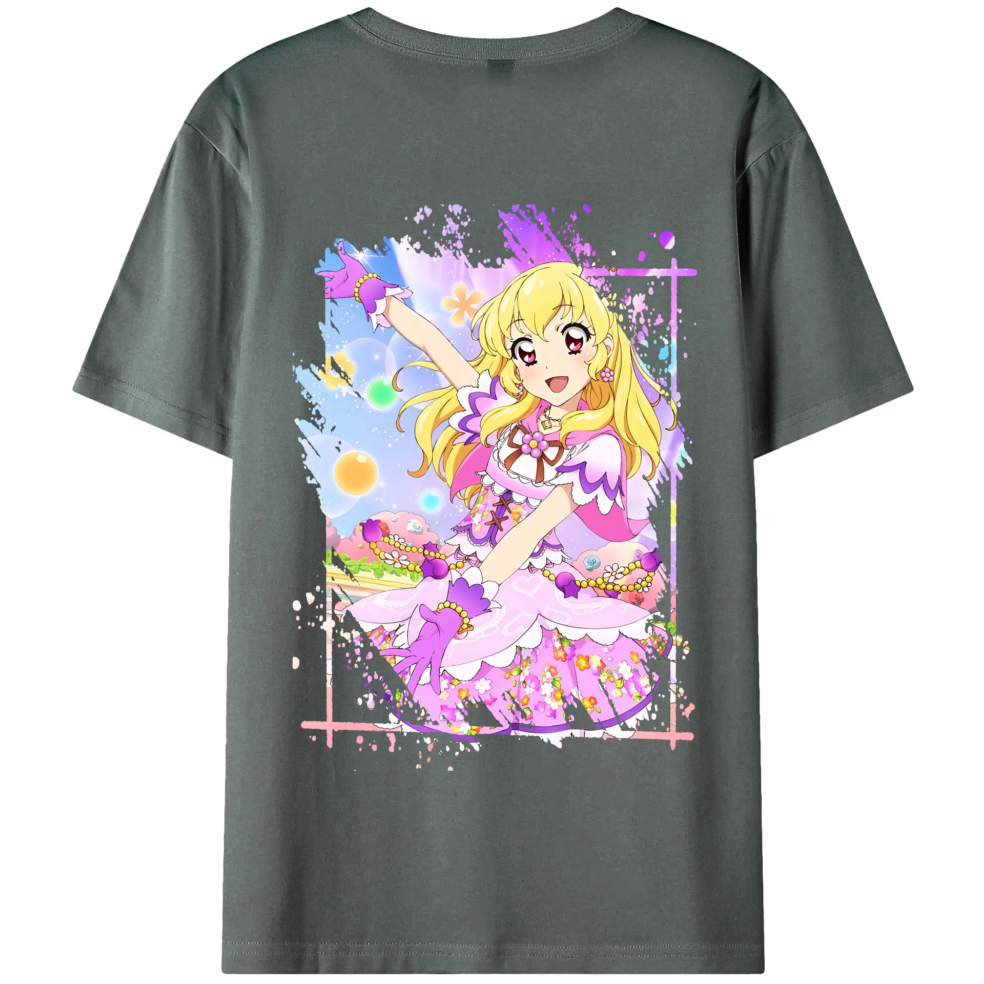 アイカツ グッズ 星宮 いちご - 綿100% ヴィンテージ風 半袖Tシャツ ・ 背面プリント ・ 柔らか肌触り ・ 通気性 快適 ・ スポーツ カジュアル 外出用