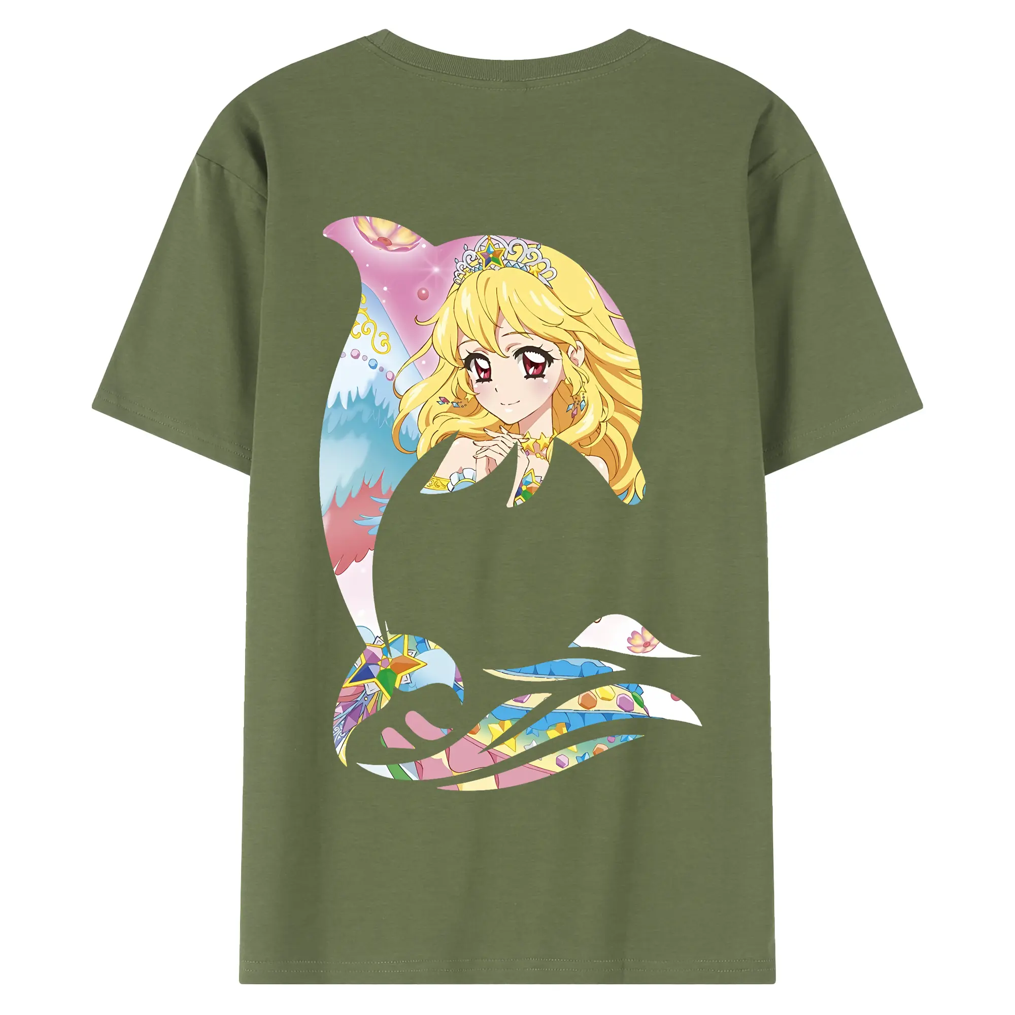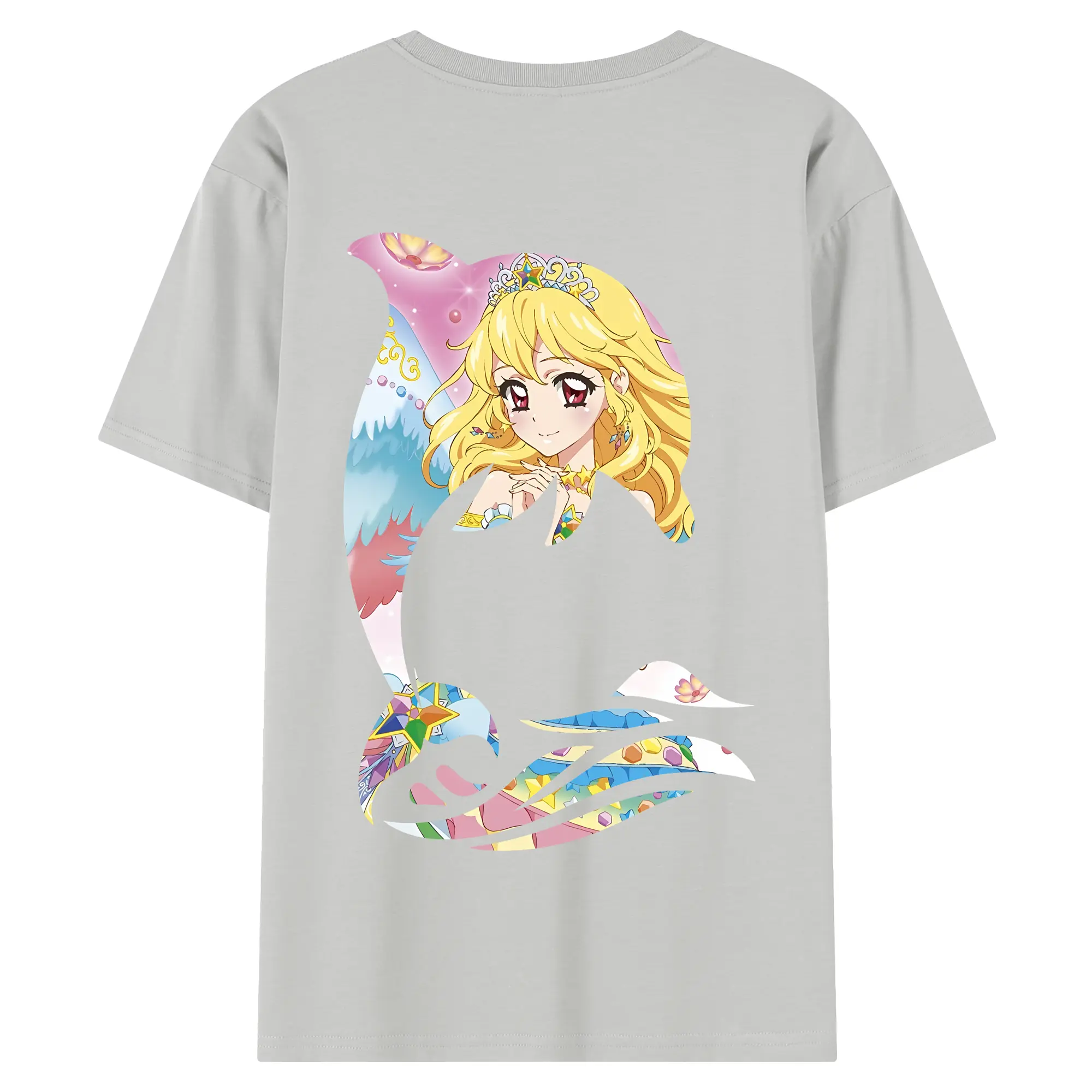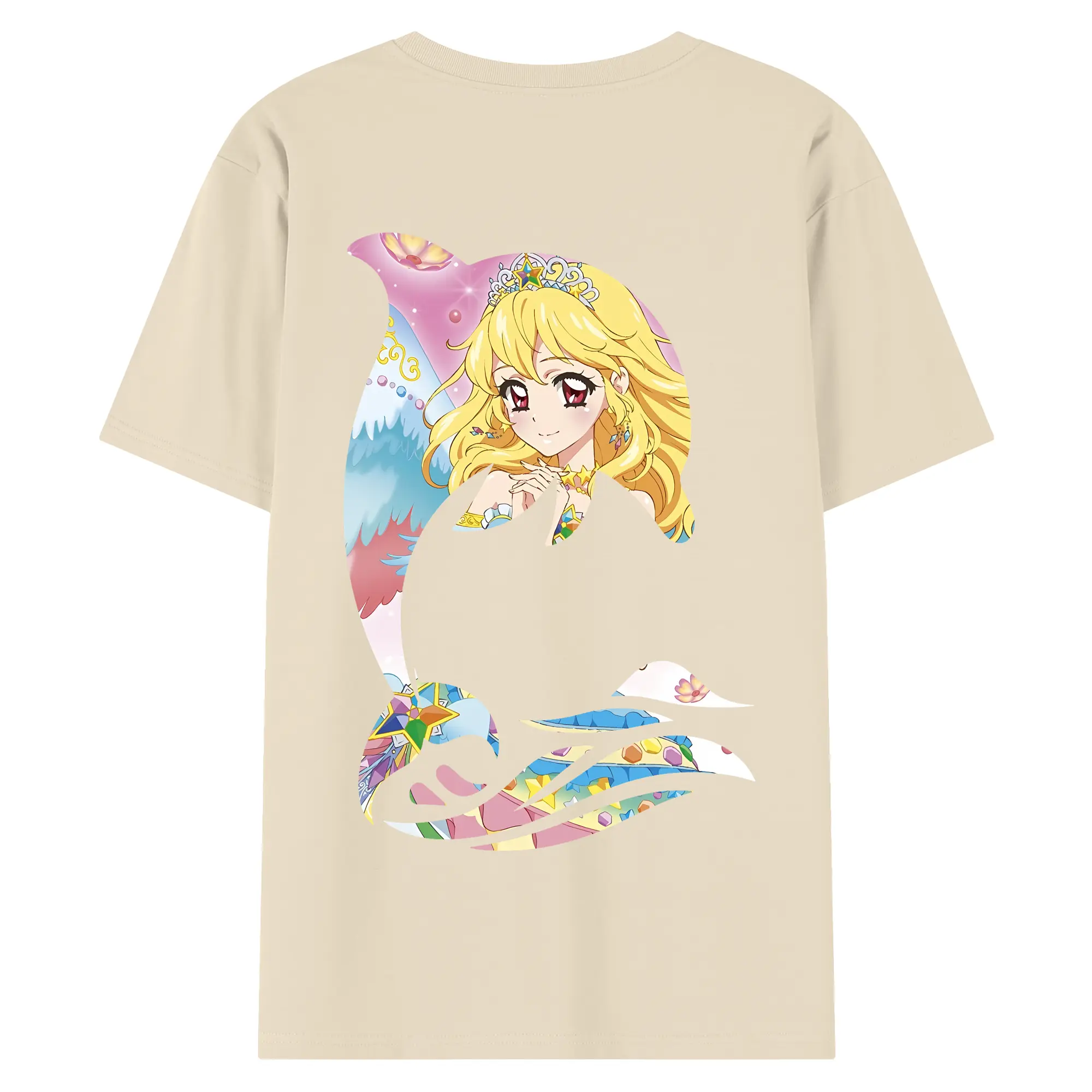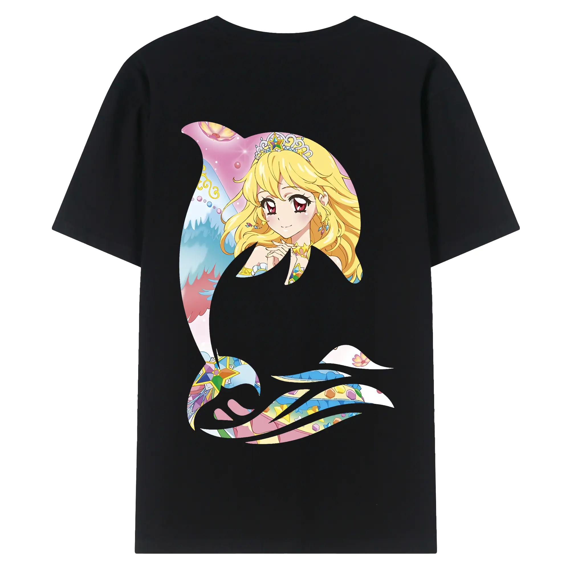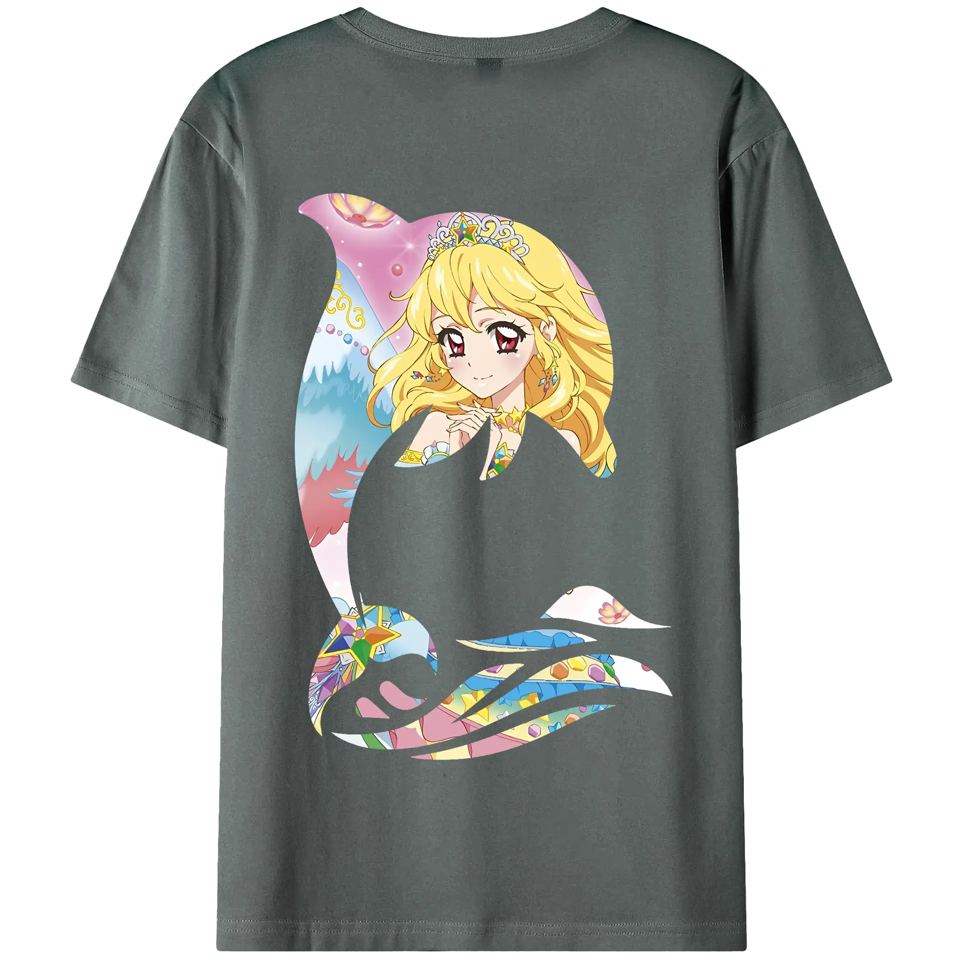 アイカツ グッズ 星宮 いちご - 綿100% ヴィンテージ風 半袖Tシャツ ・ 背面プリント ・ 柔らか肌触り ・ 通気性 快適 ・ スポーツ カジュアル 外出用
