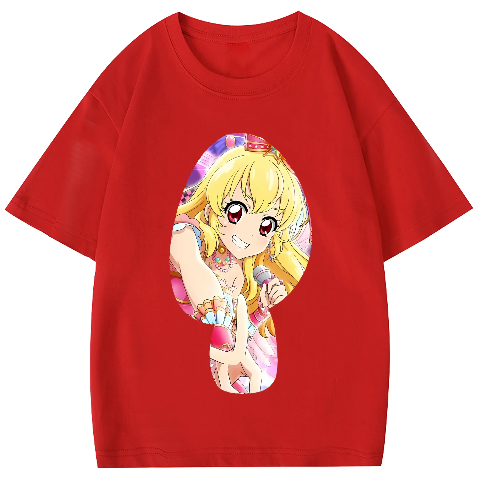アイカツ グッズ 星宮 いちご - 綿100% 半袖Tシャツ ・ フロントプリント ・ 快適 通気性 ・ 日常使い 散歩 スポーツ用