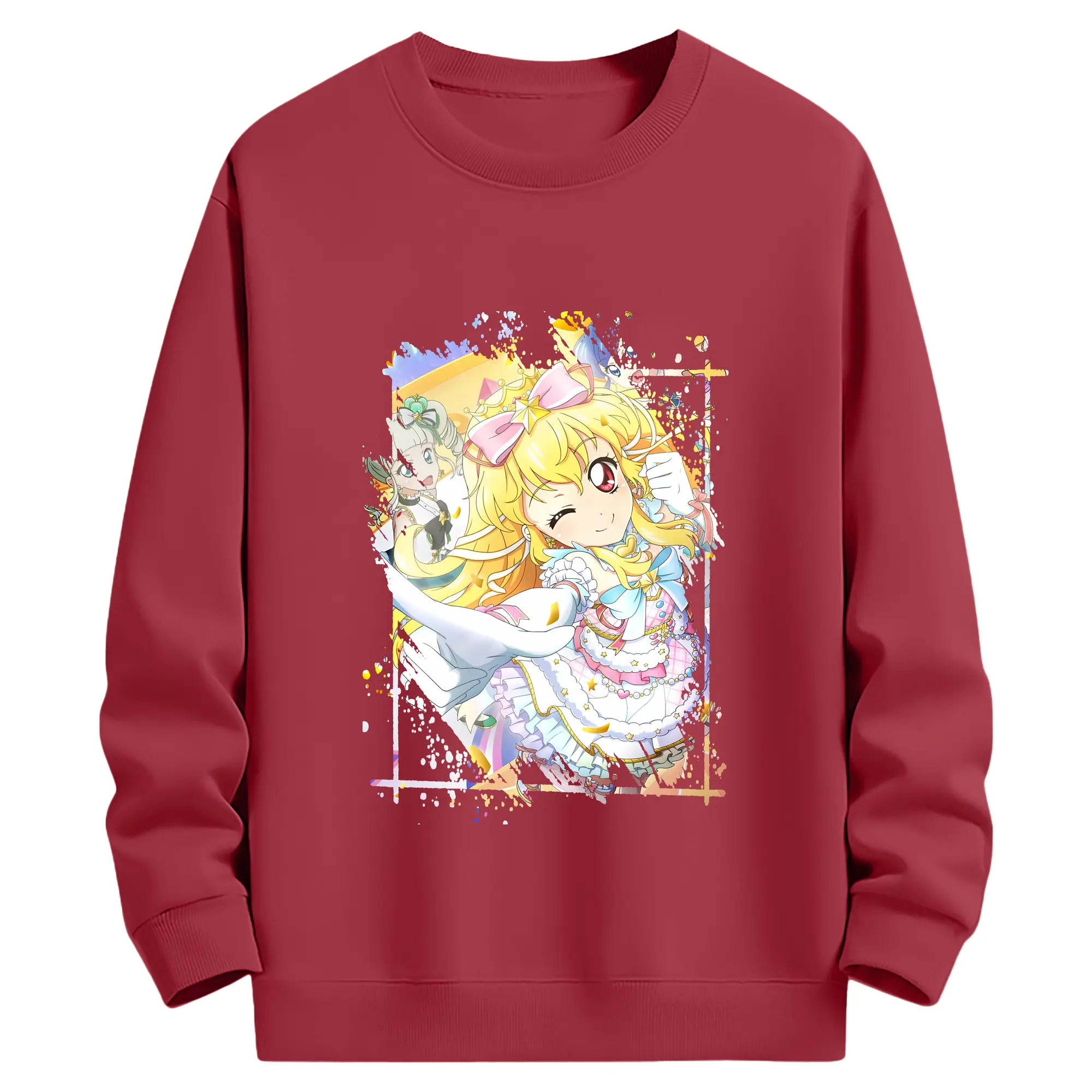 アイカツ グッズ 星宮 いちご - 薄手 クルーネック スウェット 裏毛260g · ポリエステル 春秋向け カジュアル 男女兼用 · トレーナー デイリー スポーツ 散歩に最適
