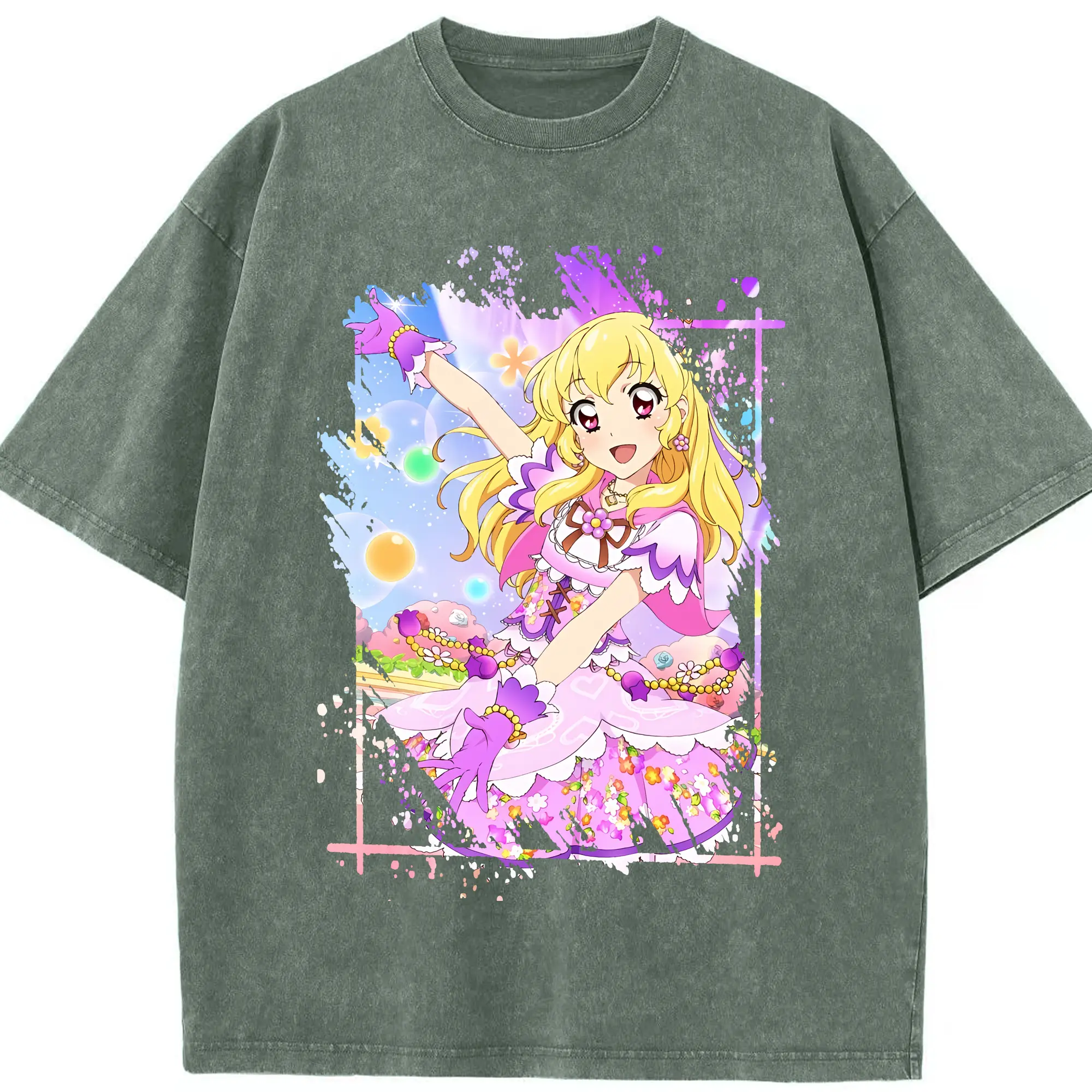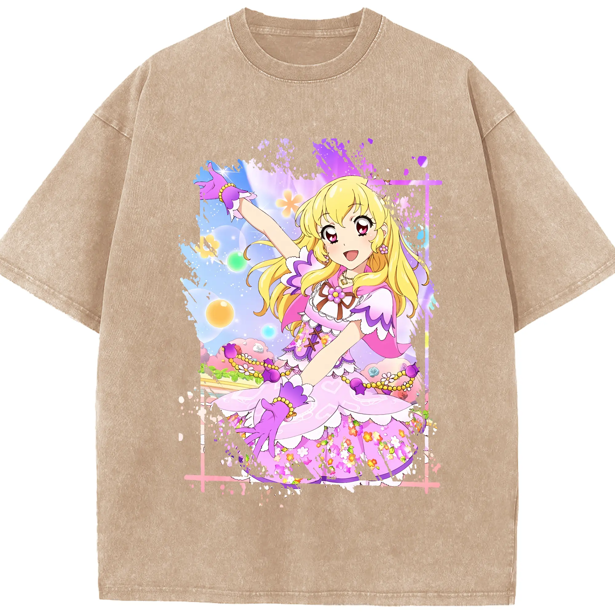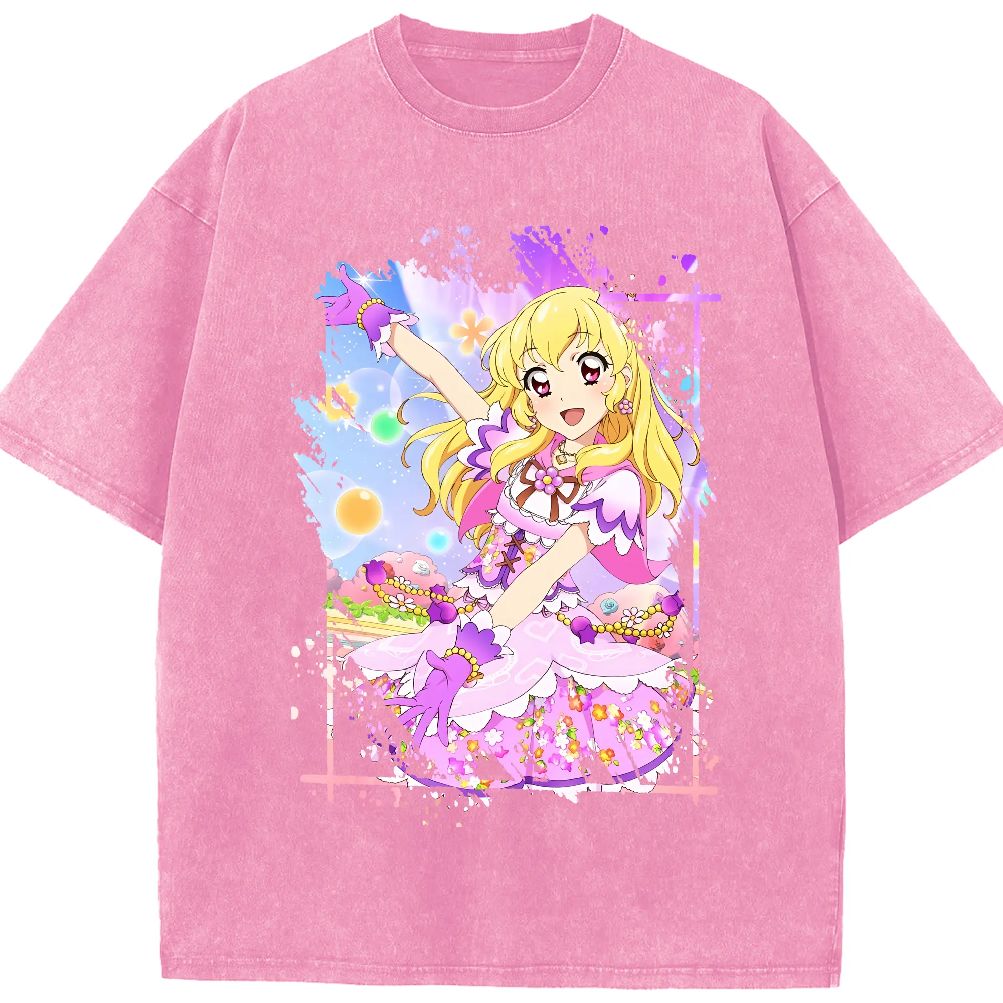 アイカツ グッズ 星宮 いちご - 綿100% ヴィンテージ風 半袖Tシャツ ・ 背面プリント ・ 柔らか肌触り ・ 通気性 快適 ・ スポーツ カジュアル 外出用