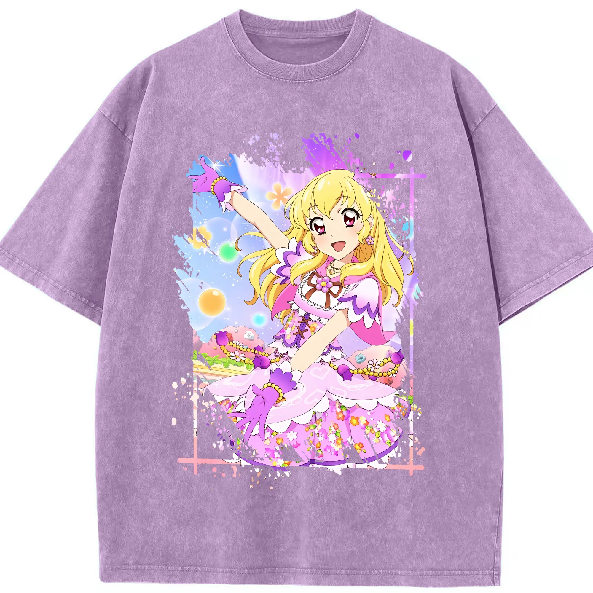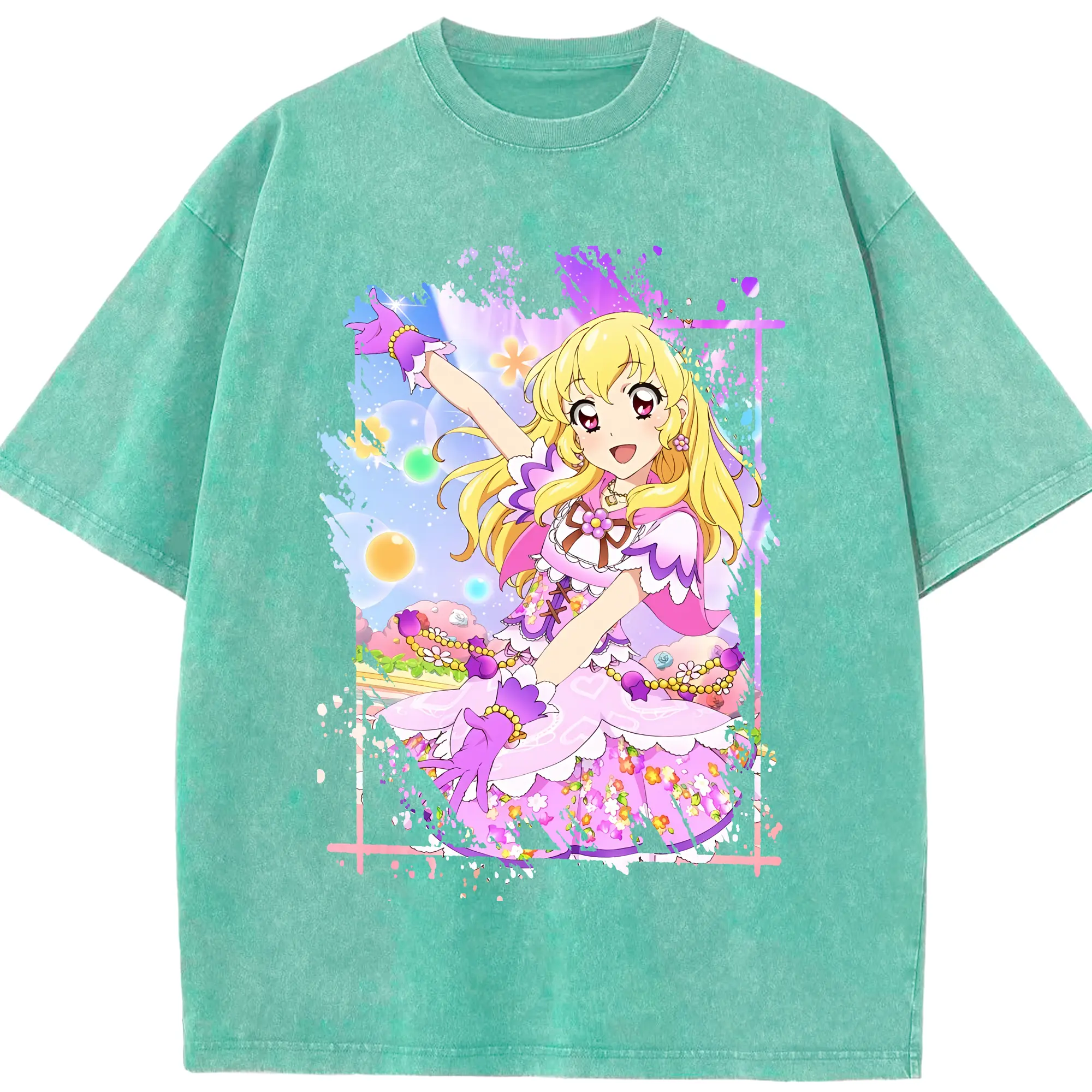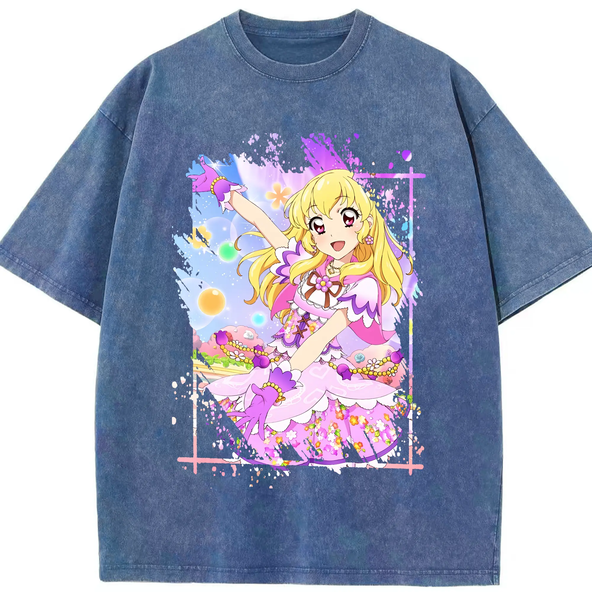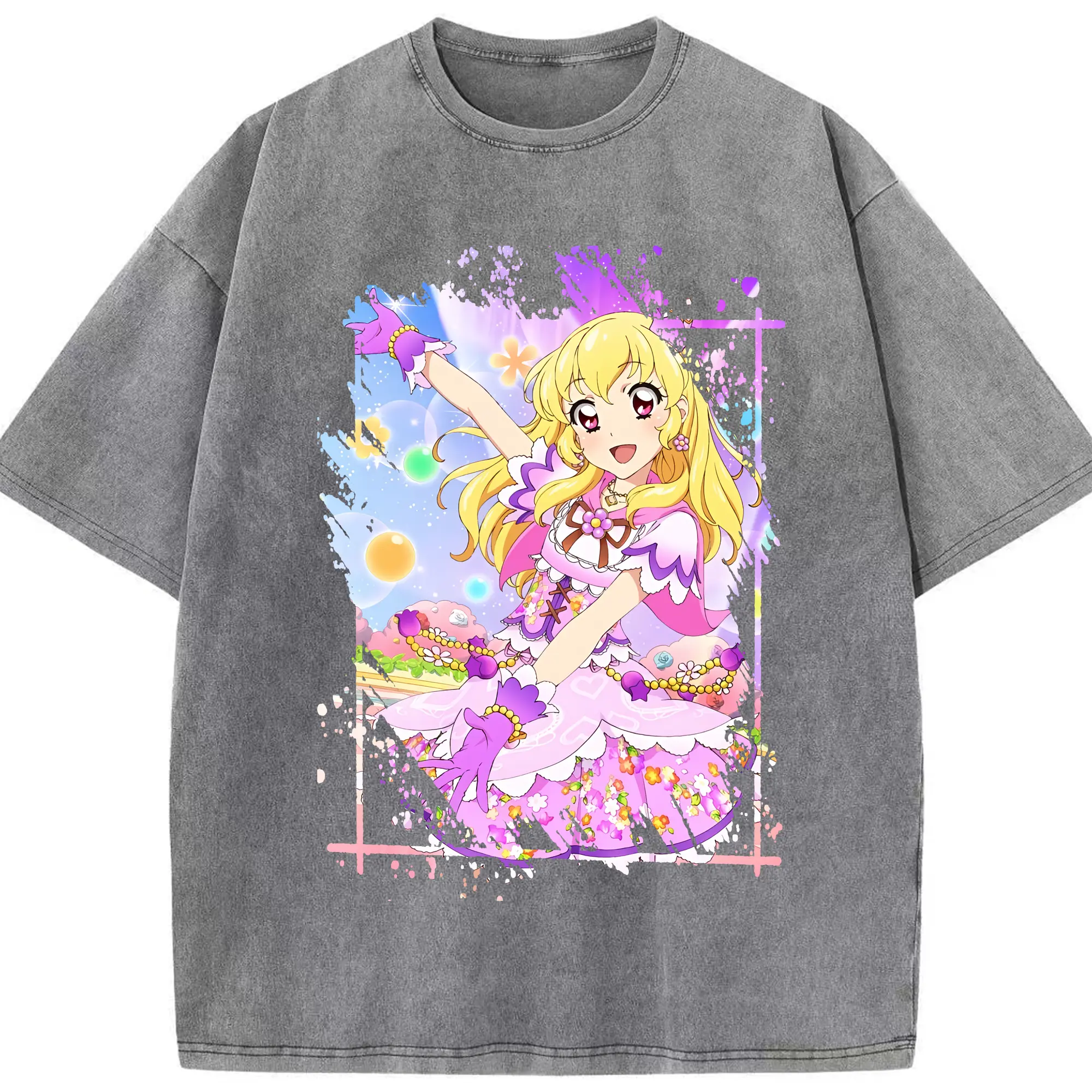 アイカツ グッズ 星宮 いちご - 綿100% ヴィンテージ風 半袖Tシャツ ・ 背面プリント ・ 柔らか肌触り ・ 通気性 快適 ・ スポーツ カジュアル 外出用