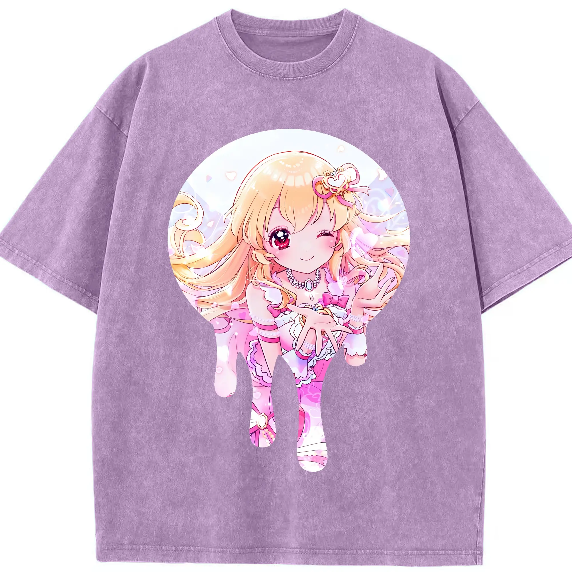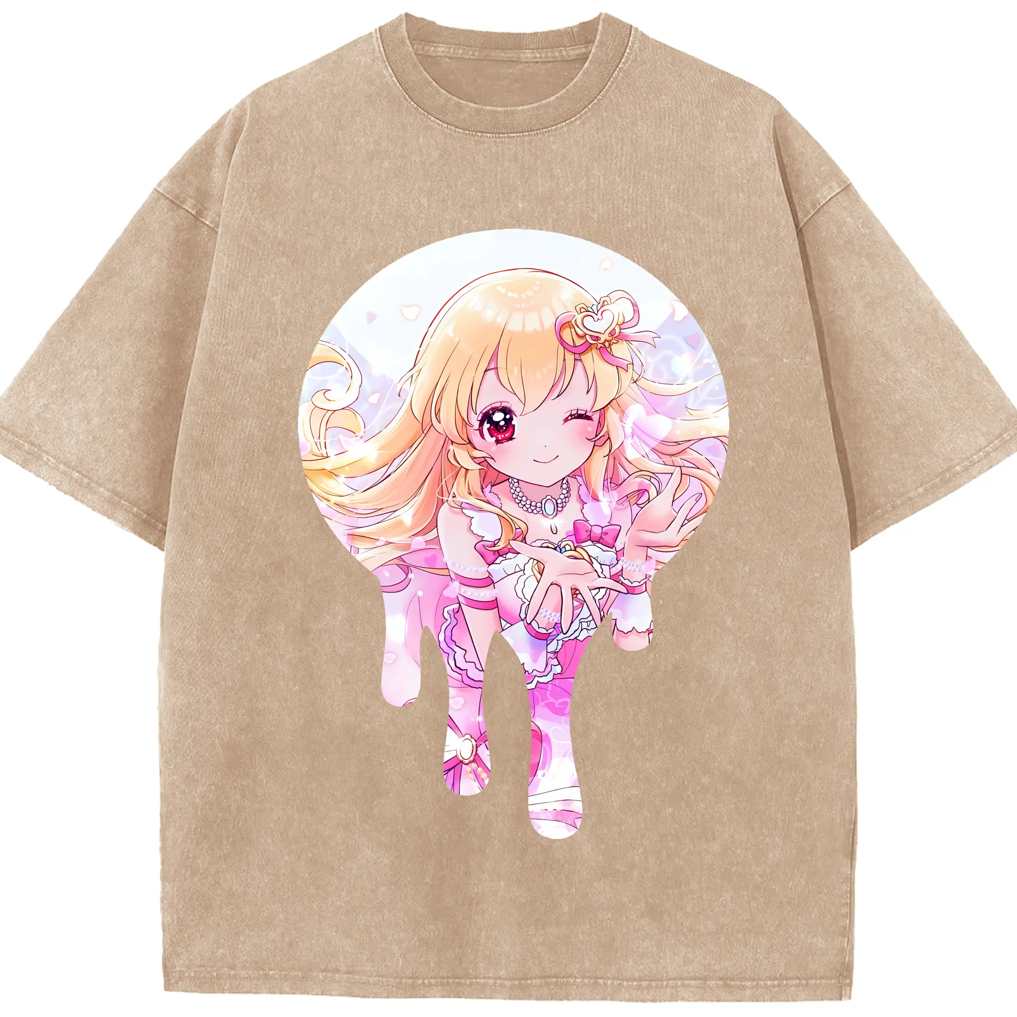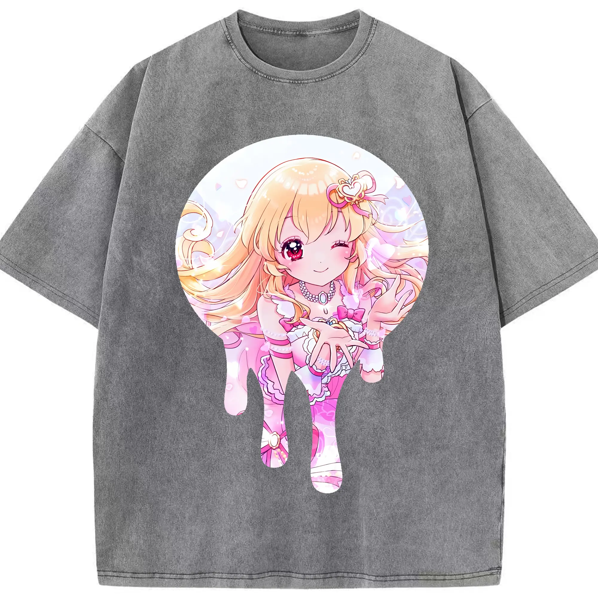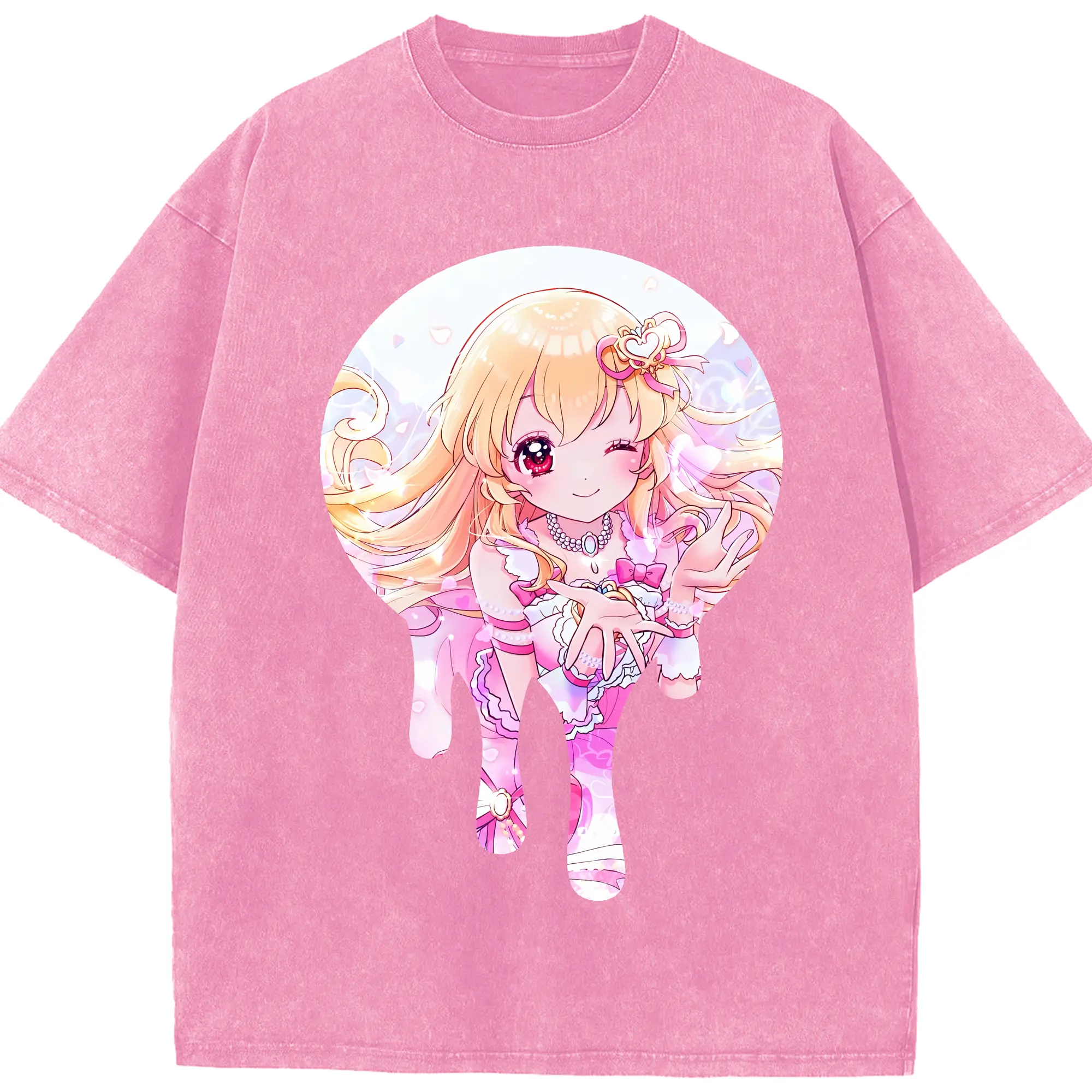 アイカツ グッズ 星宮 いちご - 綿100% ヴィンテージ風 半袖Tシャツ ・ 背面プリント ・ 柔らか肌触り ・ 通気性 快適 ・ スポーツ カジュアル 外出用