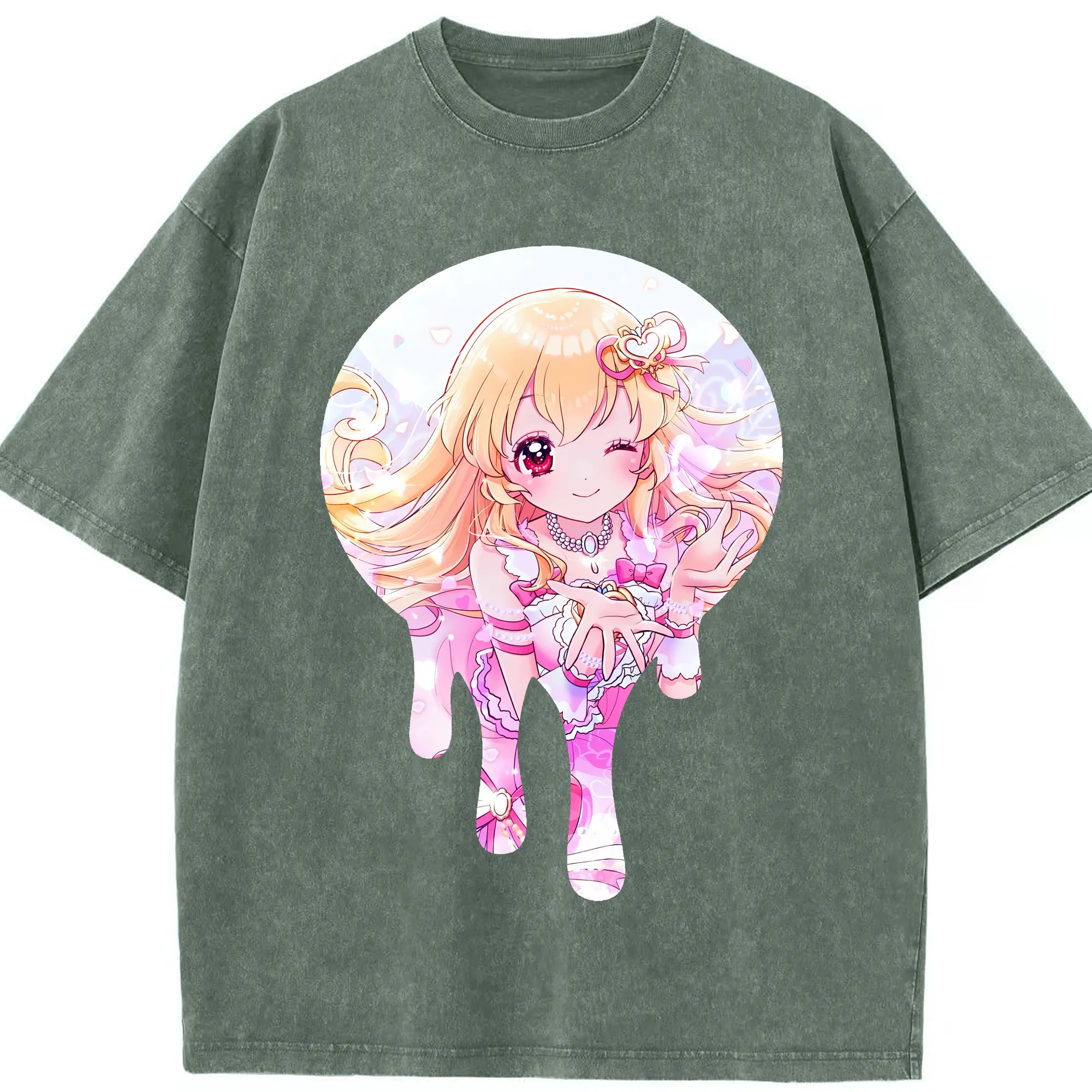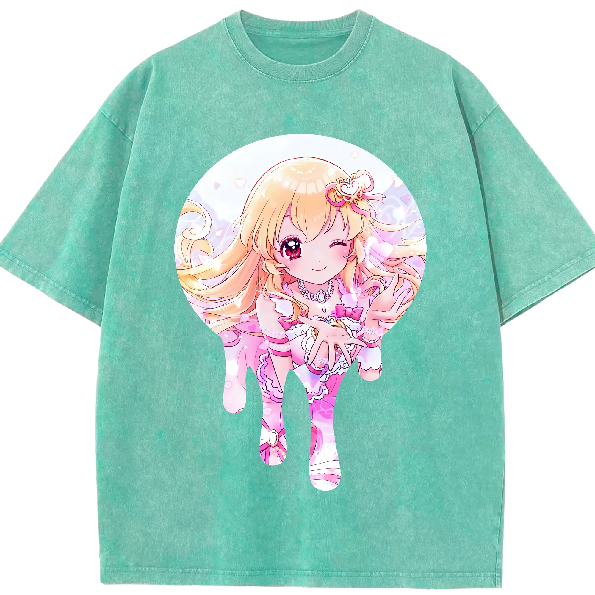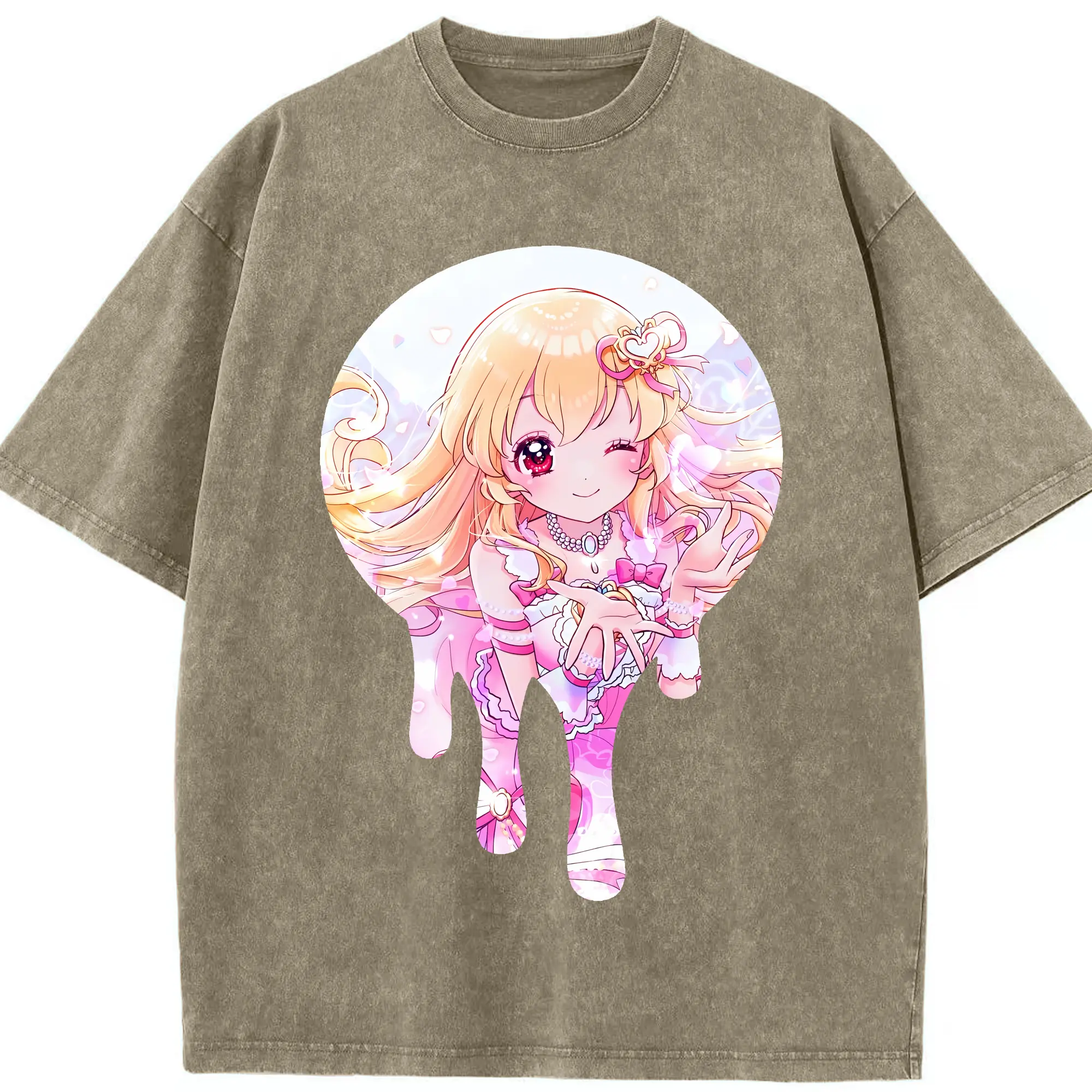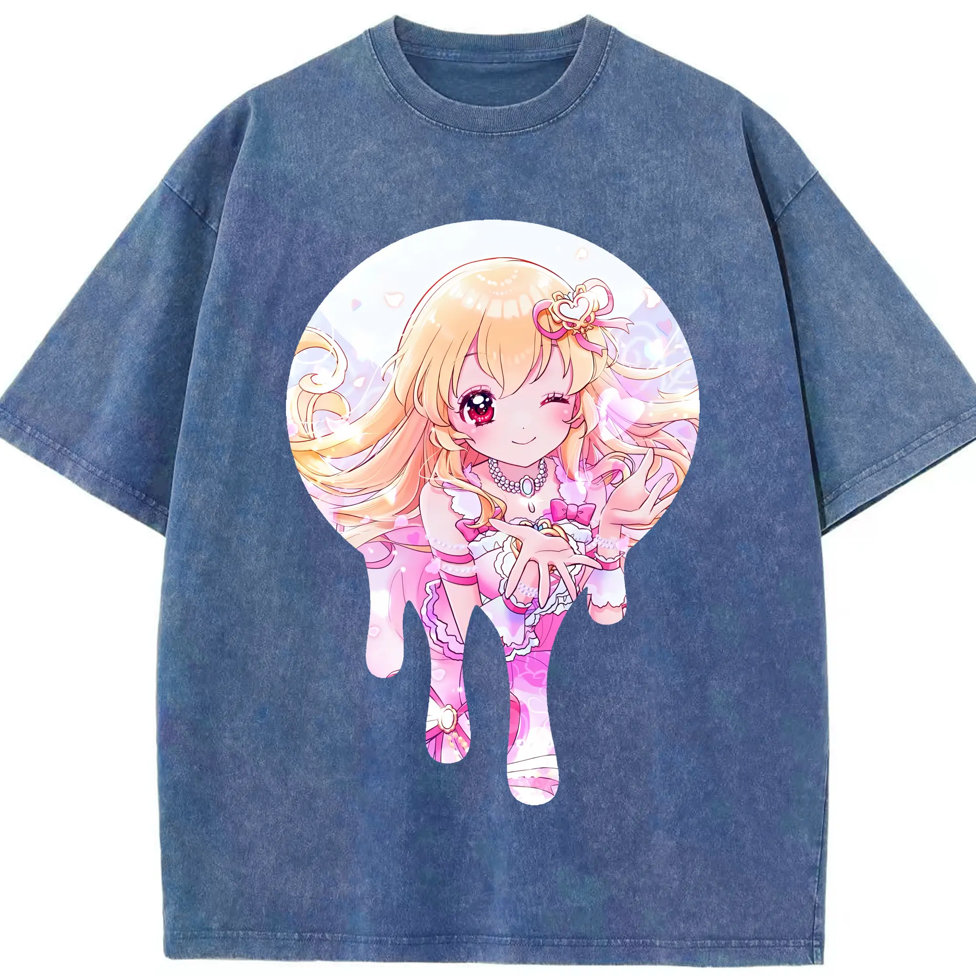 アイカツ グッズ 星宮 いちご - 綿100% ヴィンテージ風 半袖Tシャツ ・ 背面プリント ・ 柔らか肌触り ・ 通気性 快適 ・ スポーツ カジュアル 外出用