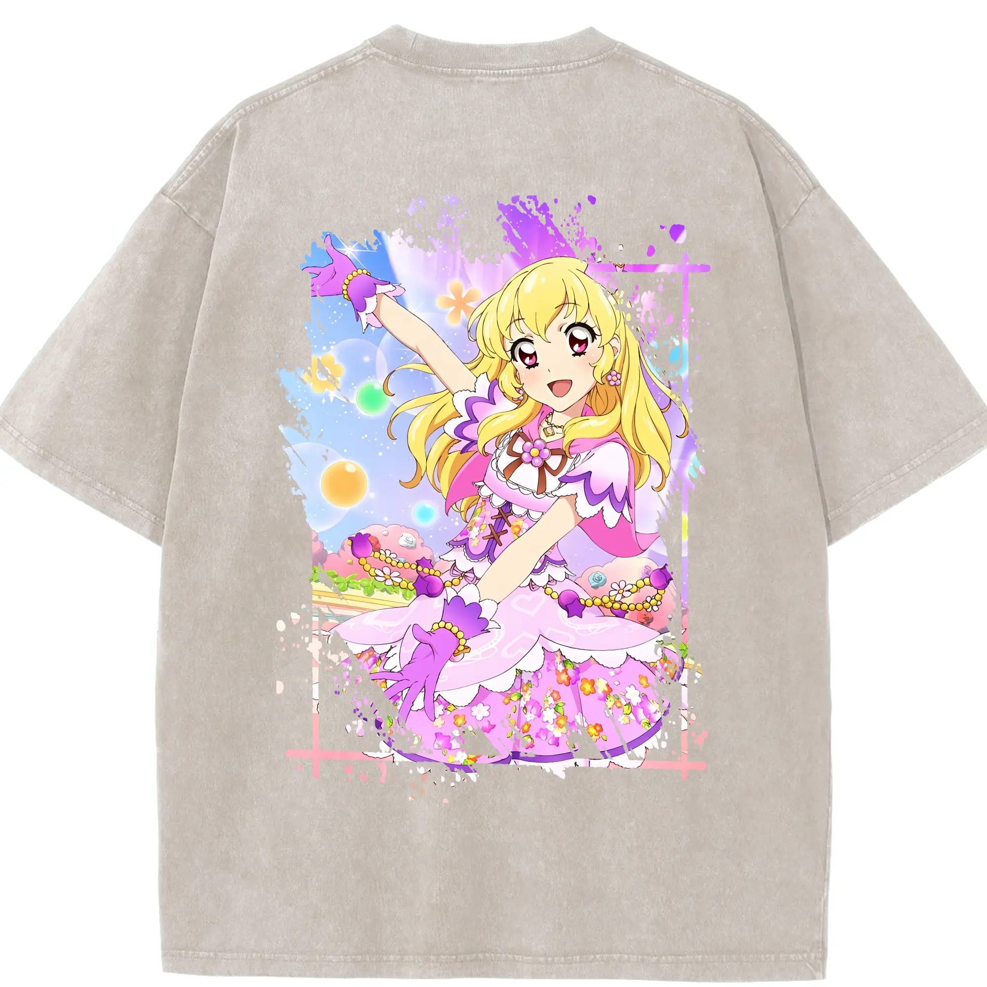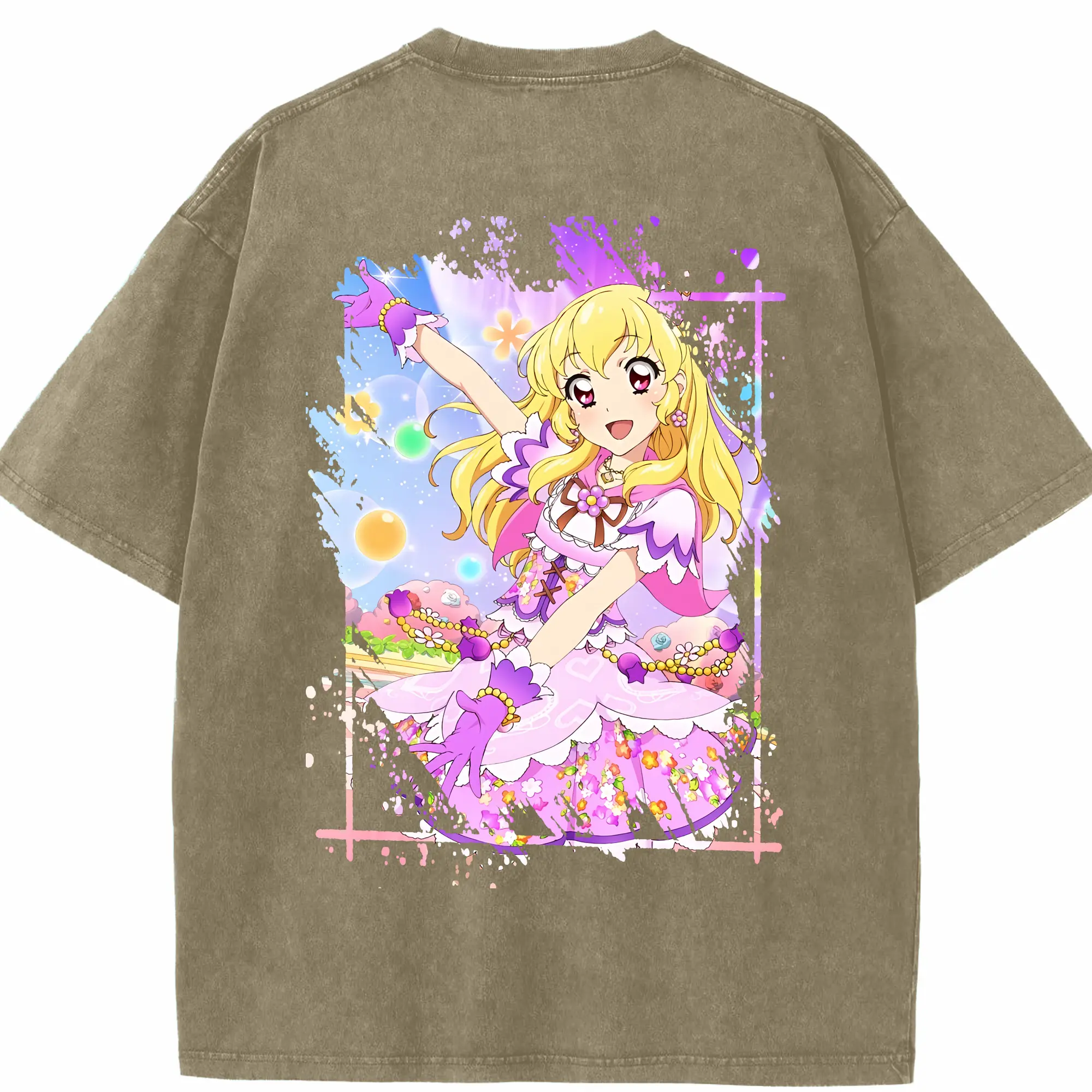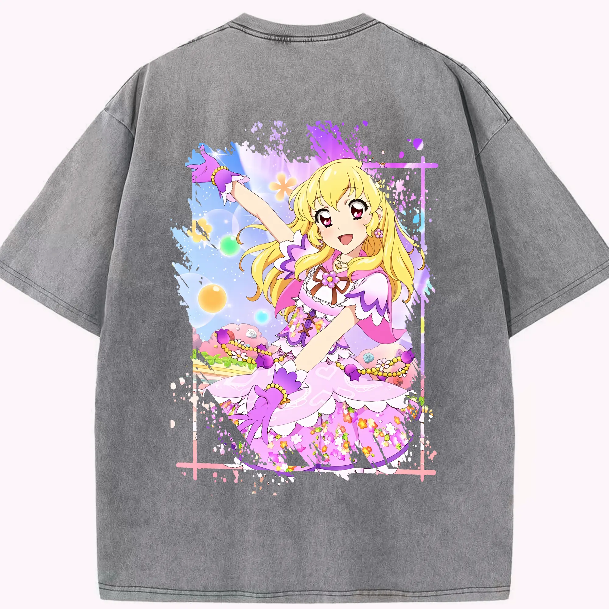 アイカツ グッズ 星宮 いちご - 綿100% ヴィンテージ風 半袖Tシャツ ・ フロントプリント ・ 柔らか肌触り ・ 通気性 快適 ・ スポーツ カジュアル 外出用