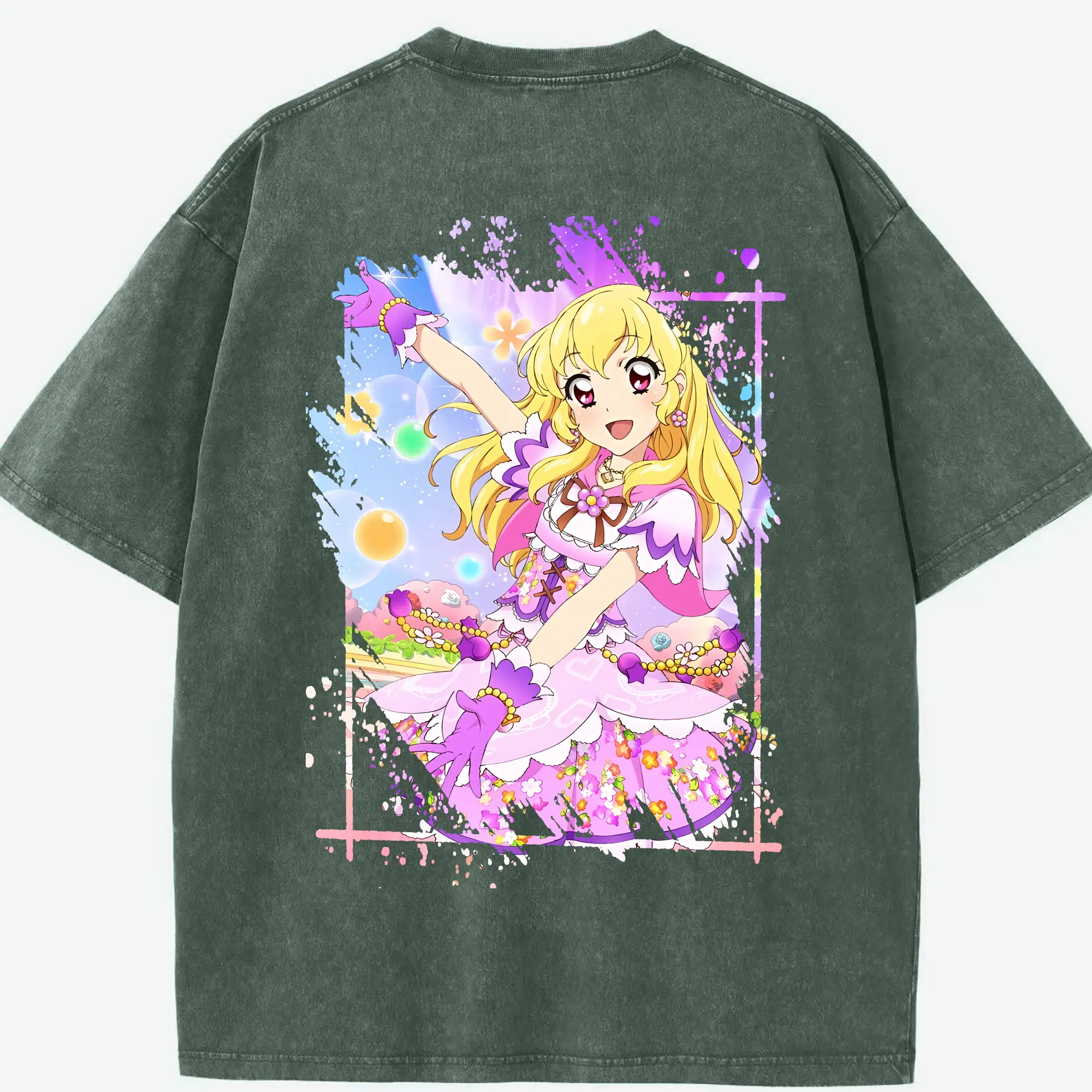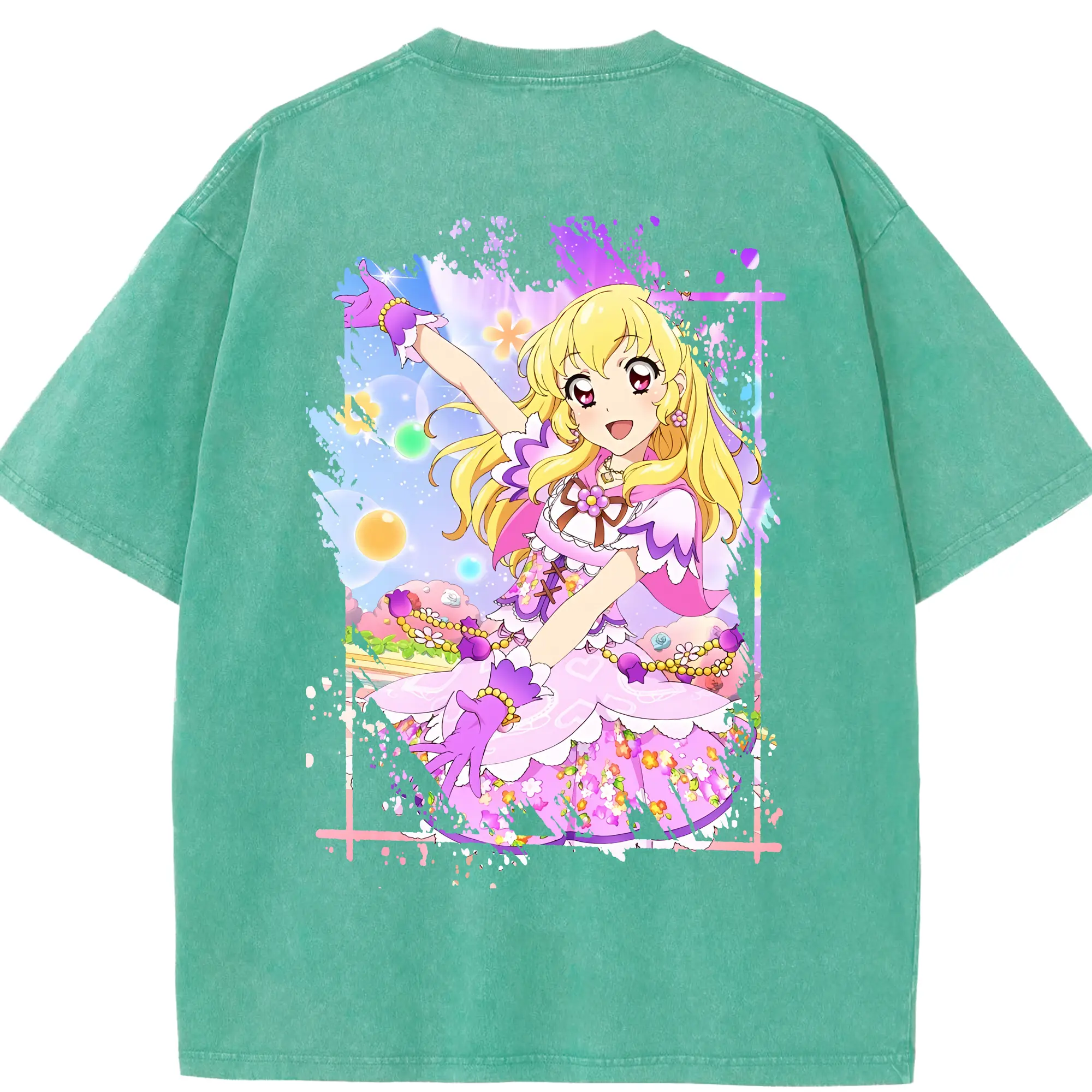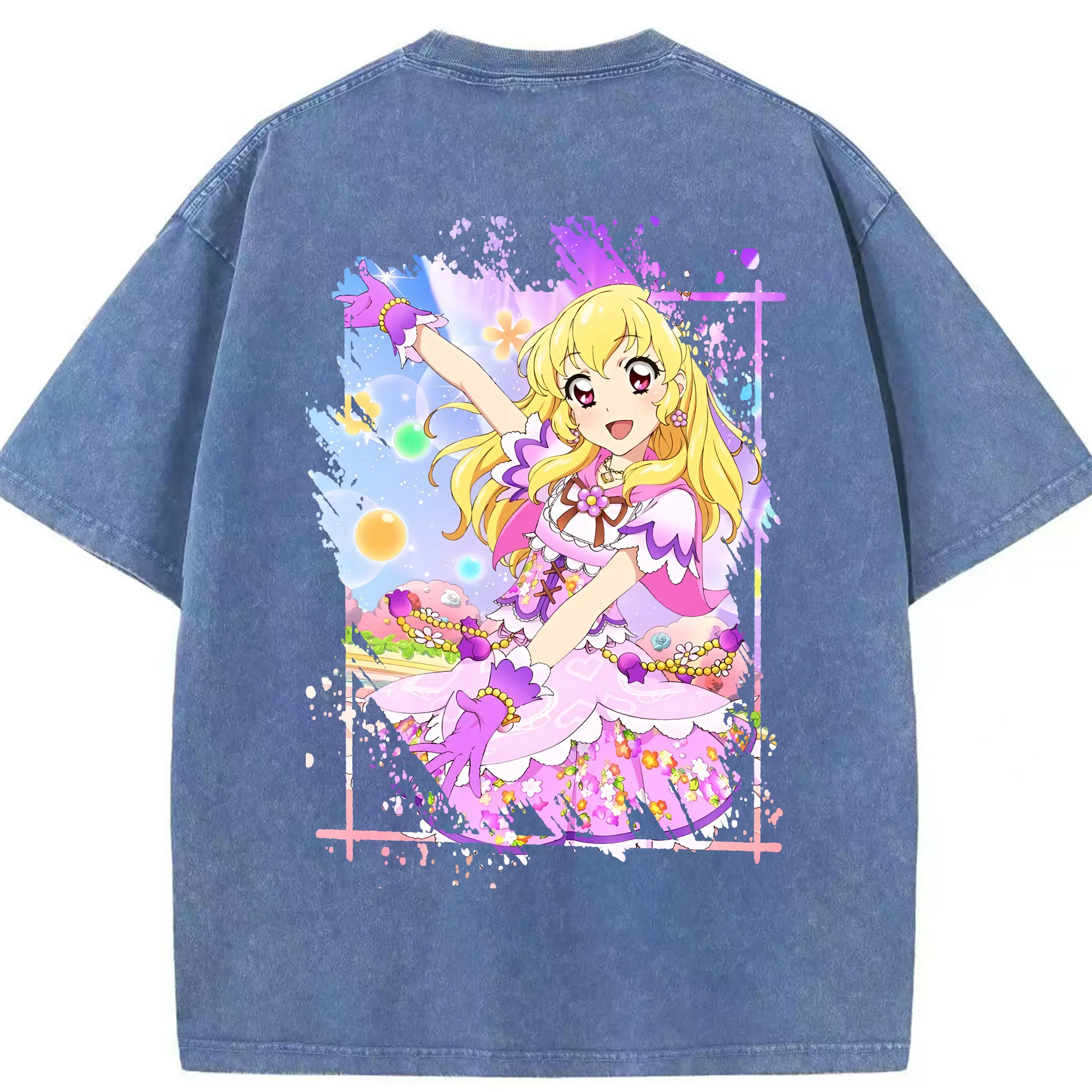 アイカツ グッズ 星宮 いちご - 綿100% ヴィンテージ風 半袖Tシャツ ・ フロントプリント ・ 柔らか肌触り ・ 通気性 快適 ・ スポーツ カジュアル 外出用
