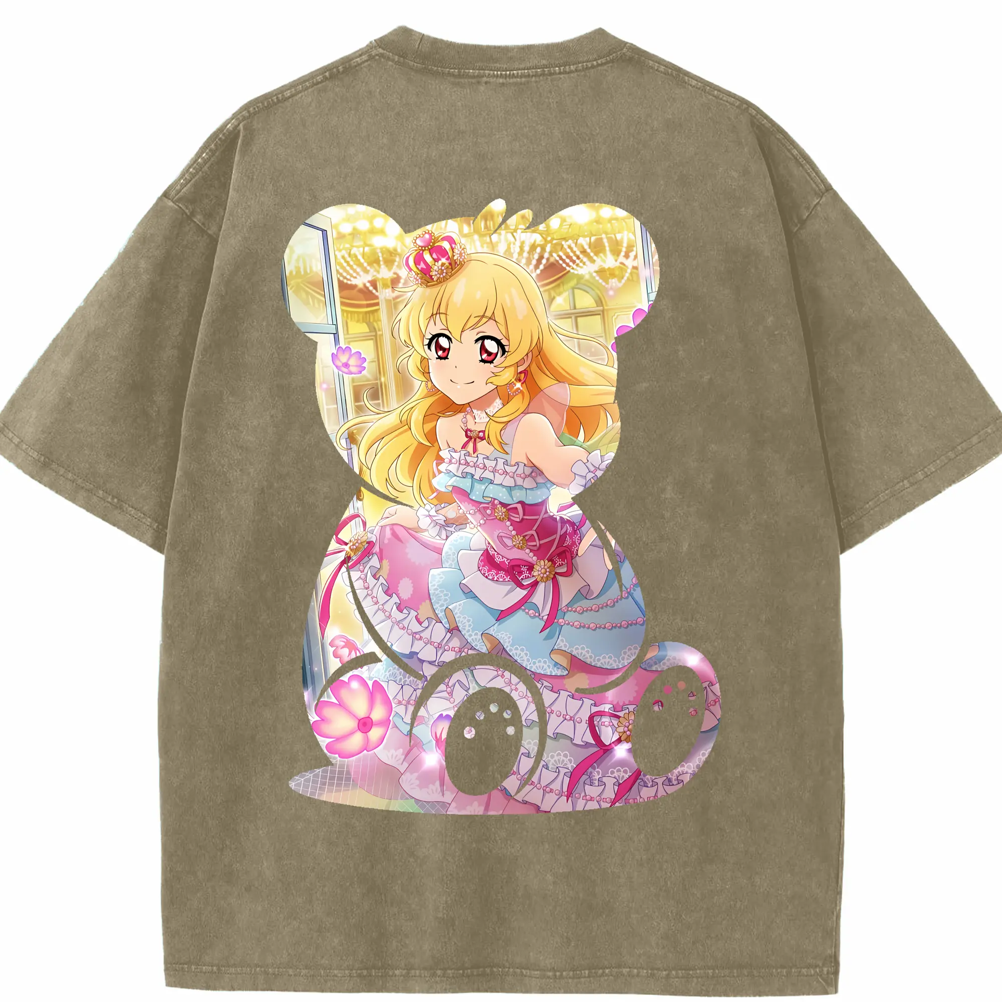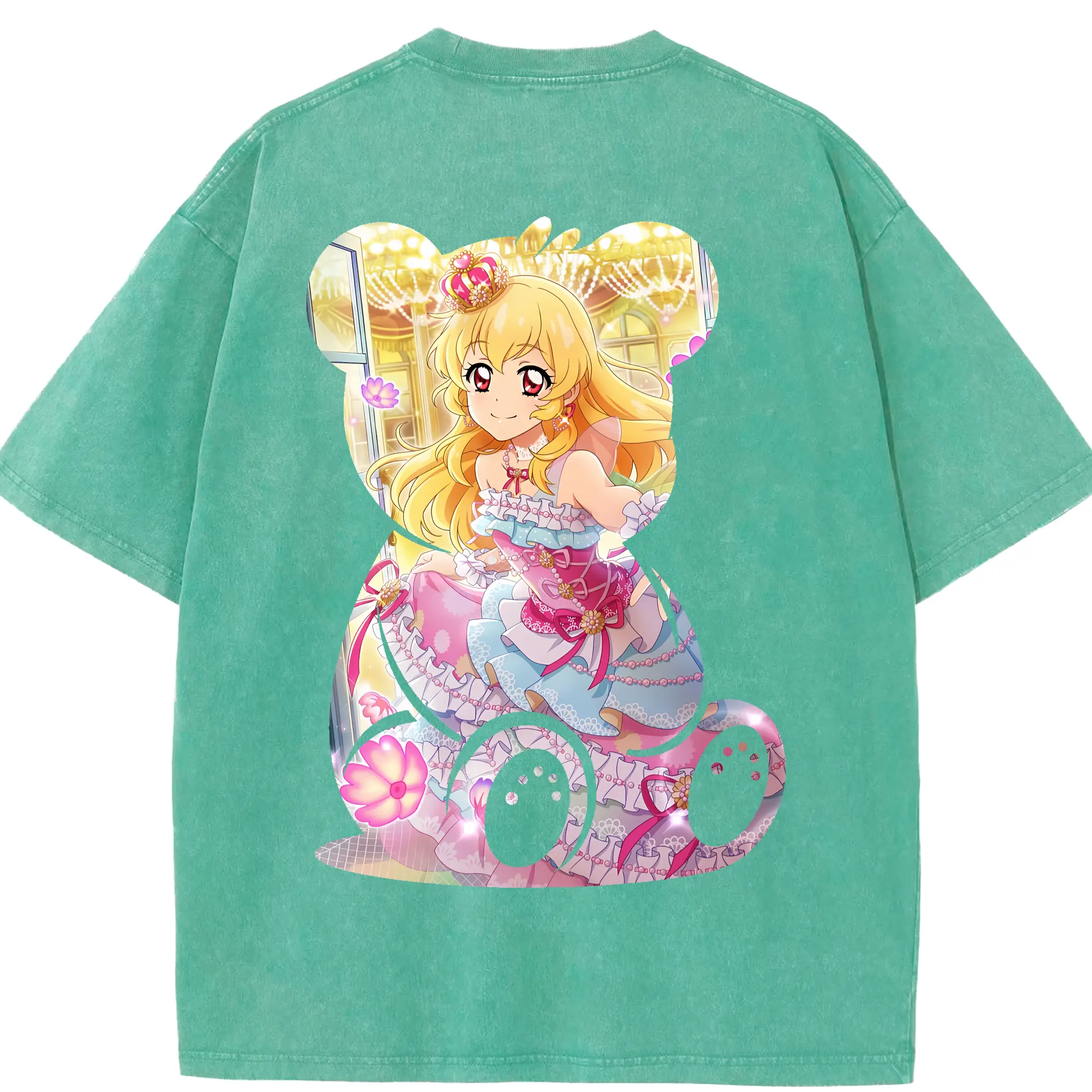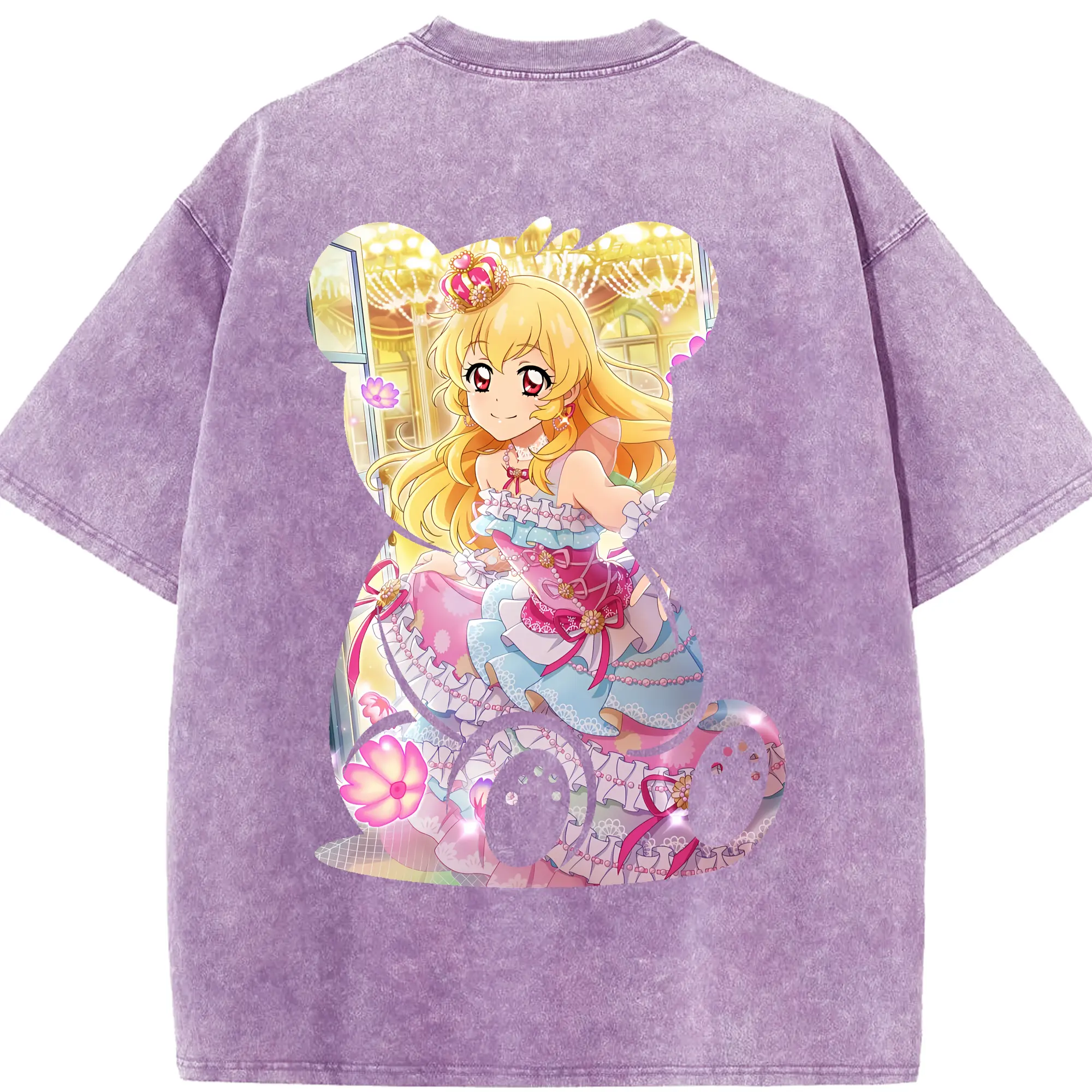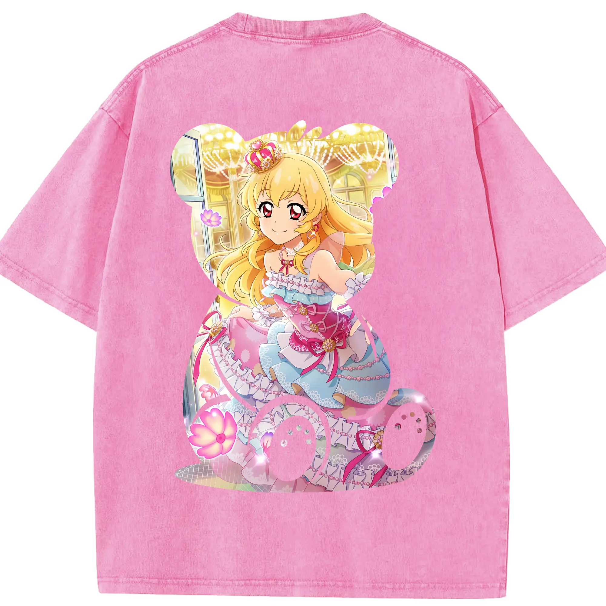 アイカツ グッズ 星宮 いちご - 綿100% ヴィンテージ風 半袖Tシャツ ・ フロントプリント ・ 柔らか肌触り ・ 通気性 快適 ・ スポーツ カジュアル 外出用