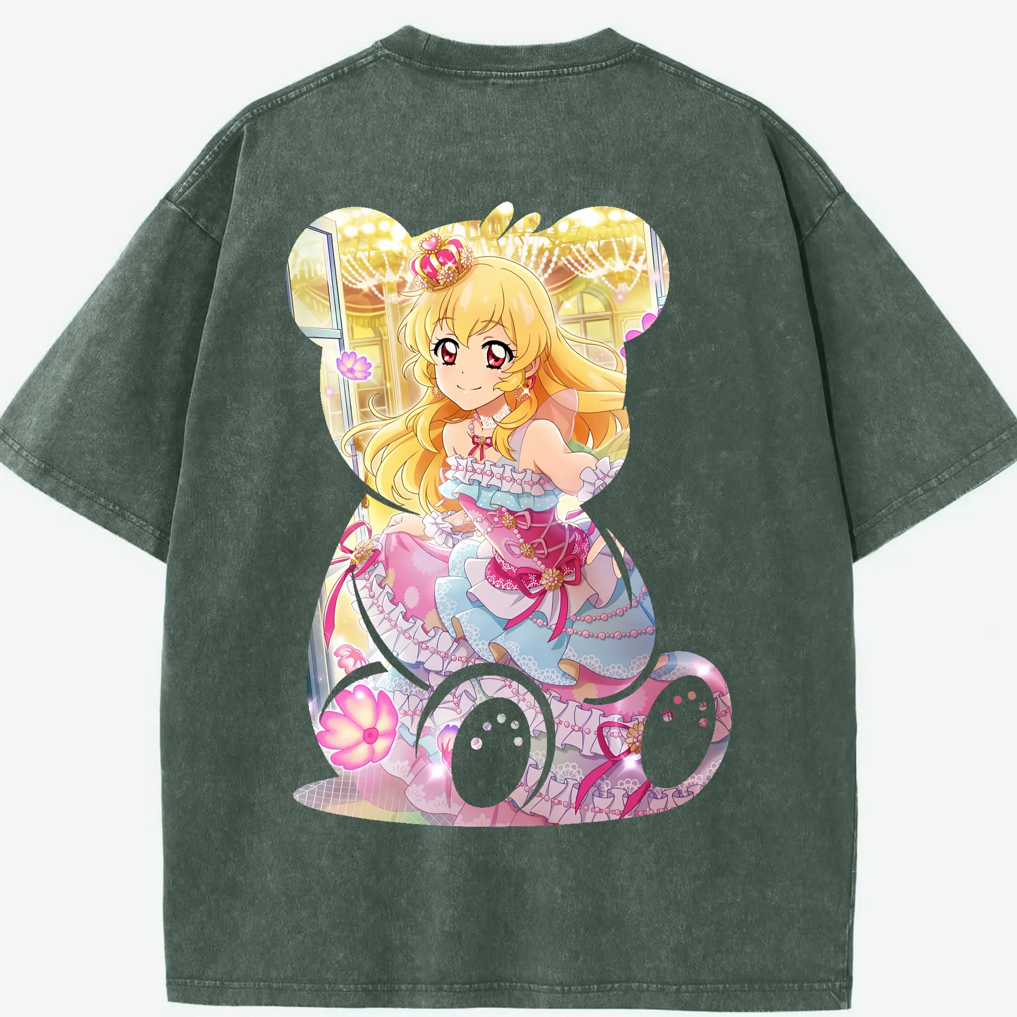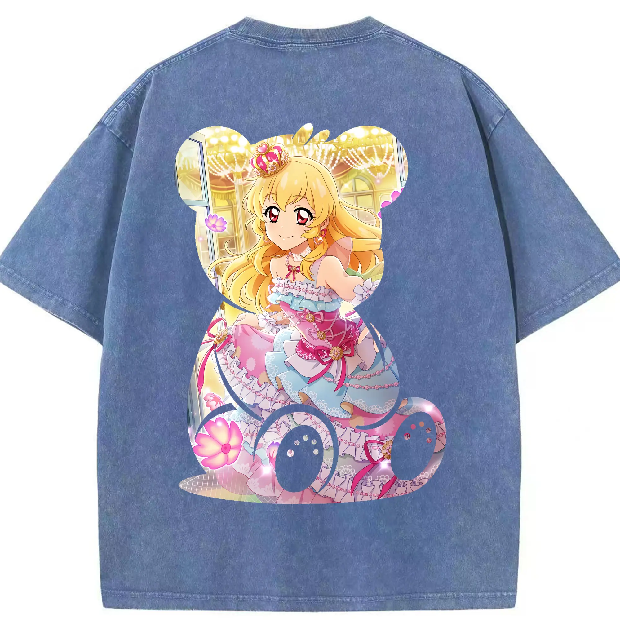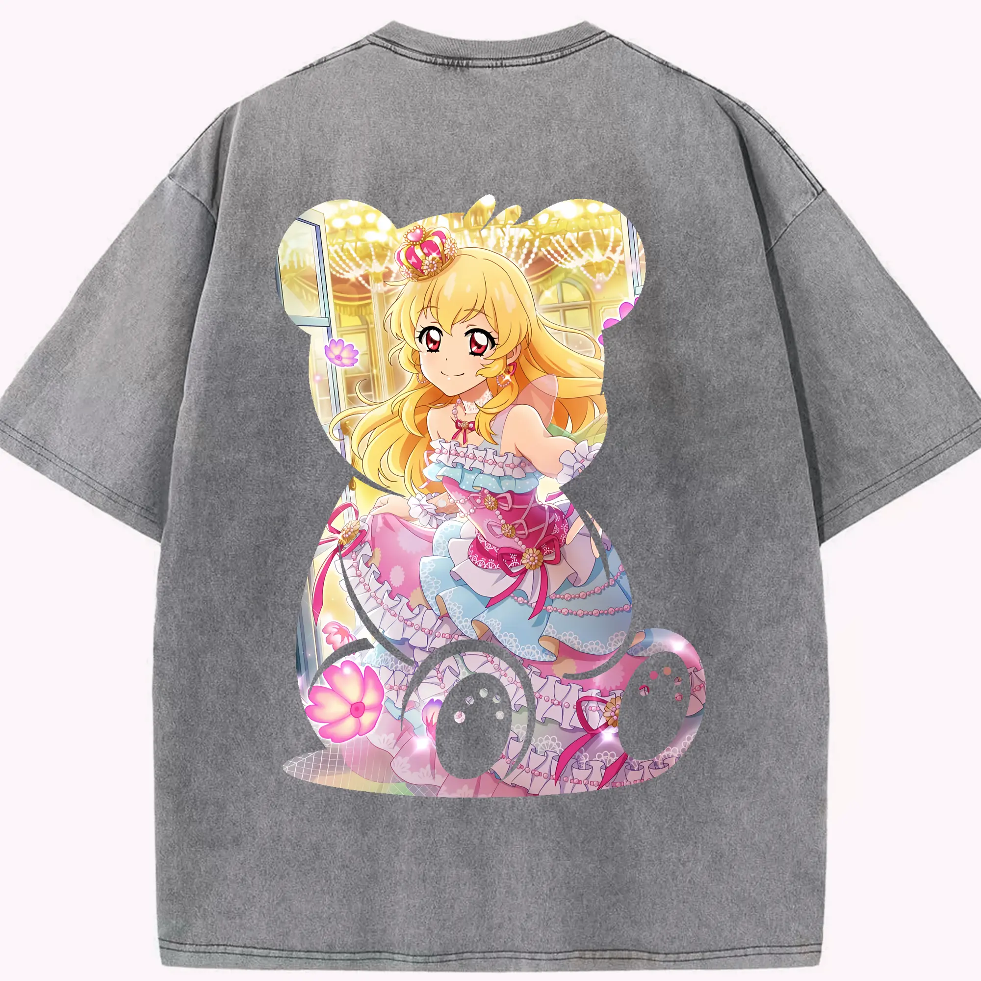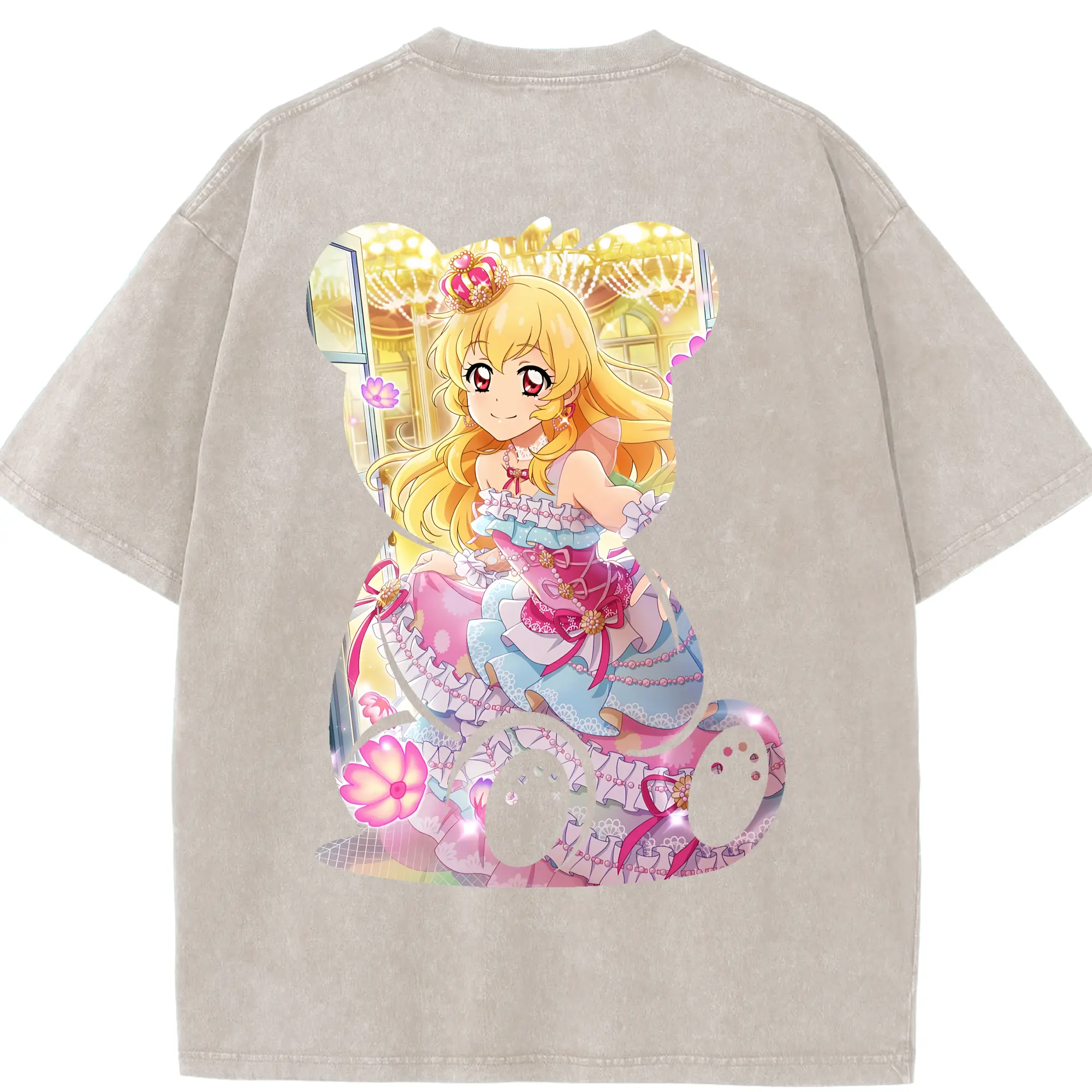 アイカツ グッズ 星宮 いちご - 綿100% ヴィンテージ風 半袖Tシャツ ・ フロントプリント ・ 柔らか肌触り ・ 通気性 快適 ・ スポーツ カジュアル 外出用