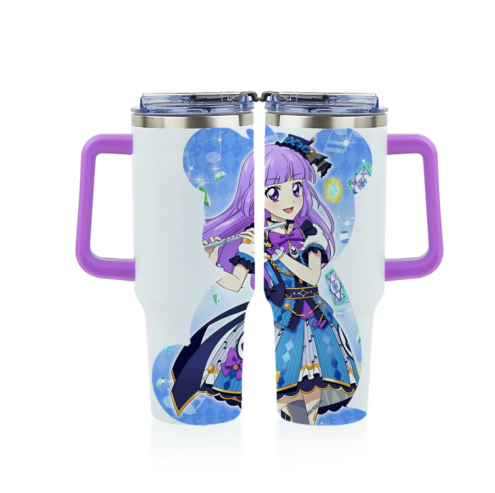 アイカツ グッズ 氷上 スミレ - 1200mL フルプリント車用タンブラー ・ 304ステンレス 内側 ・ 201ステンレス 外側 ・ 保温 保冷 ・ 通勤 ドライブ アウトドア用