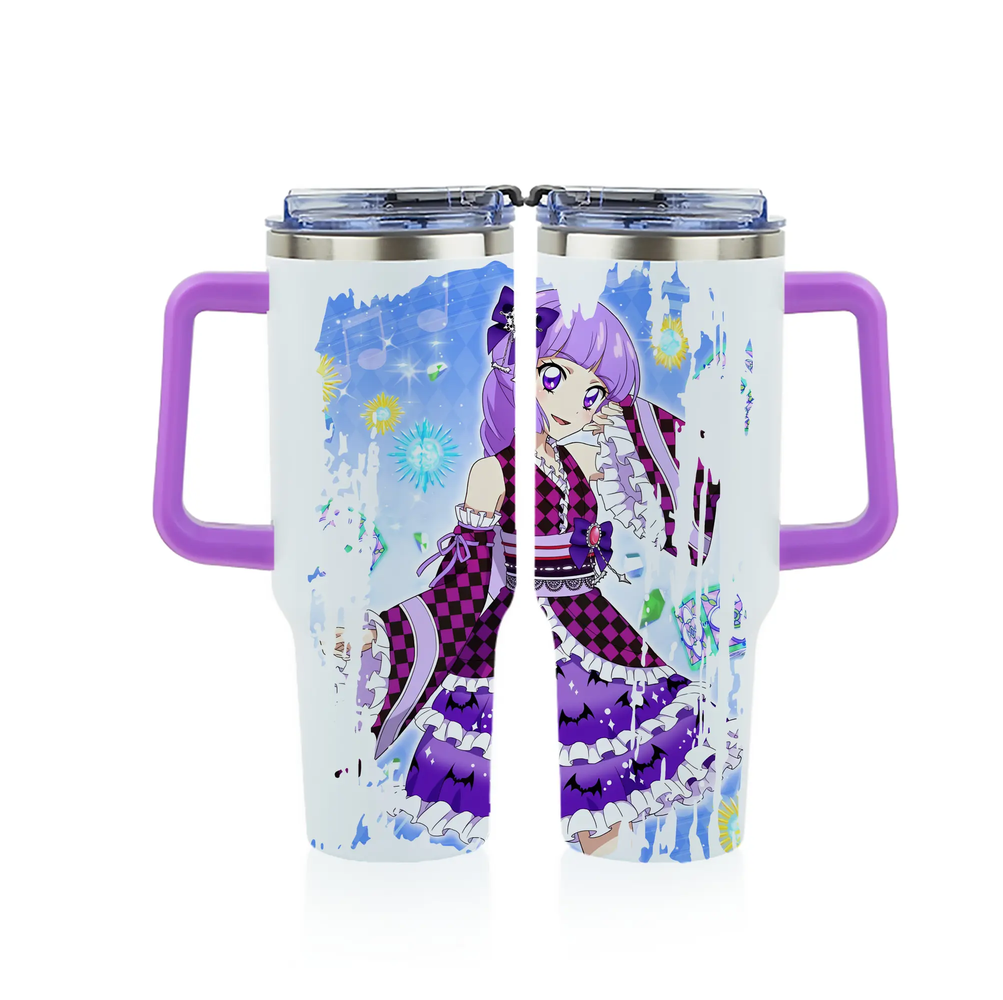 アイカツ グッズ 氷上 スミレ - 1200mL フルプリント車用タンブラー ・ 304ステンレス 内側 ・ 201ステンレス 外側 ・ 保温 保冷 ・ 通勤 ドライブ アウトドア用