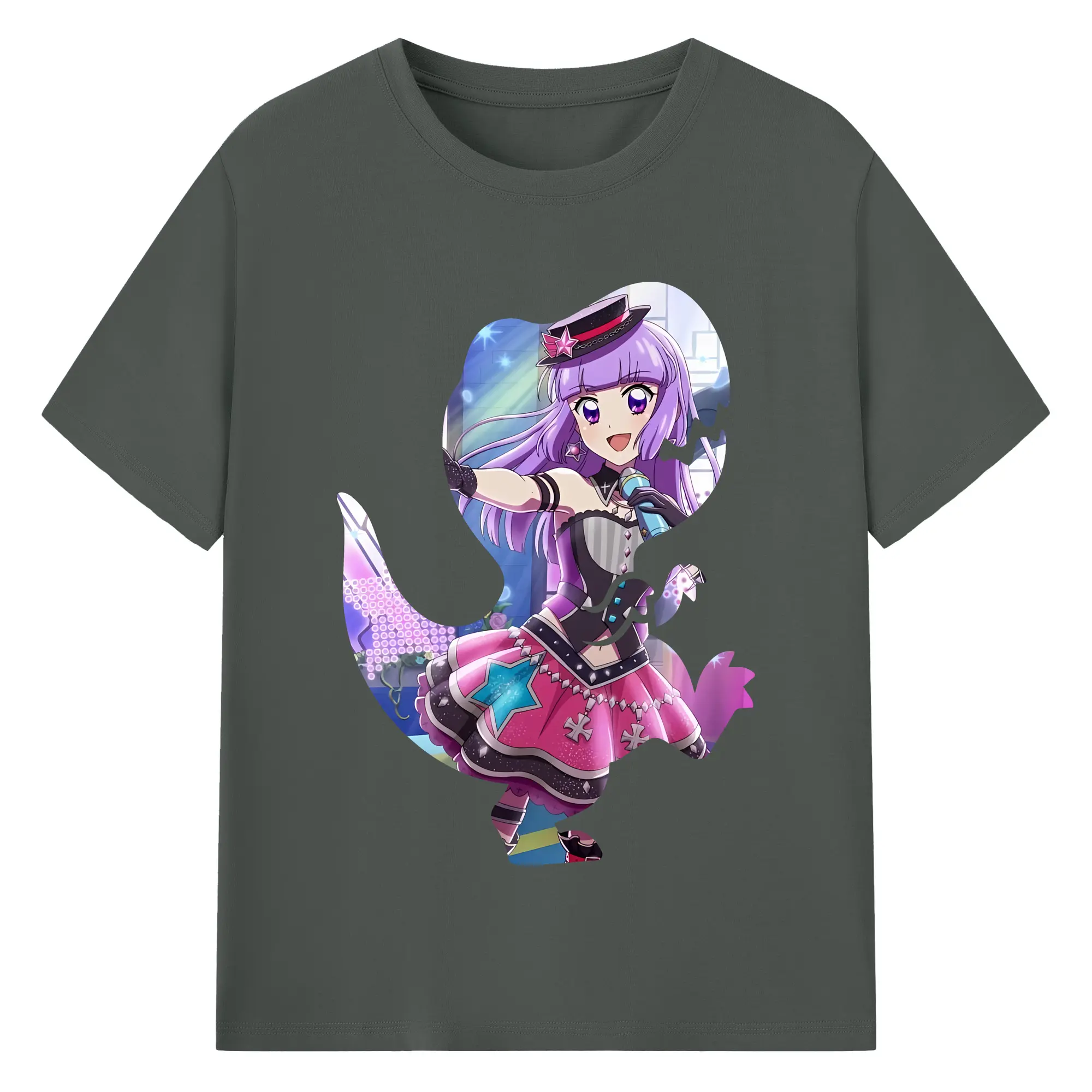 アイカツ グッズ 氷上 スミレ - 綿100% ヴィンテージ風 半袖Tシャツ ・ 背面プリント ・ 柔らか肌触り ・ 通気性 快適 ・ スポーツ カジュアル 外出用
