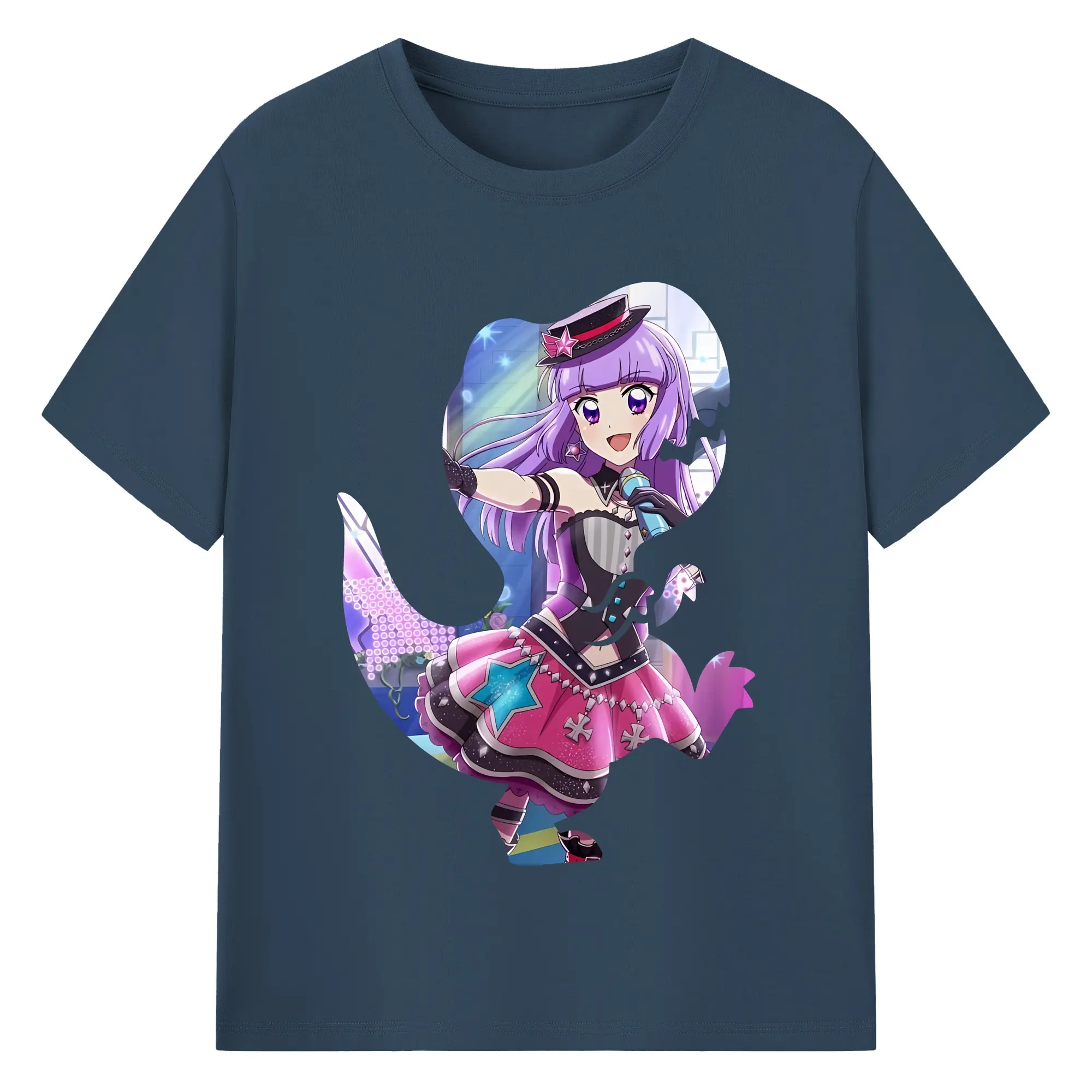 アイカツ グッズ 氷上 スミレ - 綿100% ヴィンテージ風 半袖Tシャツ ・ フロントプリント ・ 柔らか肌触り ・ 通気性 快適 ・ スポーツ カジュアル 外出用