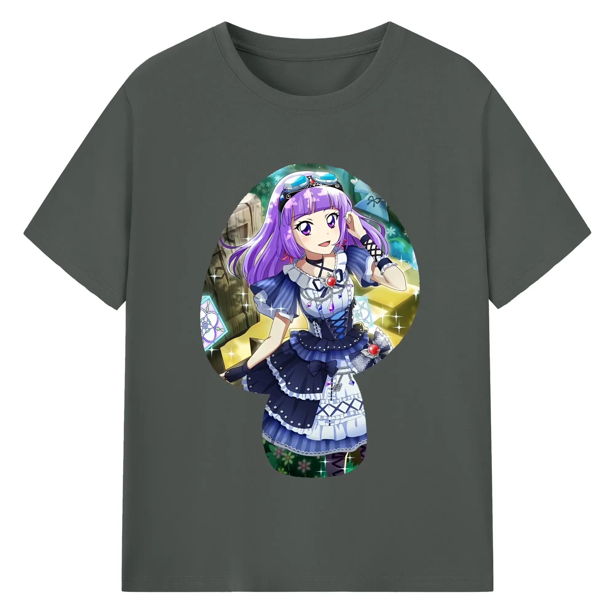 アイカツ グッズ 氷上 スミレ - 綿100% ヴィンテージ風 半袖Tシャツ ・ 背面プリント ・ 柔らか肌触り ・ 通気性 快適 ・ スポーツ カジュアル 外出用