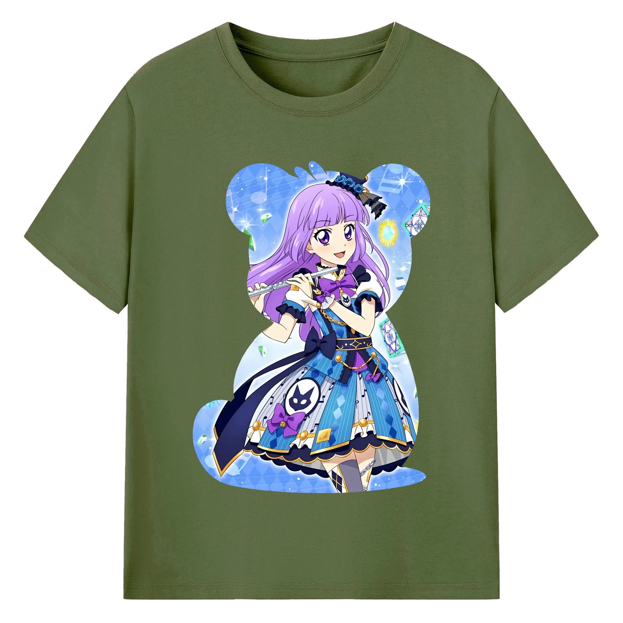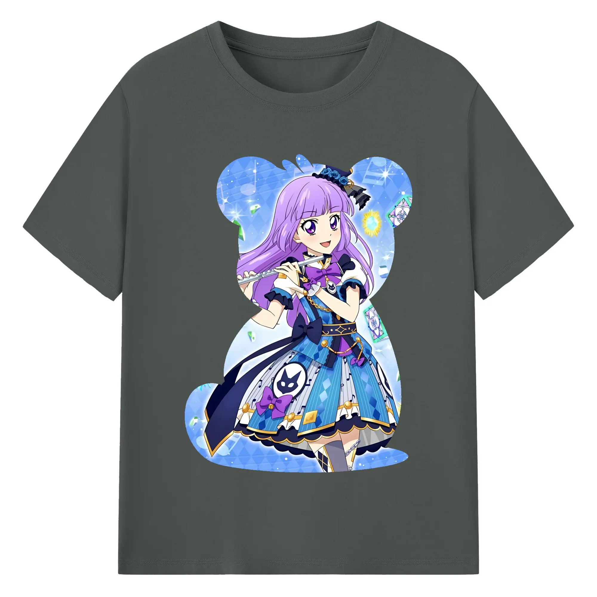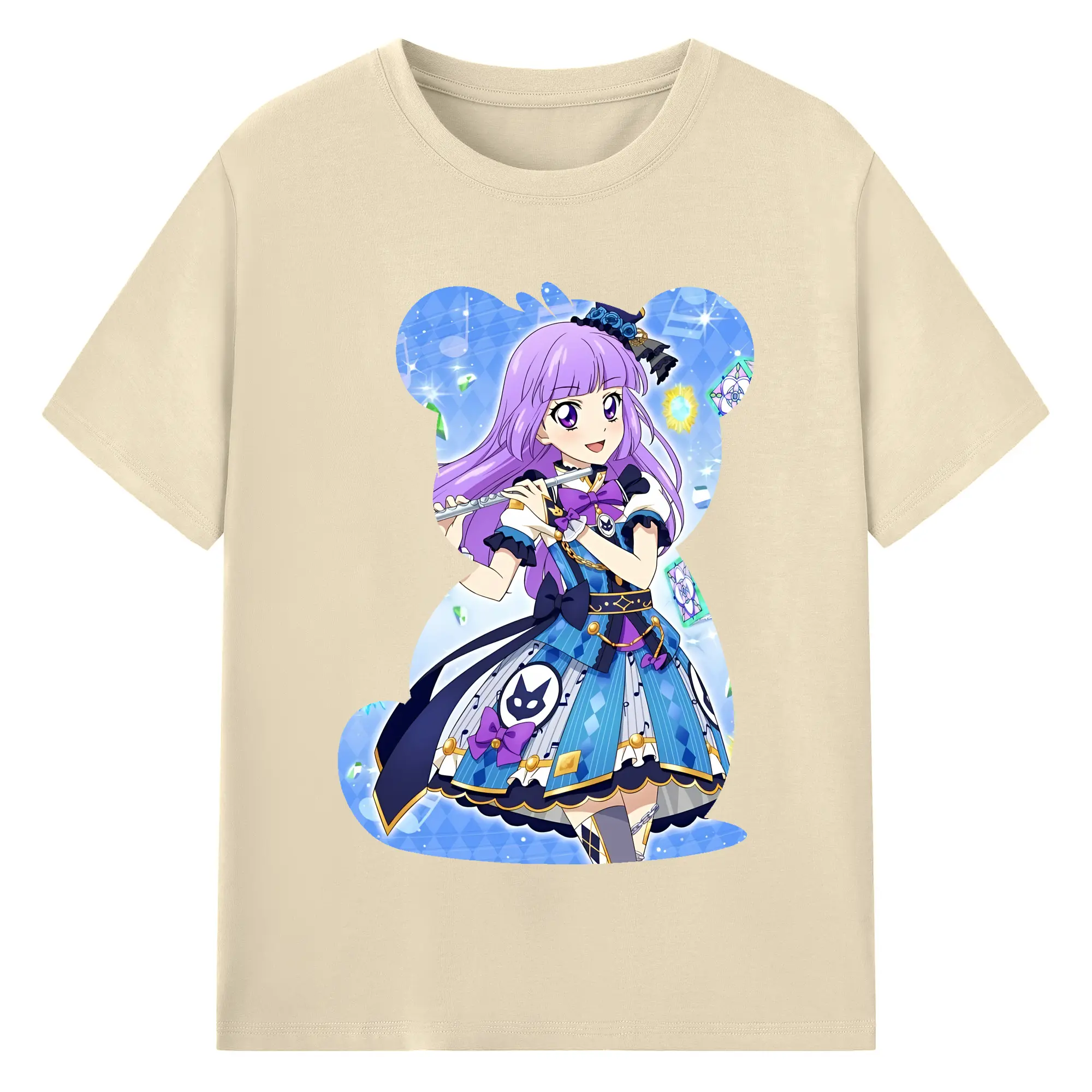 アイカツ グッズ 氷上 スミレ - 綿100% ヴィンテージ風 半袖Tシャツ ・ フロントプリント ・ 柔らか肌触り ・ 通気性 快適 ・ スポーツ カジュアル 外出用
