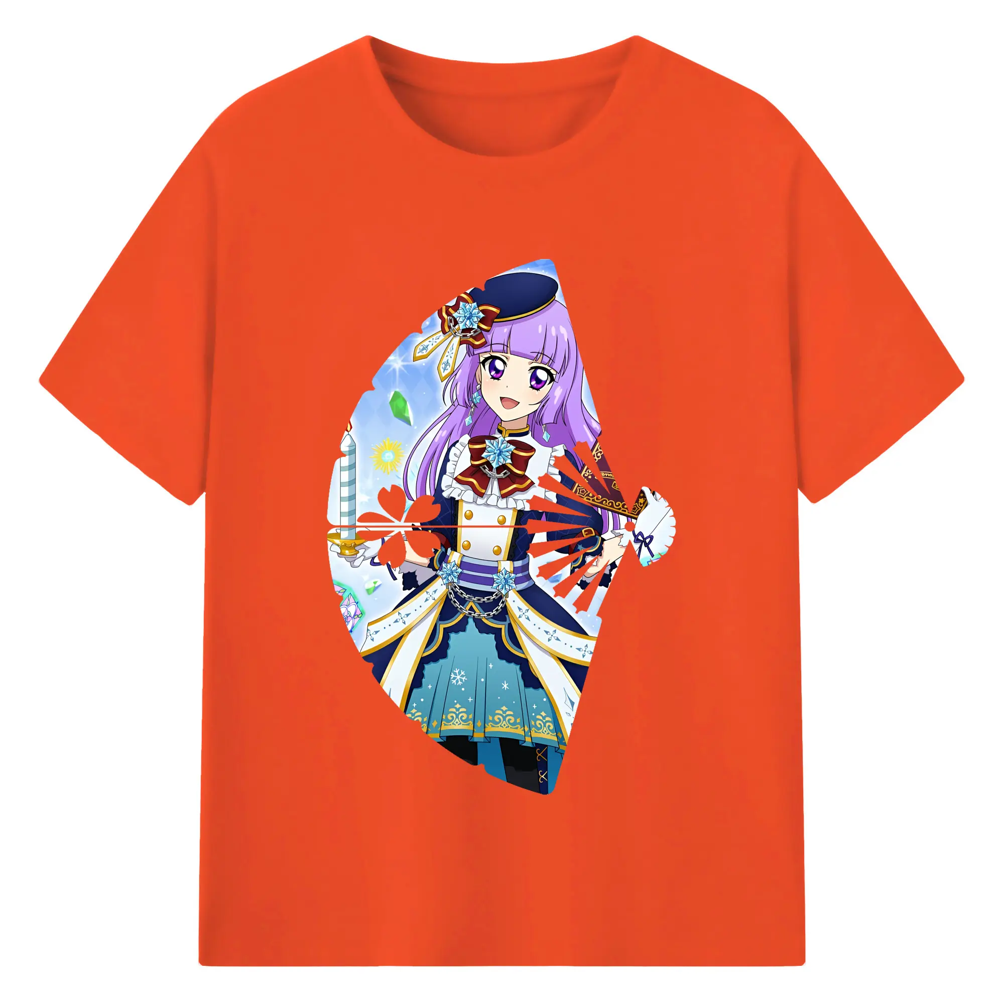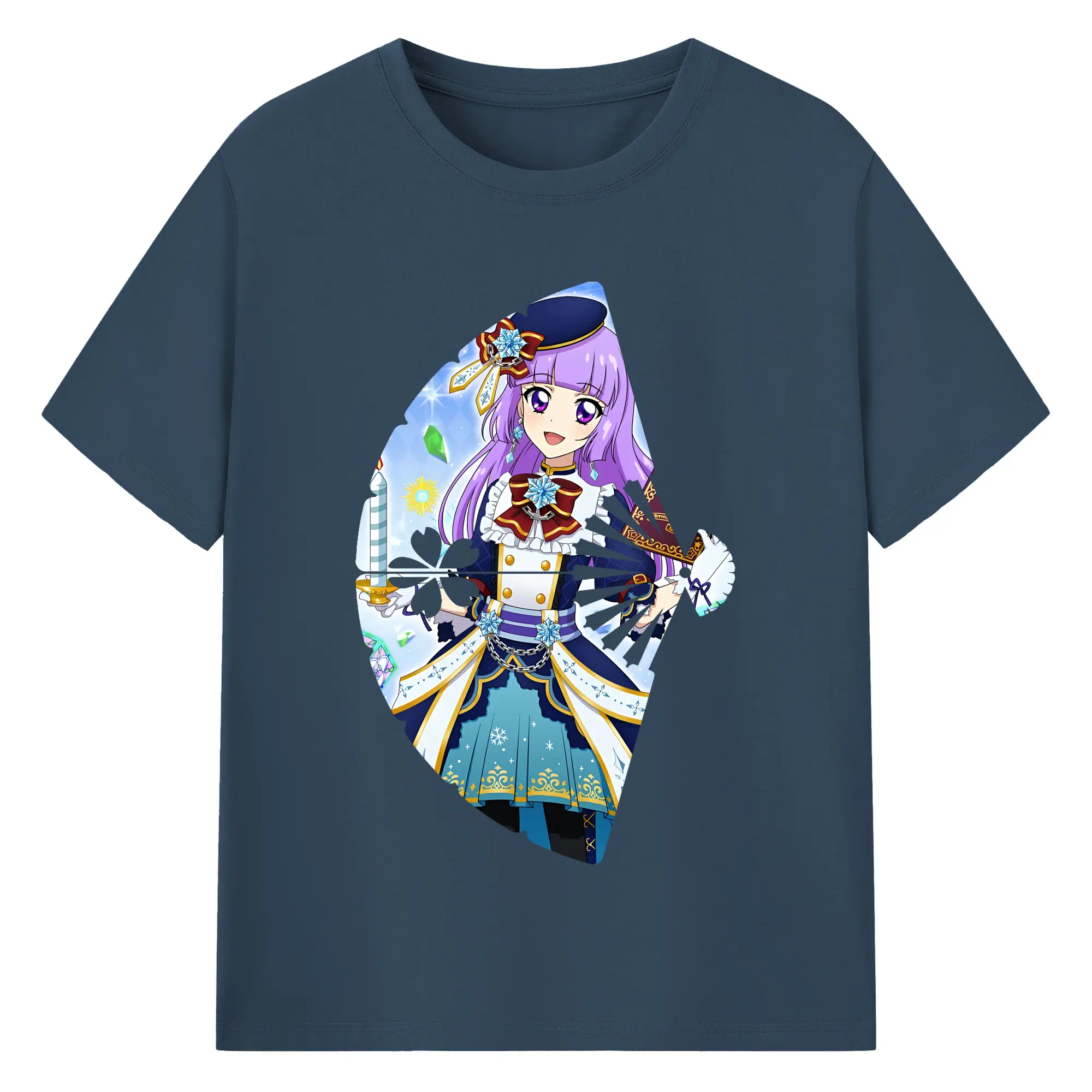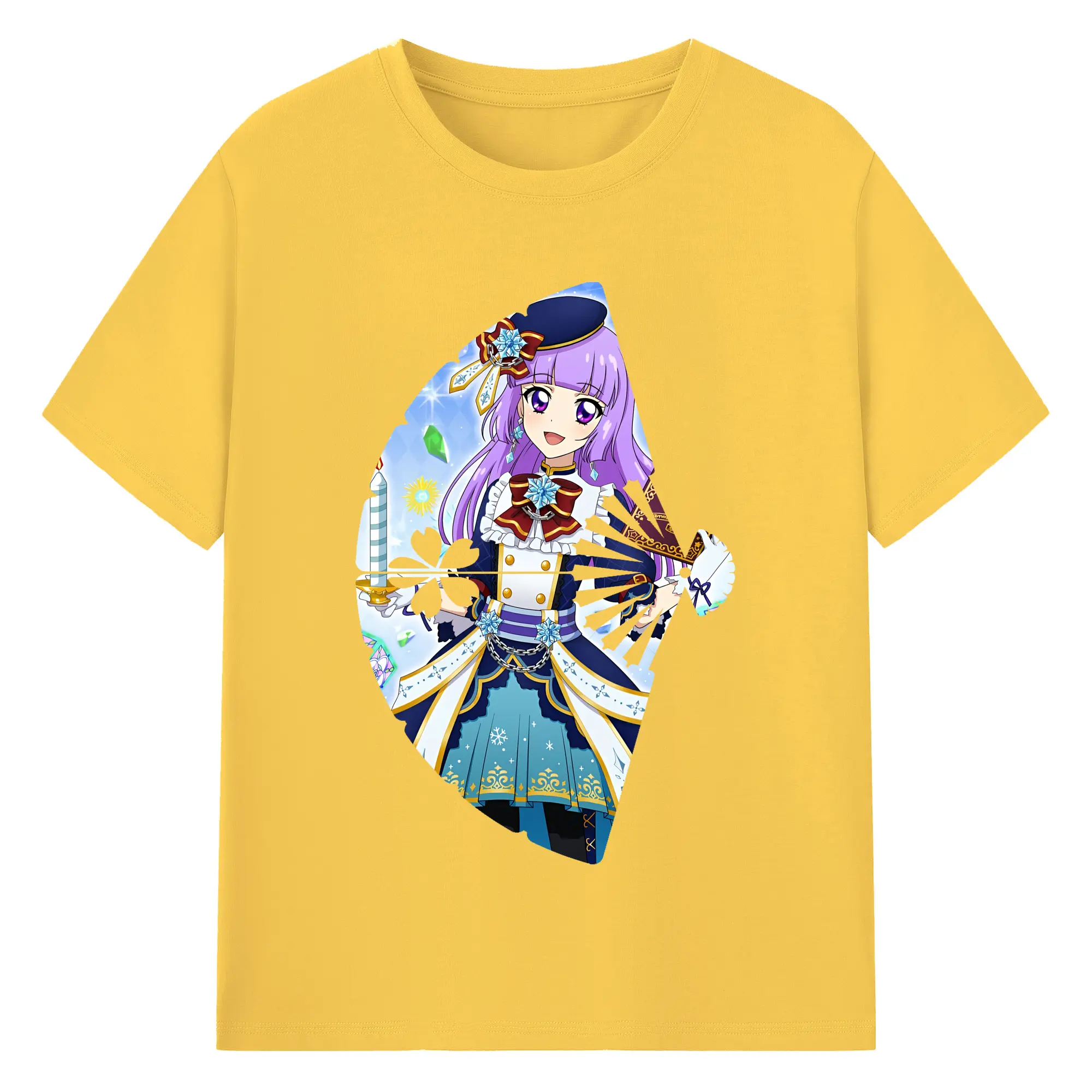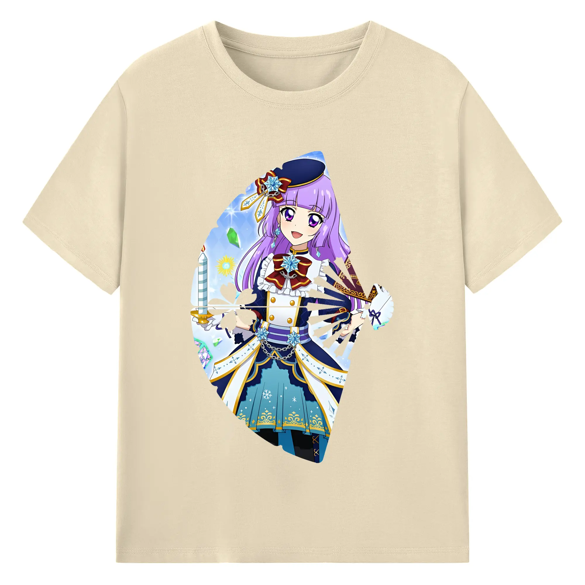 アイカツ グッズ 氷上 スミレ - 綿100% ヴィンテージ風 半袖Tシャツ ・ フロントプリント ・ 柔らか肌触り ・ 通気性 快適 ・ スポーツ カジュアル 外出用