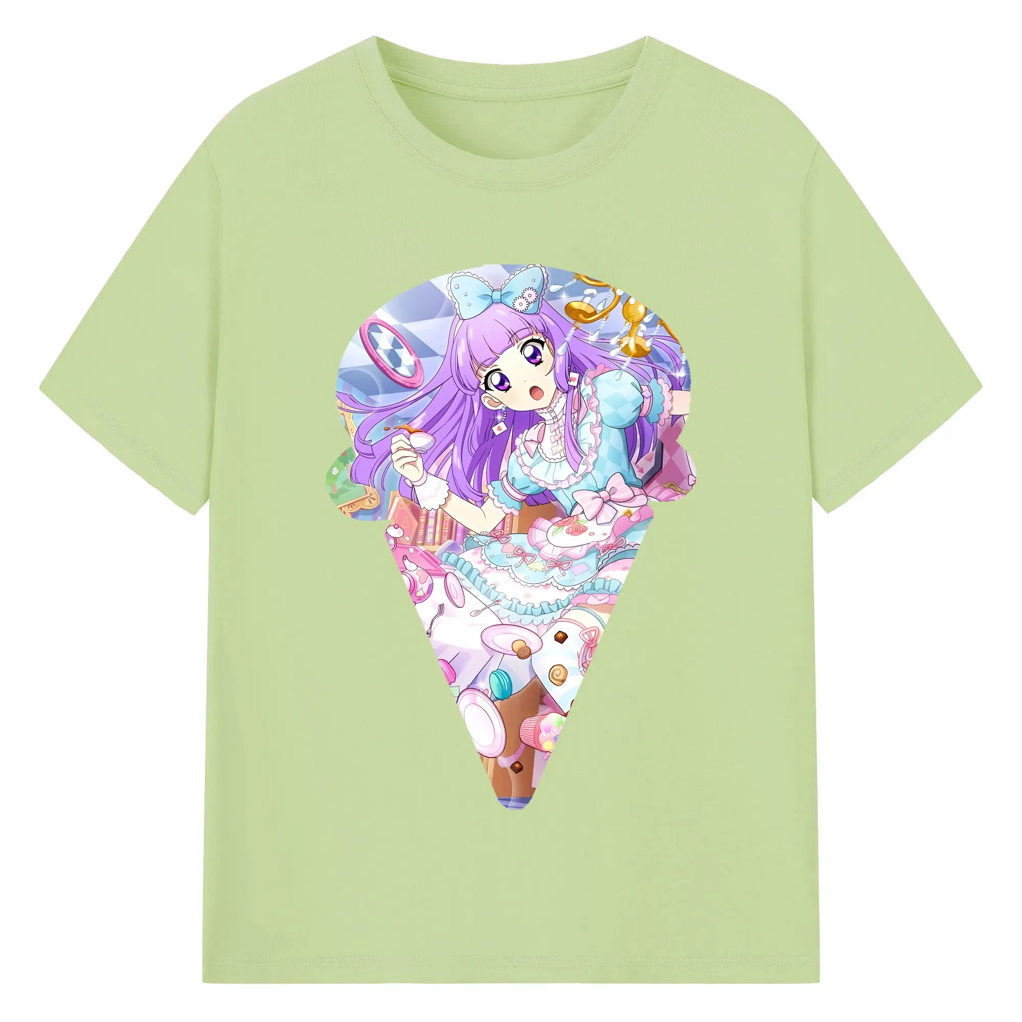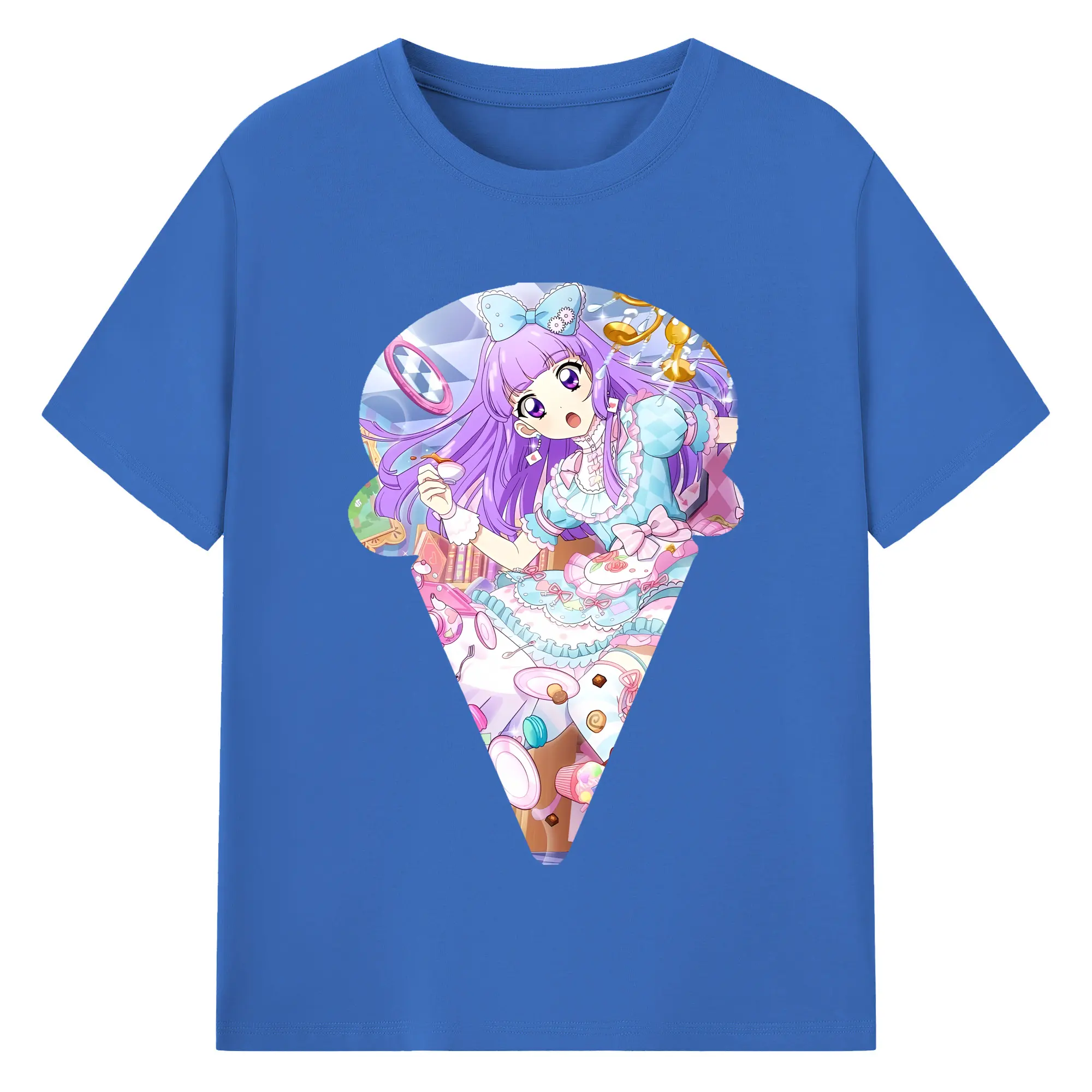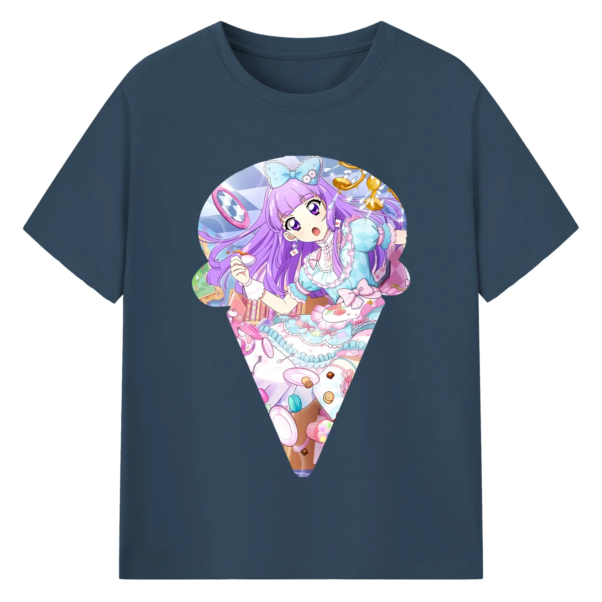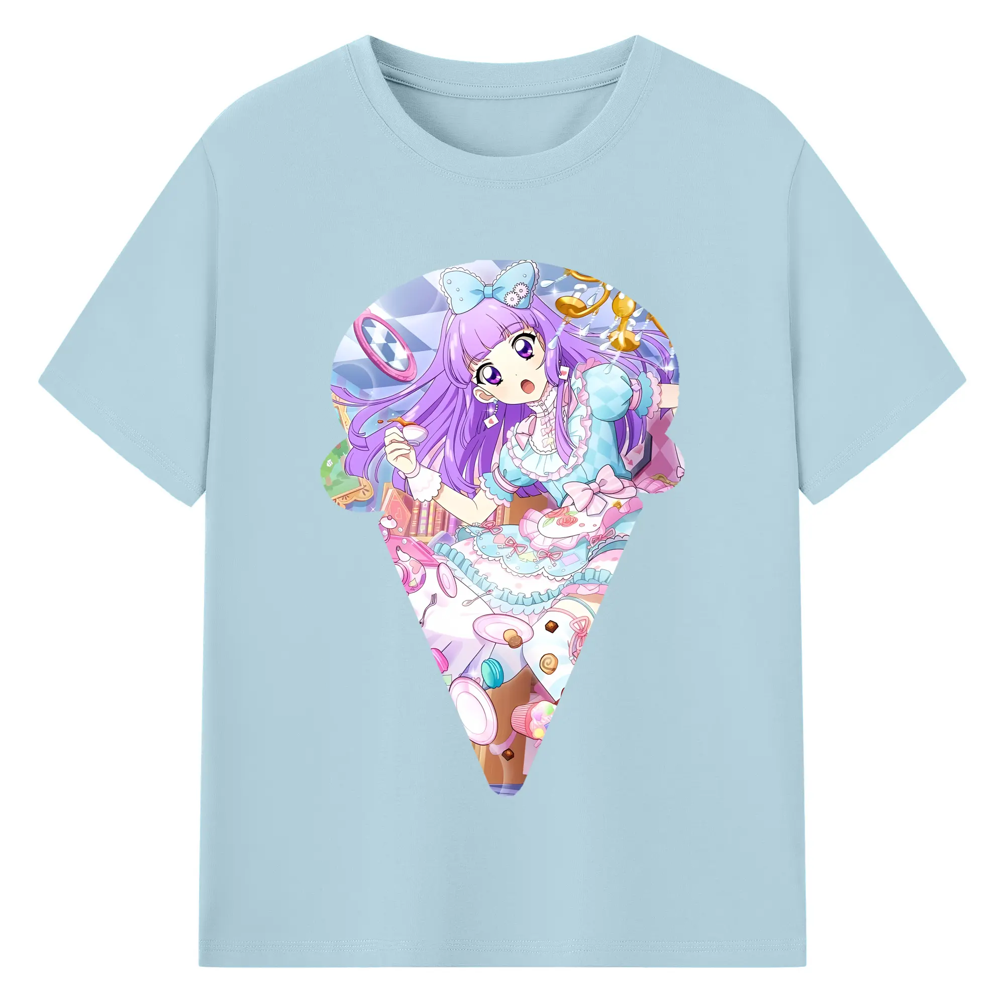 アイカツ グッズ 氷上 スミレ - 綿100% ヴィンテージ風 半袖Tシャツ ・ フロントプリント ・ 柔らか肌触り ・ 通気性 快適 ・ スポーツ カジュアル 外出用
