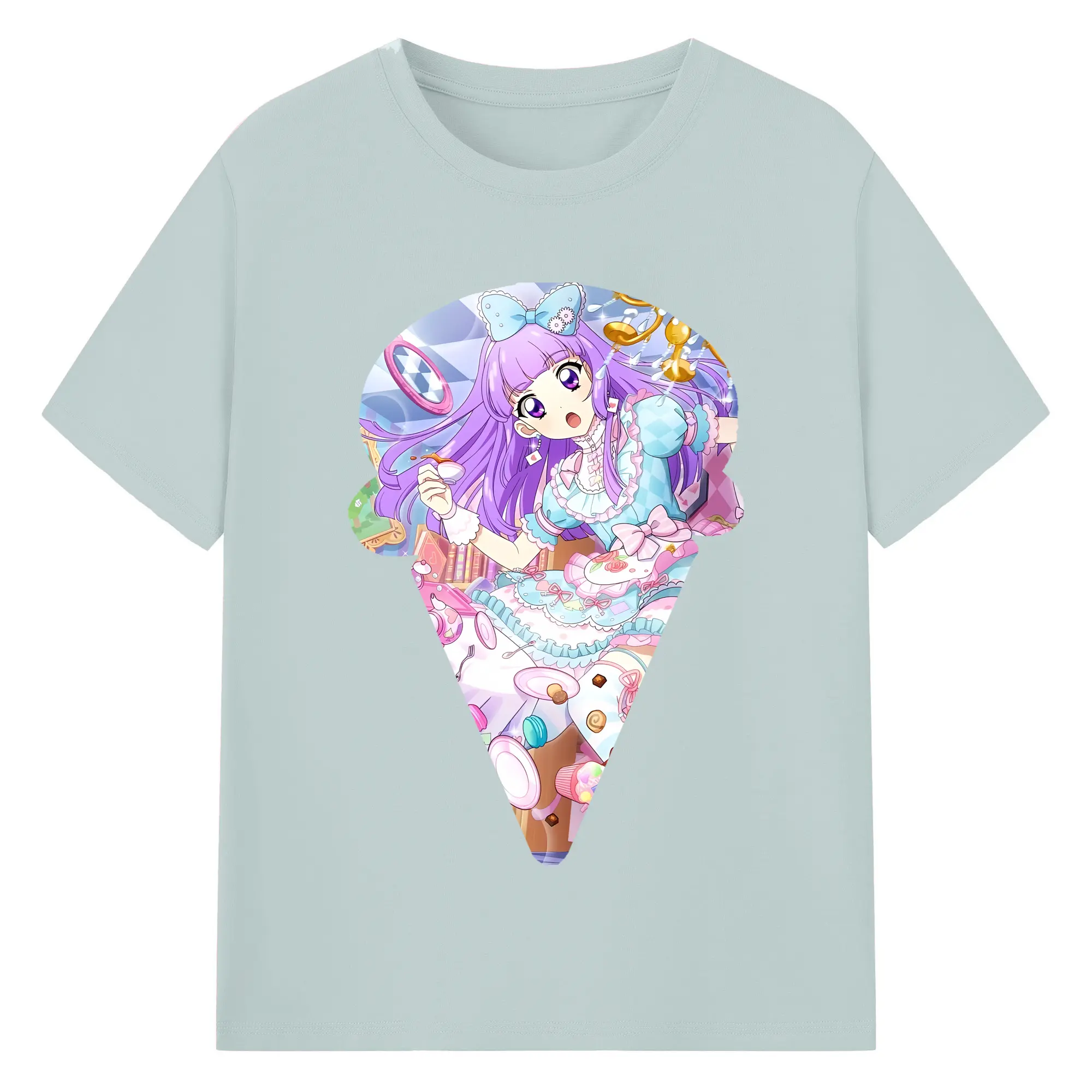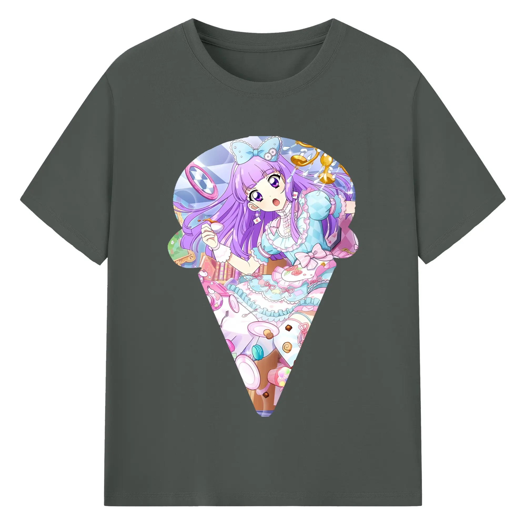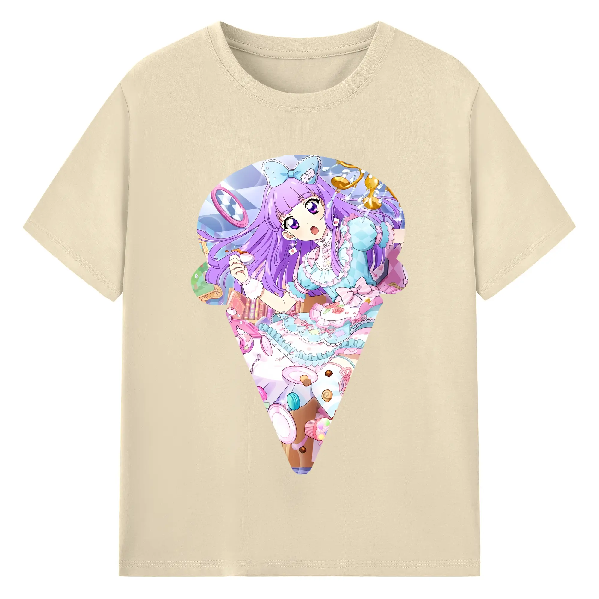 アイカツ グッズ 氷上 スミレ - 綿100% ヴィンテージ風 半袖Tシャツ ・ フロントプリント ・ 柔らか肌触り ・ 通気性 快適 ・ スポーツ カジュアル 外出用