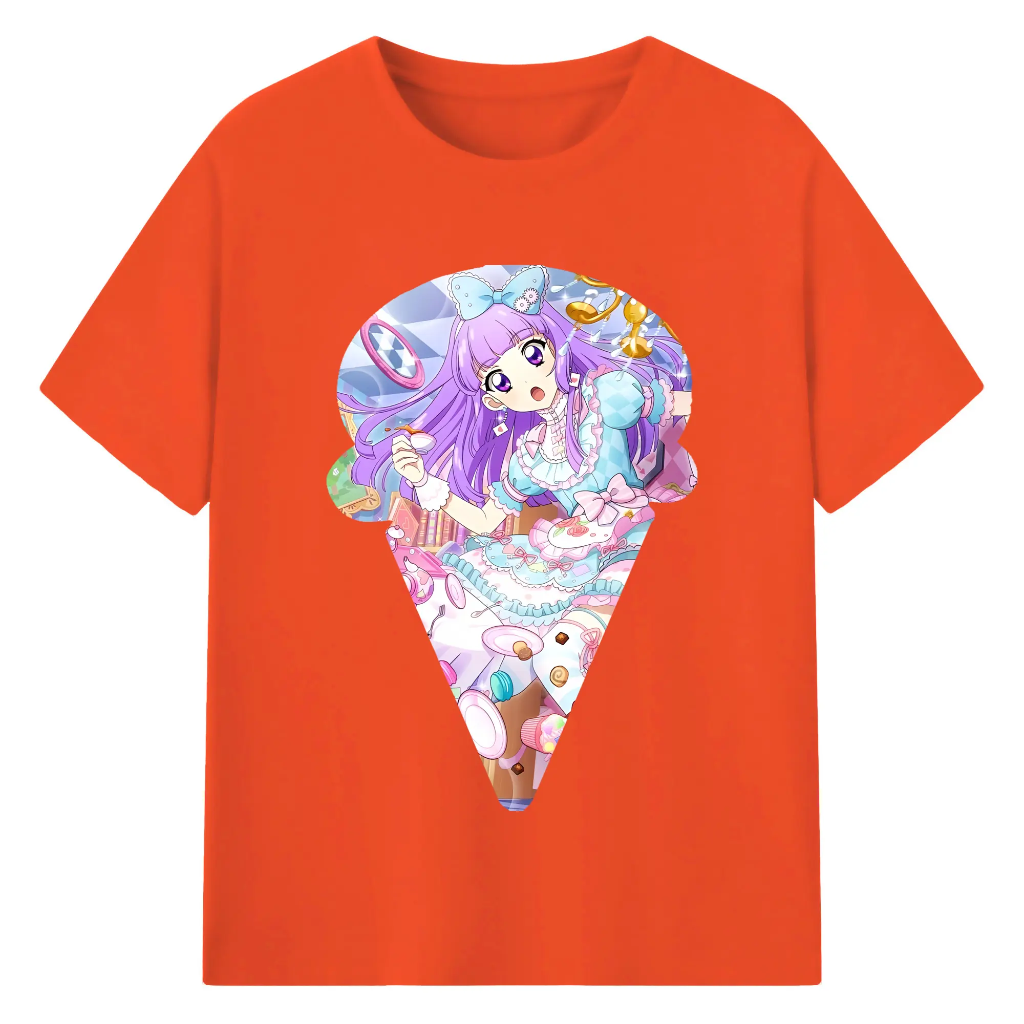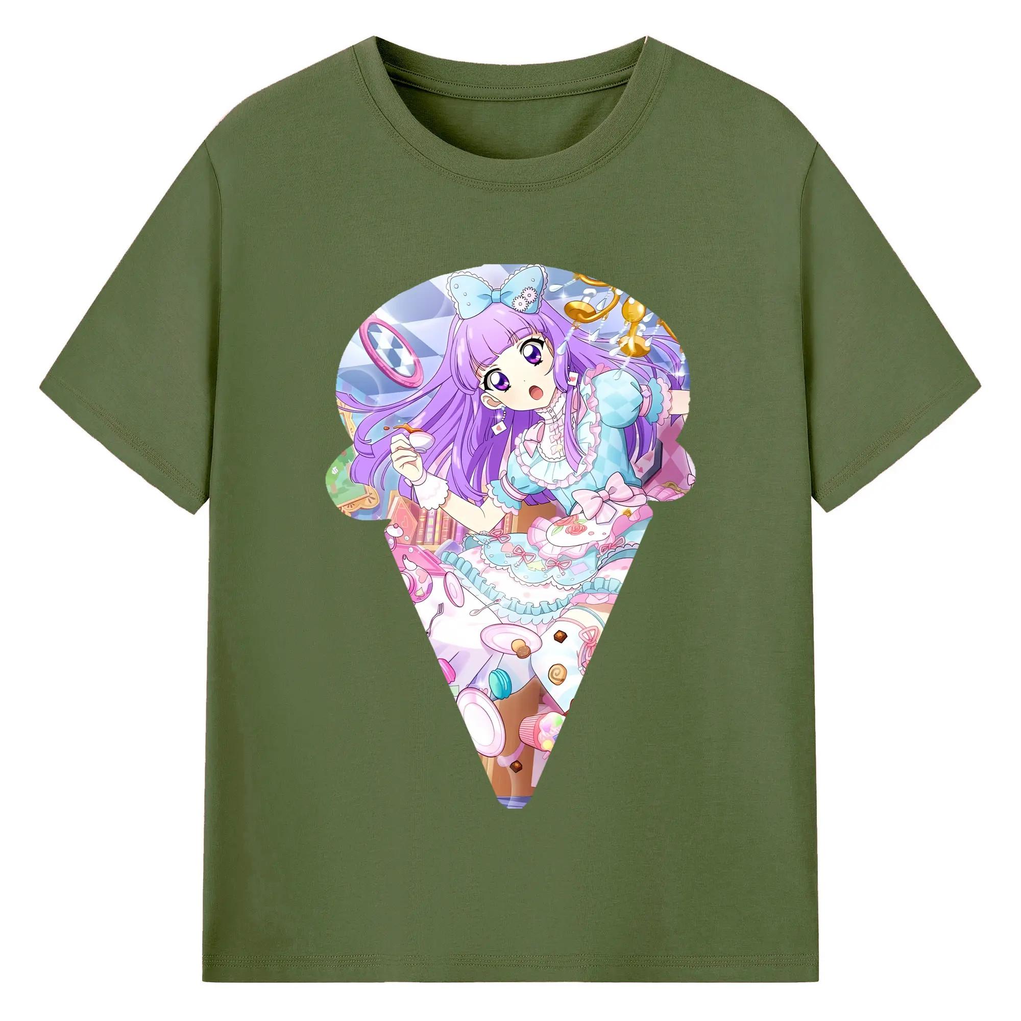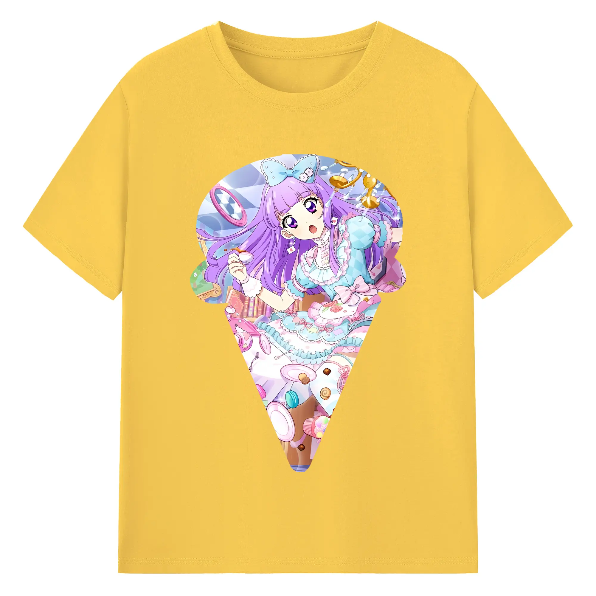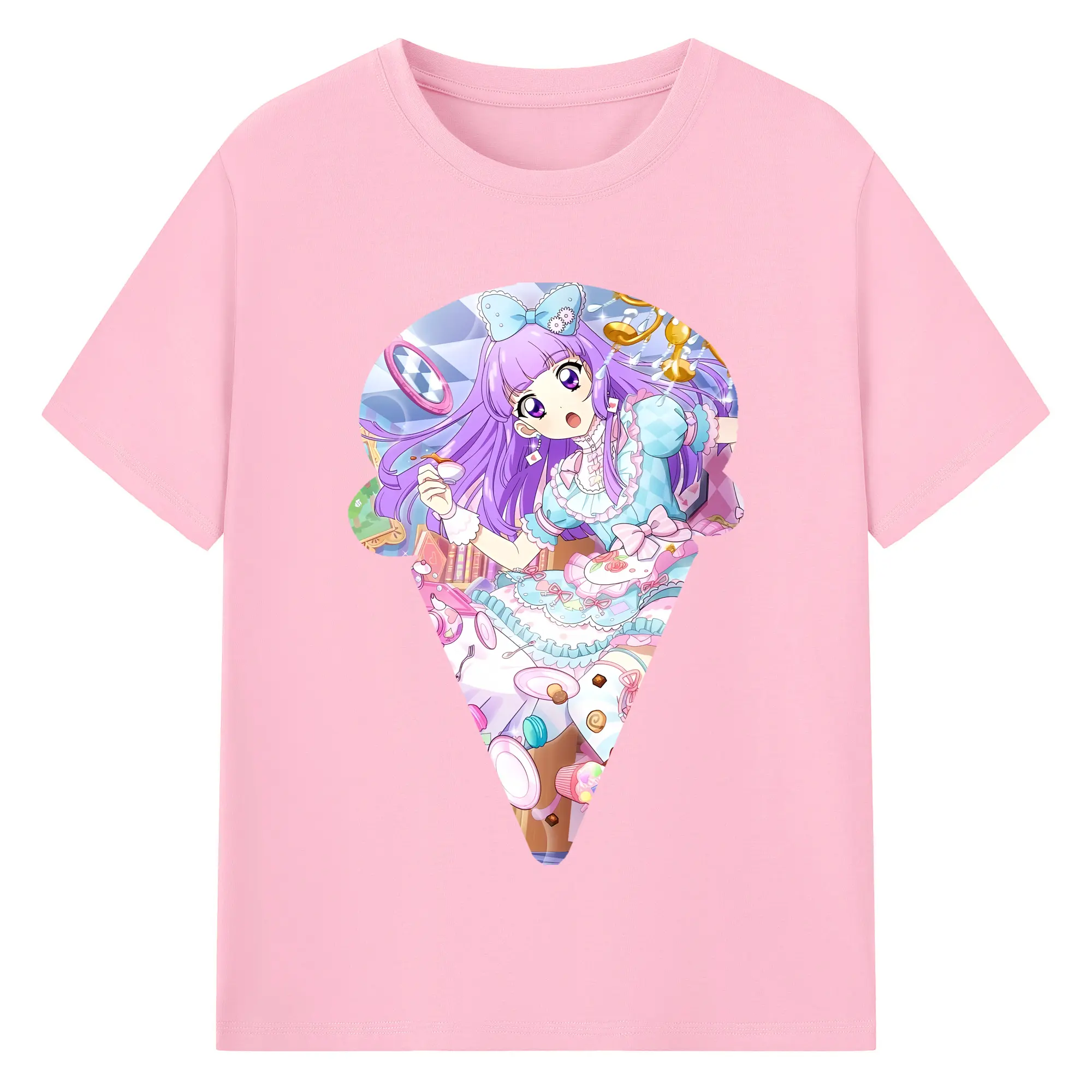 アイカツ グッズ 氷上 スミレ - 綿100% ヴィンテージ風 半袖Tシャツ ・ フロントプリント ・ 柔らか肌触り ・ 通気性 快適 ・ スポーツ カジュアル 外出用