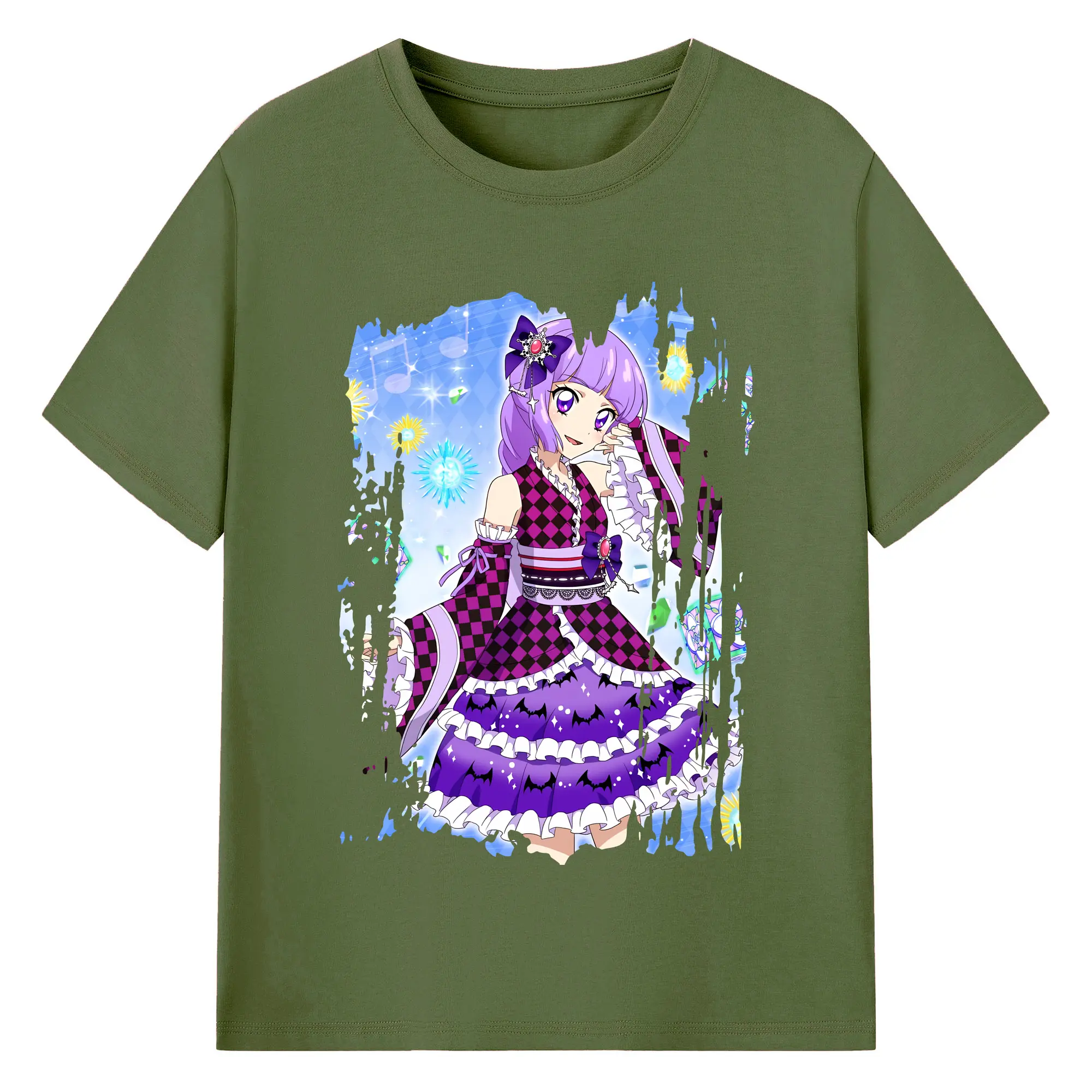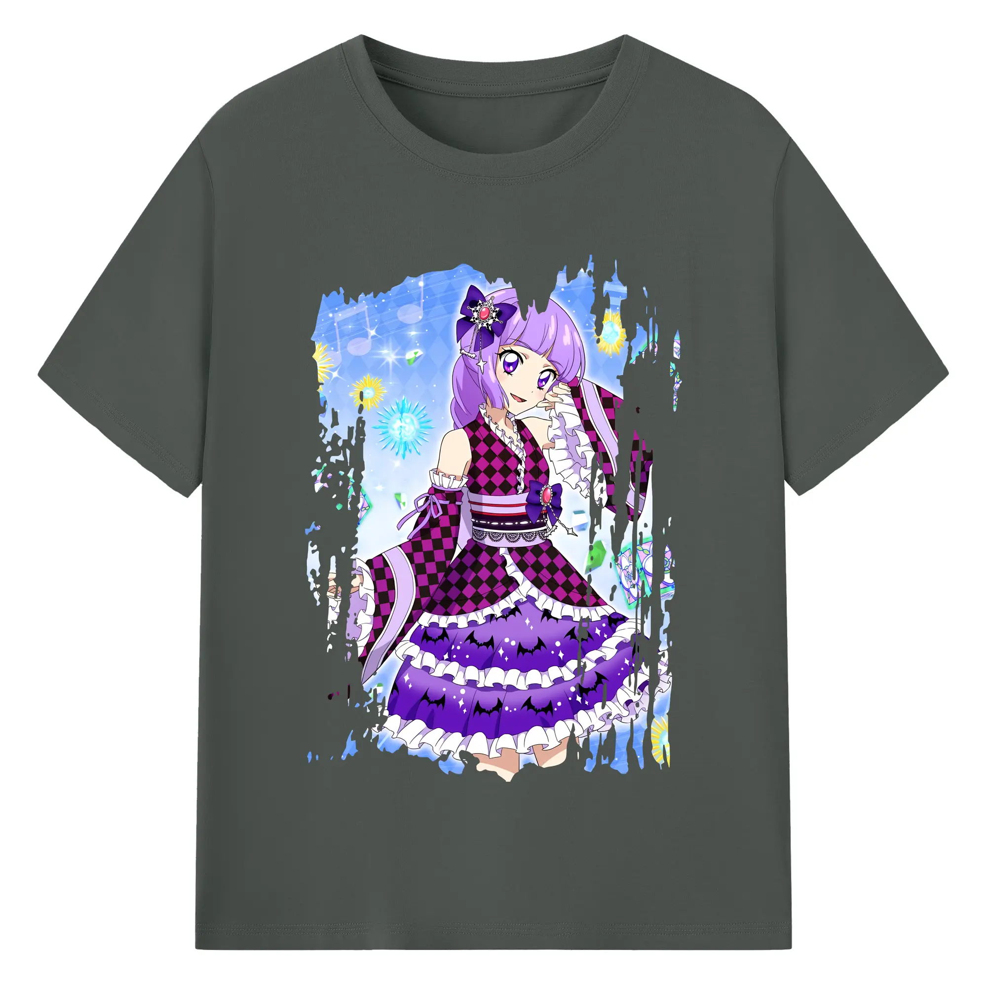 アイカツ グッズ 氷上 スミレ - 綿100% ヴィンテージ風 半袖Tシャツ ・ 背面プリント ・ 柔らか肌触り ・ 通気性 快適 ・ スポーツ カジュアル 外出用