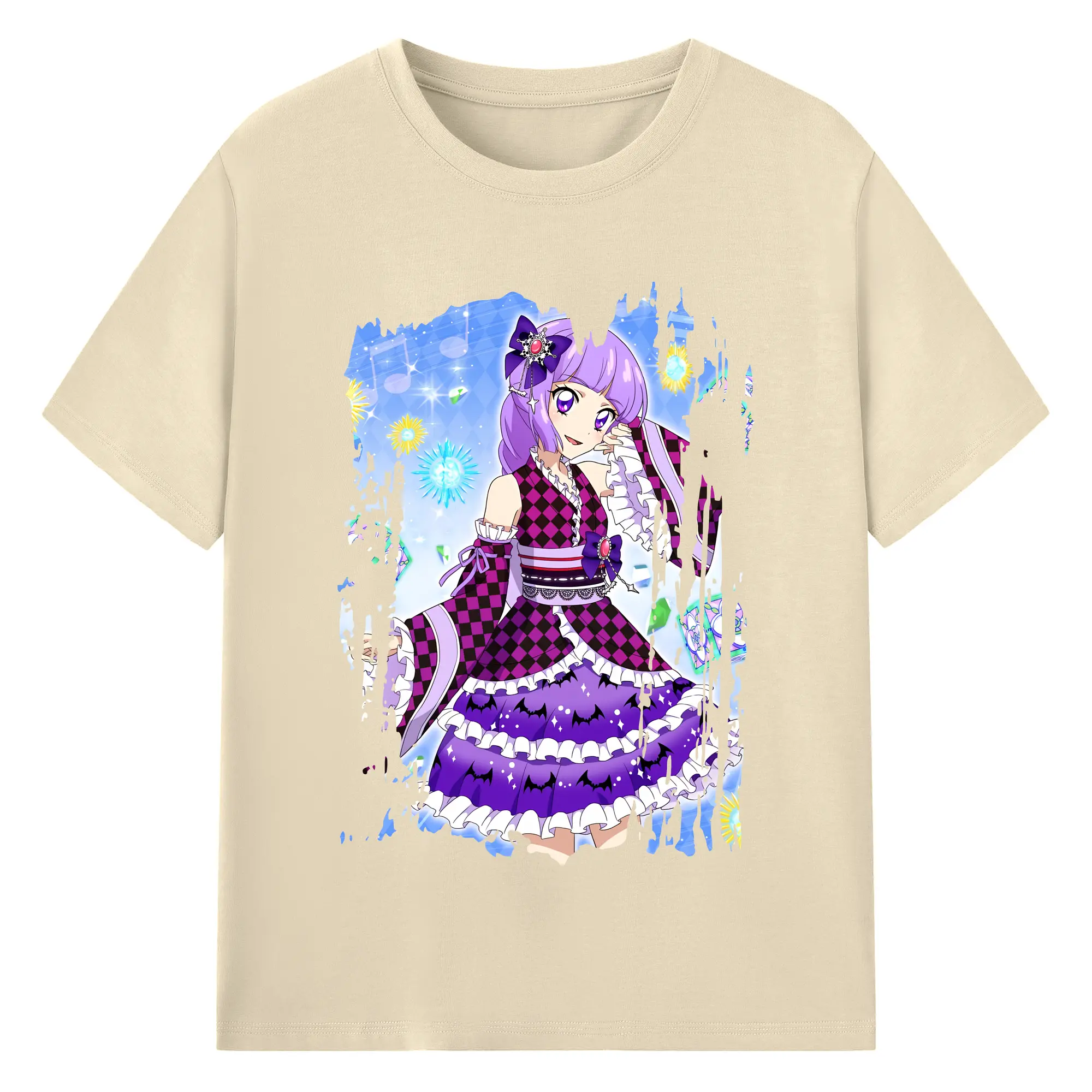 アイカツ グッズ 氷上 スミレ - 綿100% ヴィンテージ風 半袖Tシャツ ・ フロントプリント ・ 柔らか肌触り ・ 通気性 快適 ・ スポーツ カジュアル 外出用