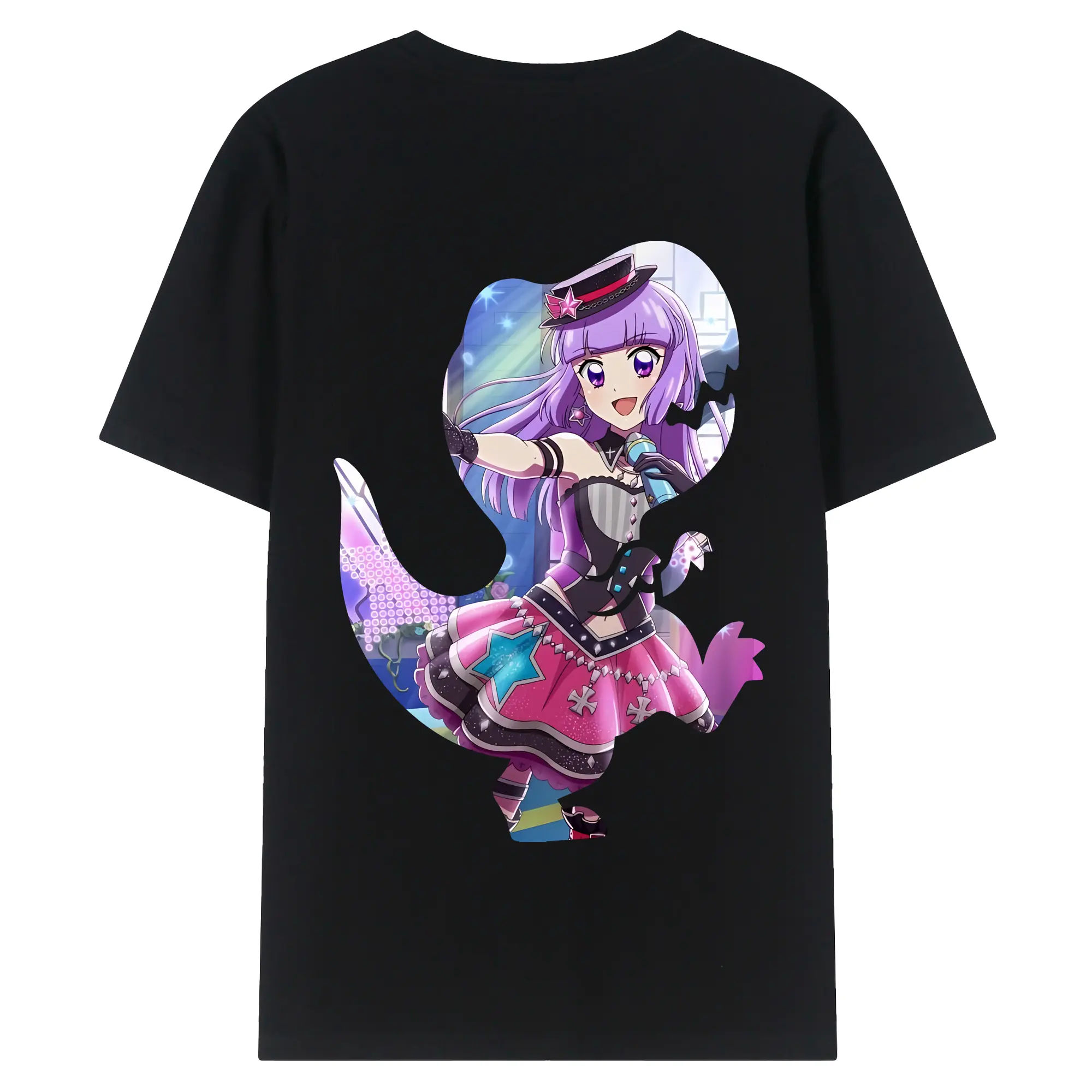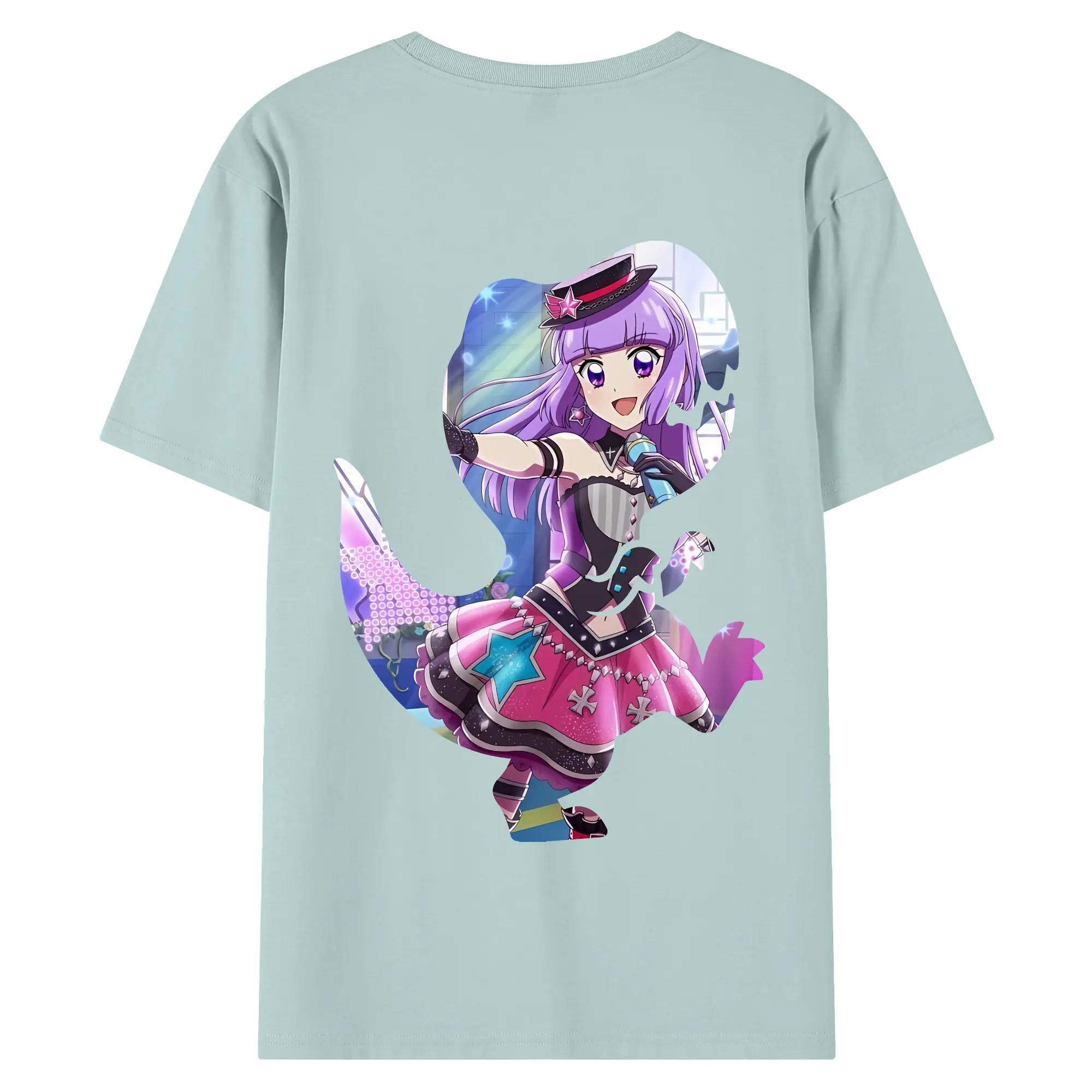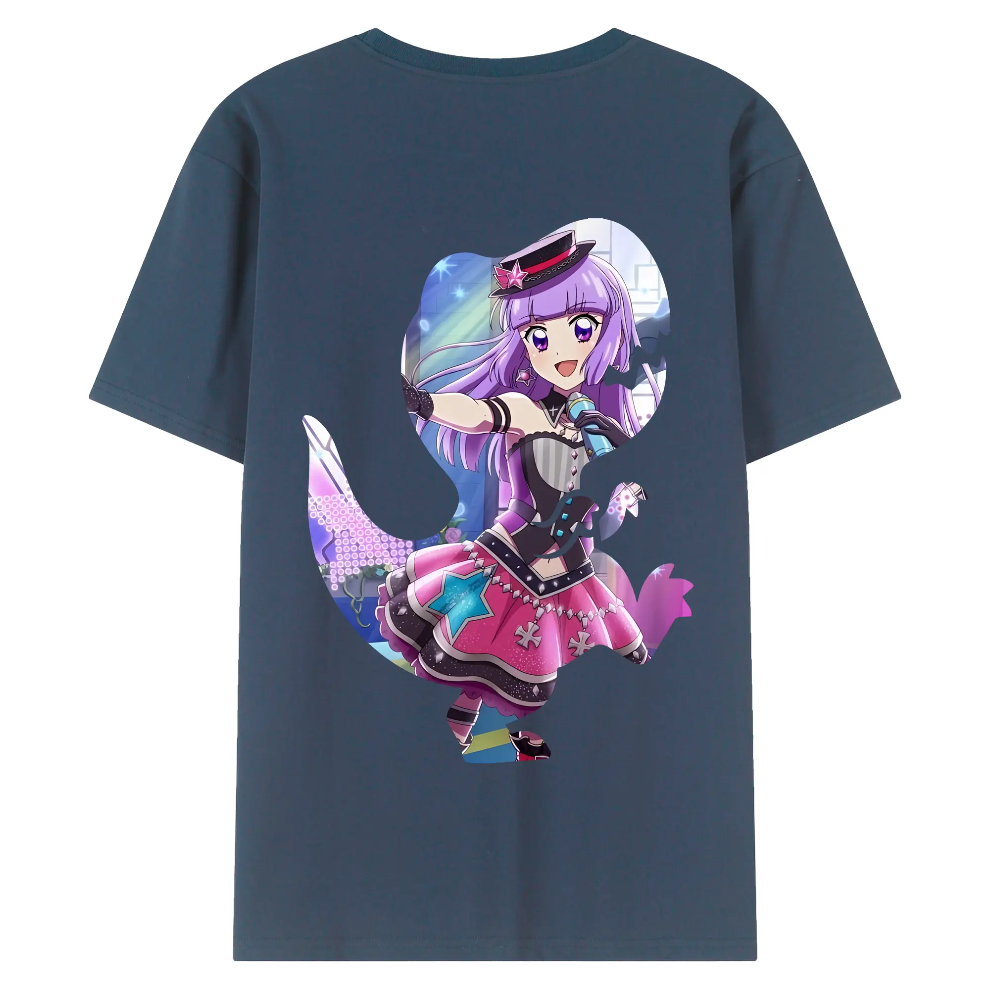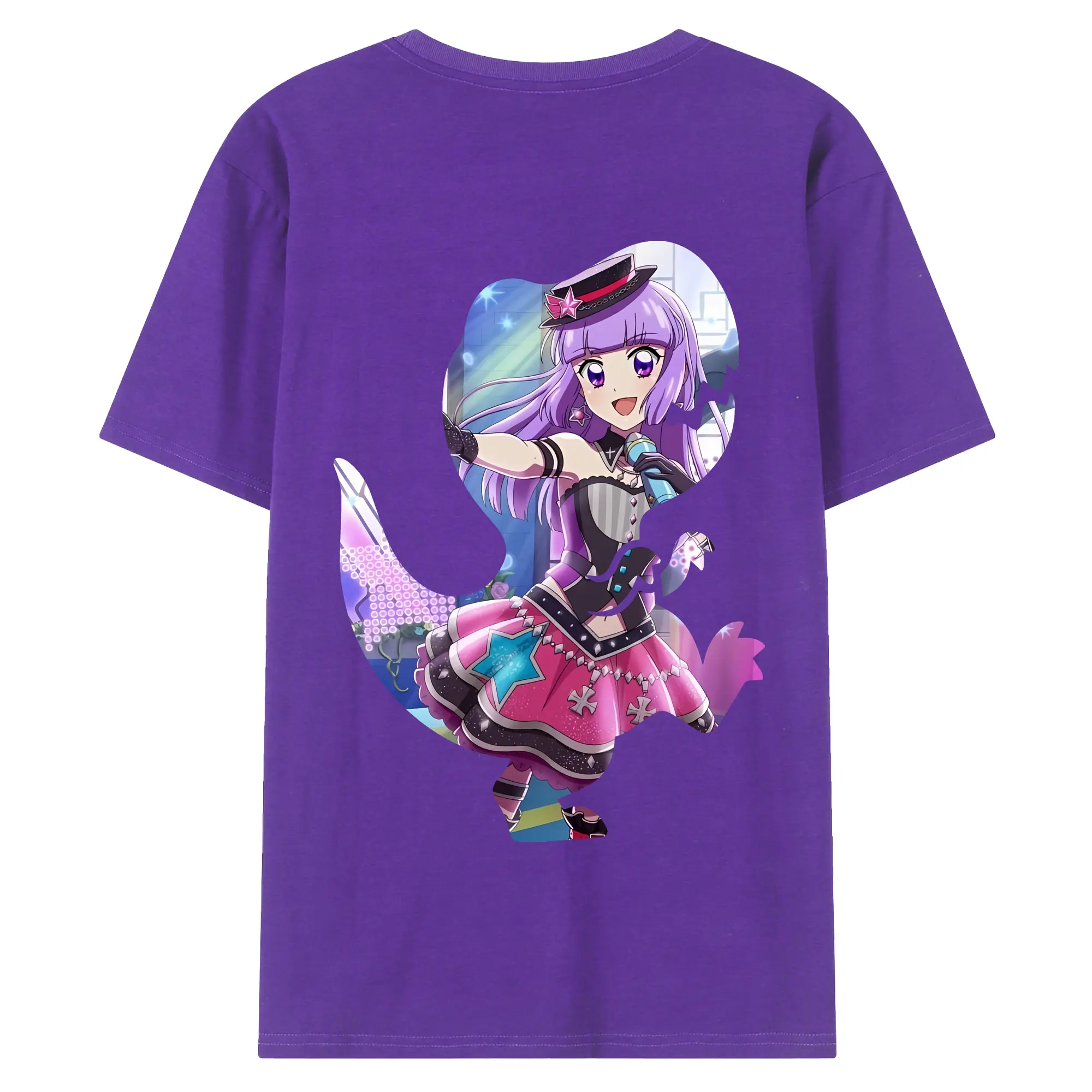 アイカツ グッズ 氷上 スミレ - 綿100% ヴィンテージ風 半袖Tシャツ ・ 背面プリント ・ 柔らか肌触り ・ 通気性 快適 ・ スポーツ カジュアル 外出用