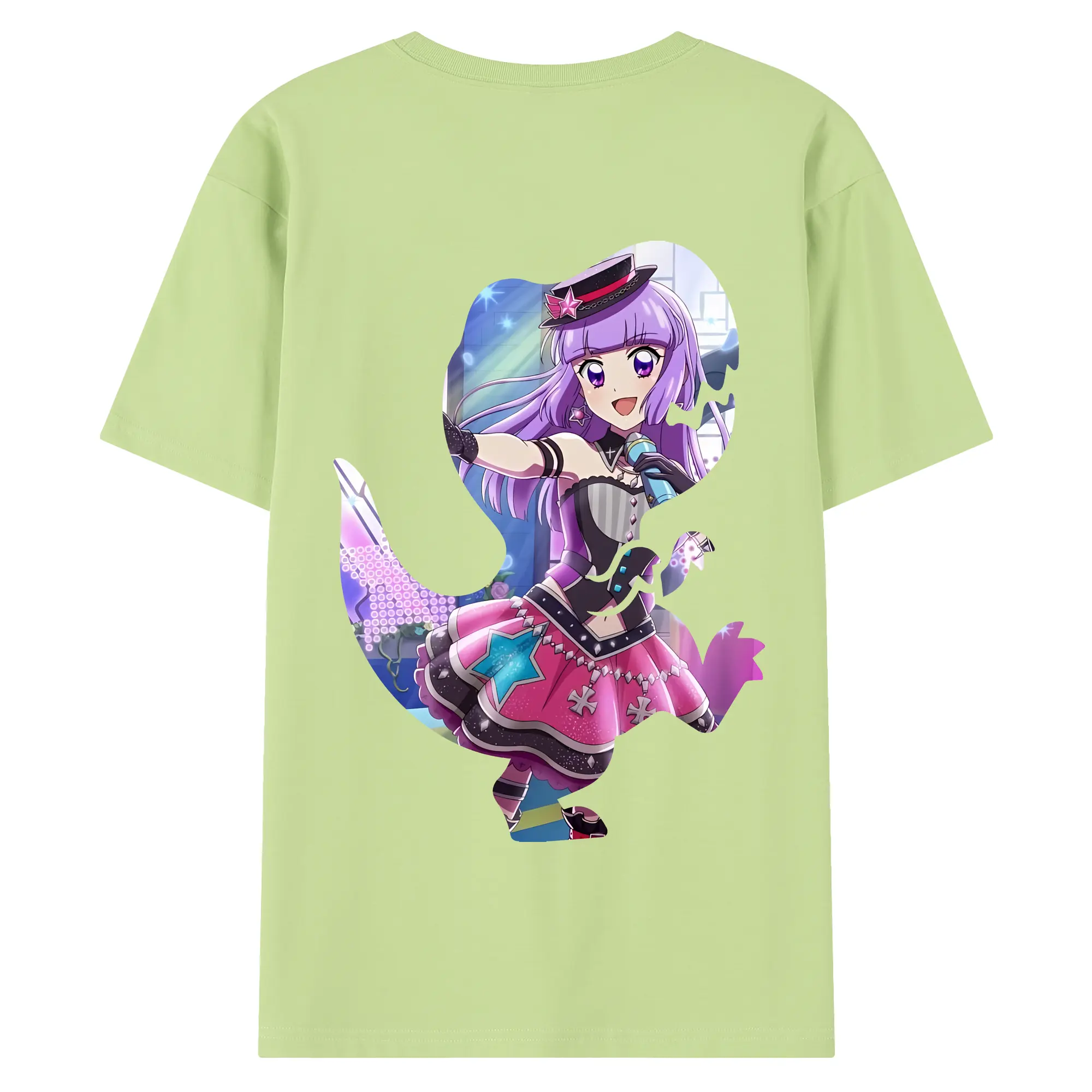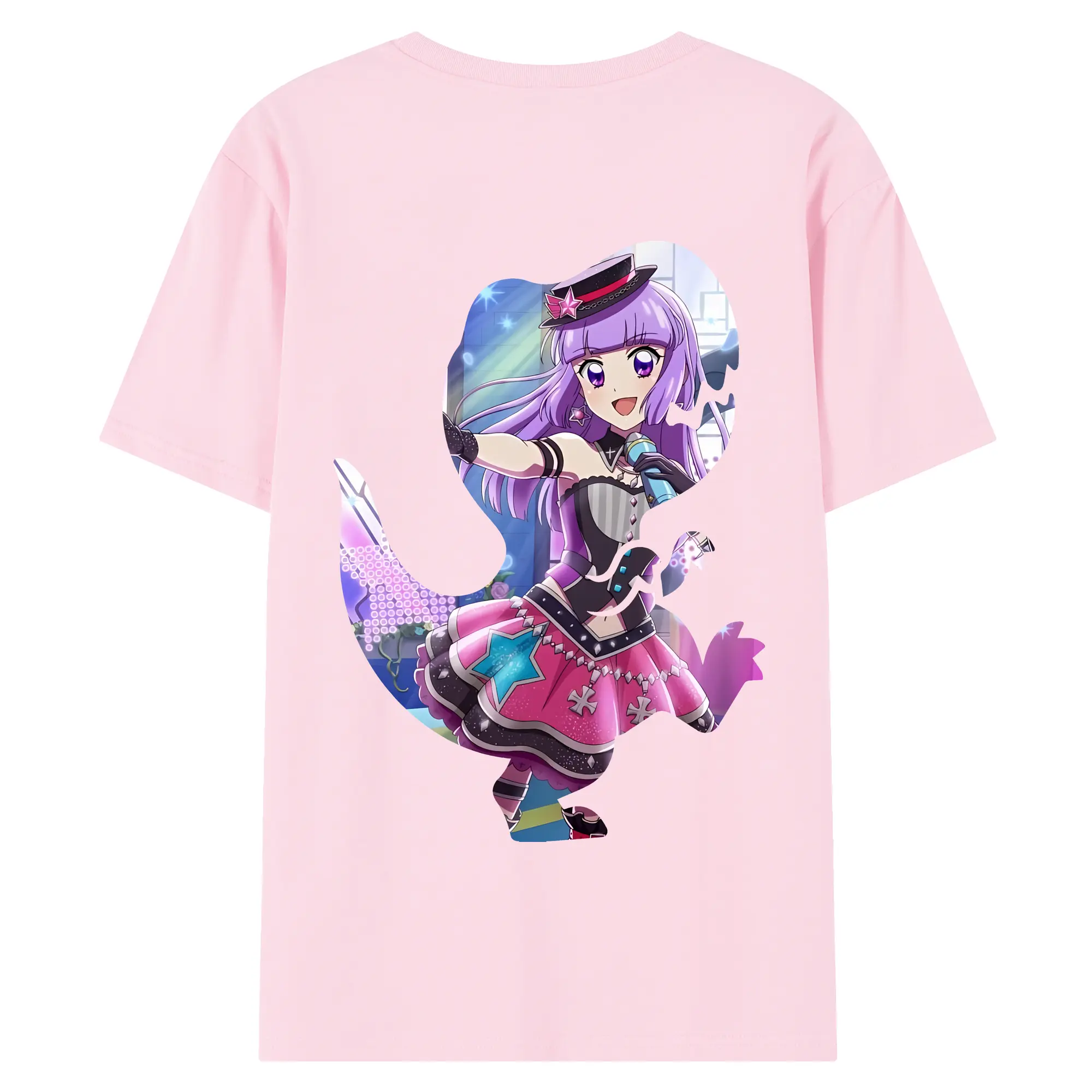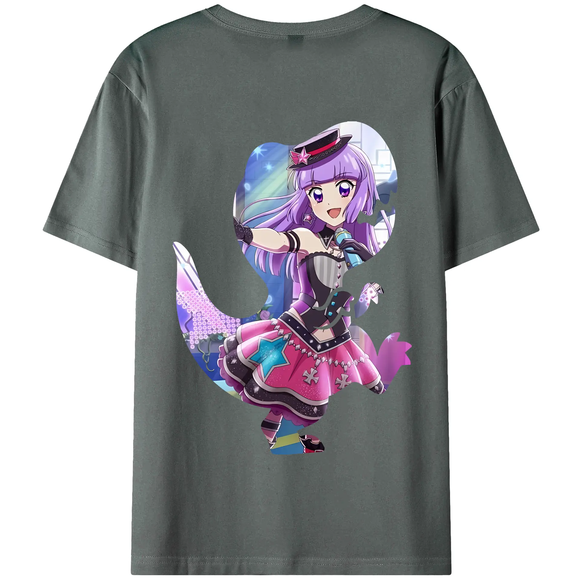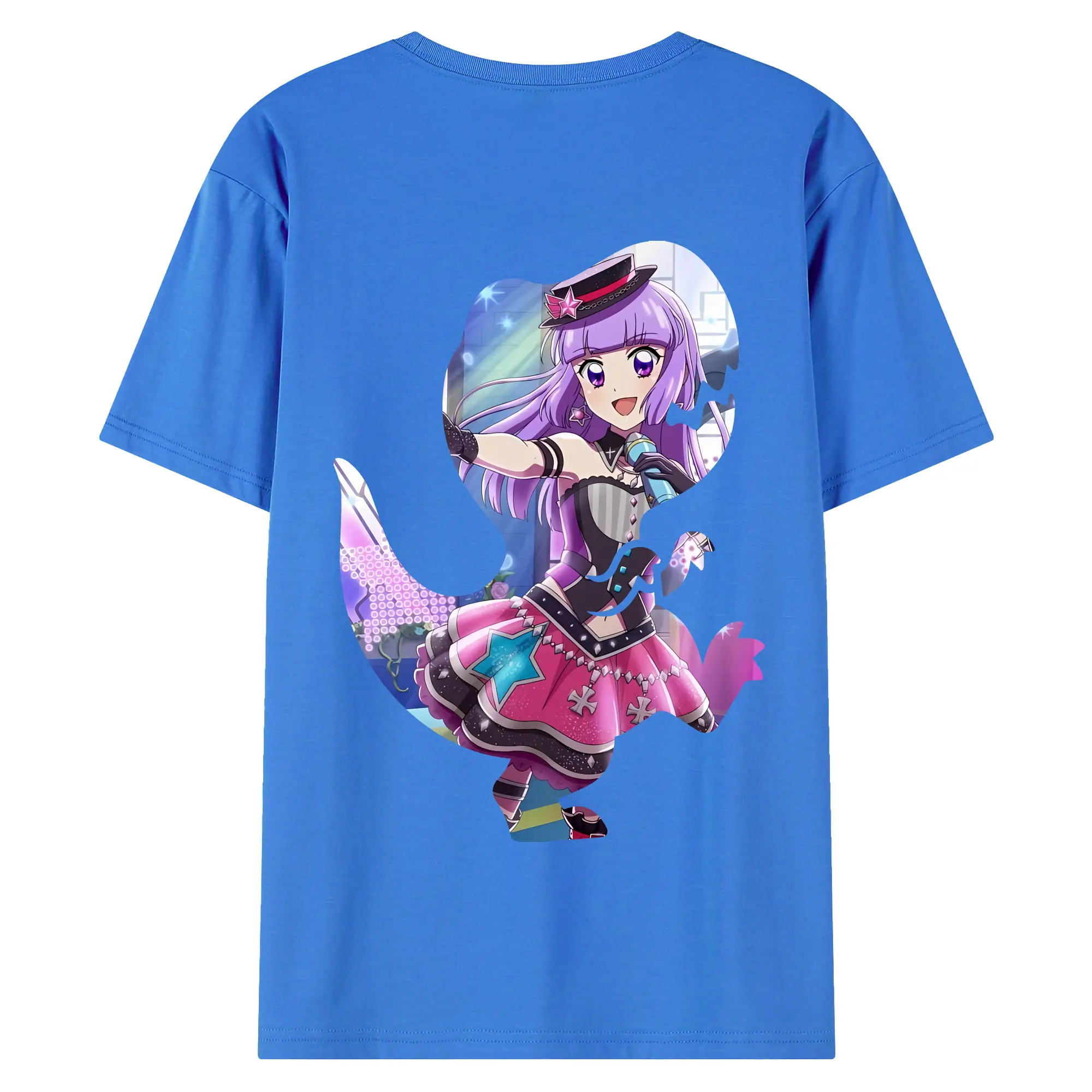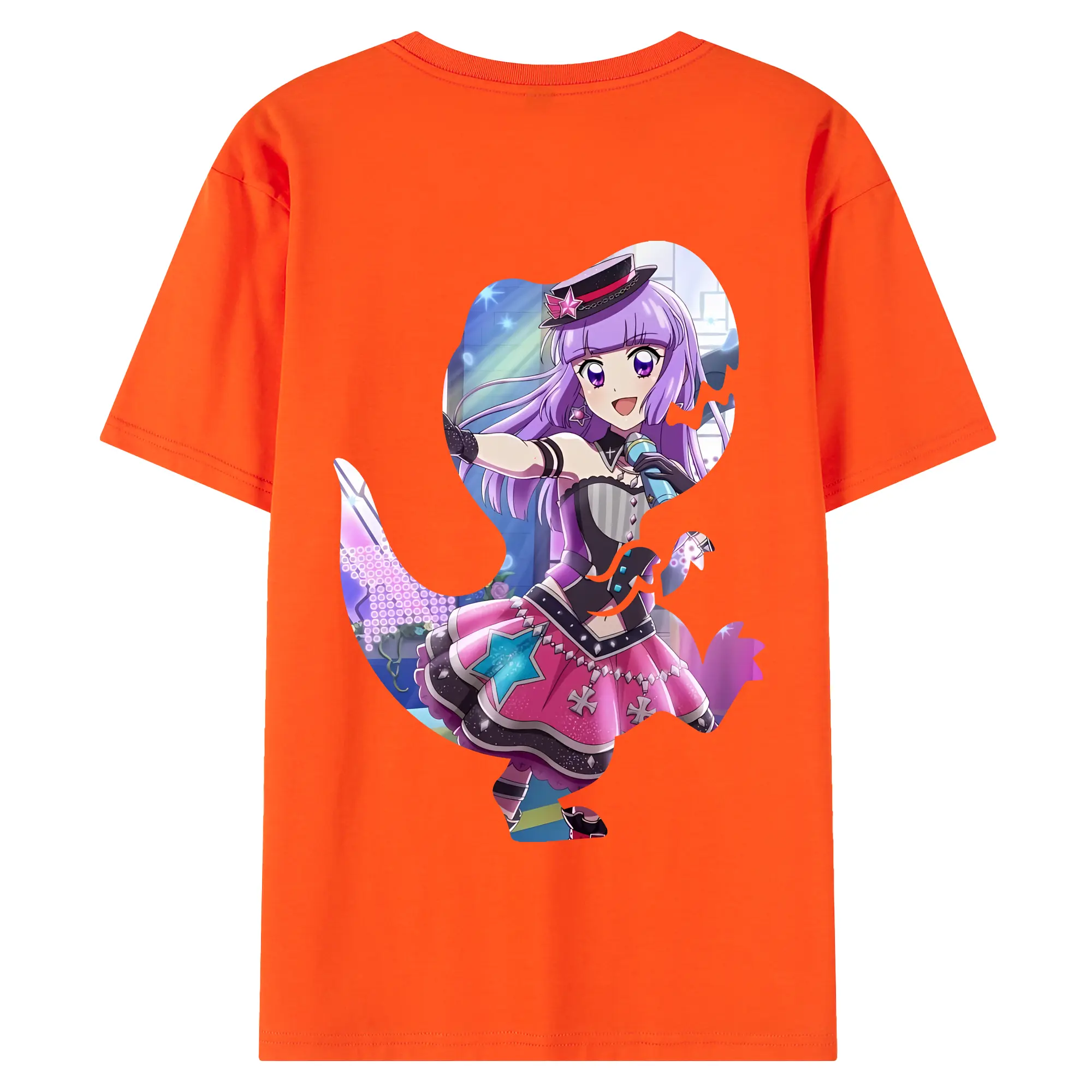 アイカツ グッズ 氷上 スミレ - 綿100% ヴィンテージ風 半袖Tシャツ ・ 背面プリント ・ 柔らか肌触り ・ 通気性 快適 ・ スポーツ カジュアル 外出用
