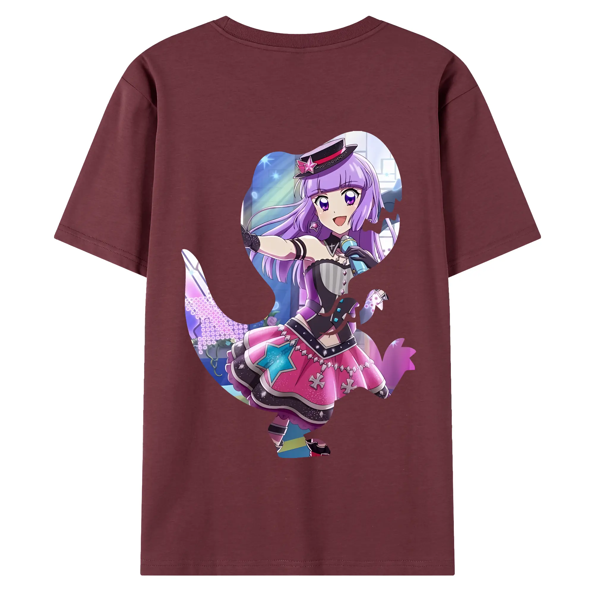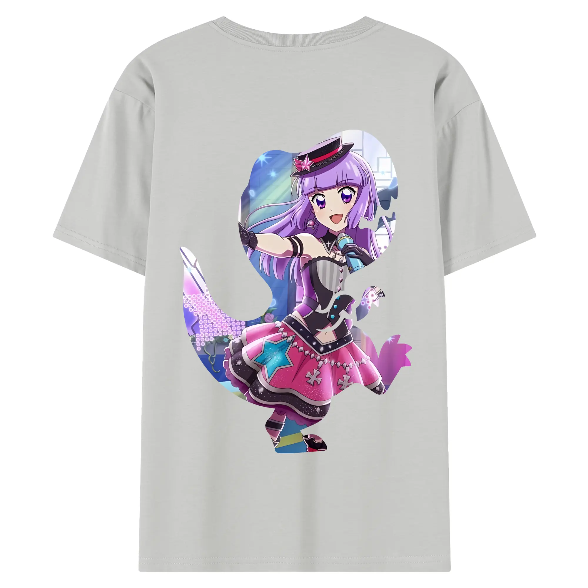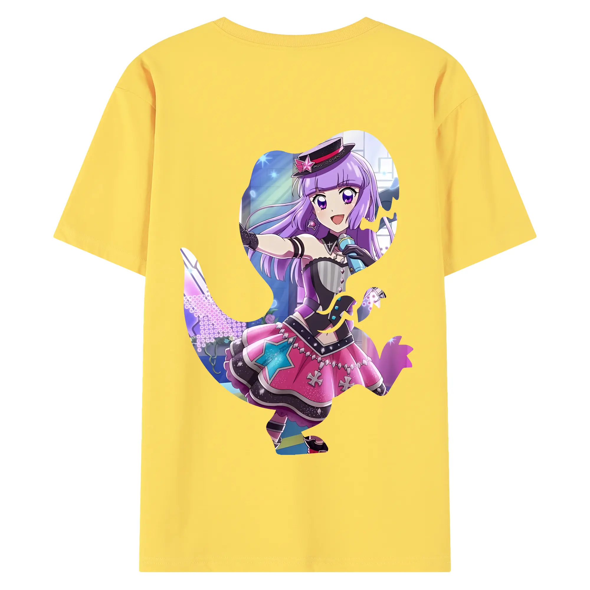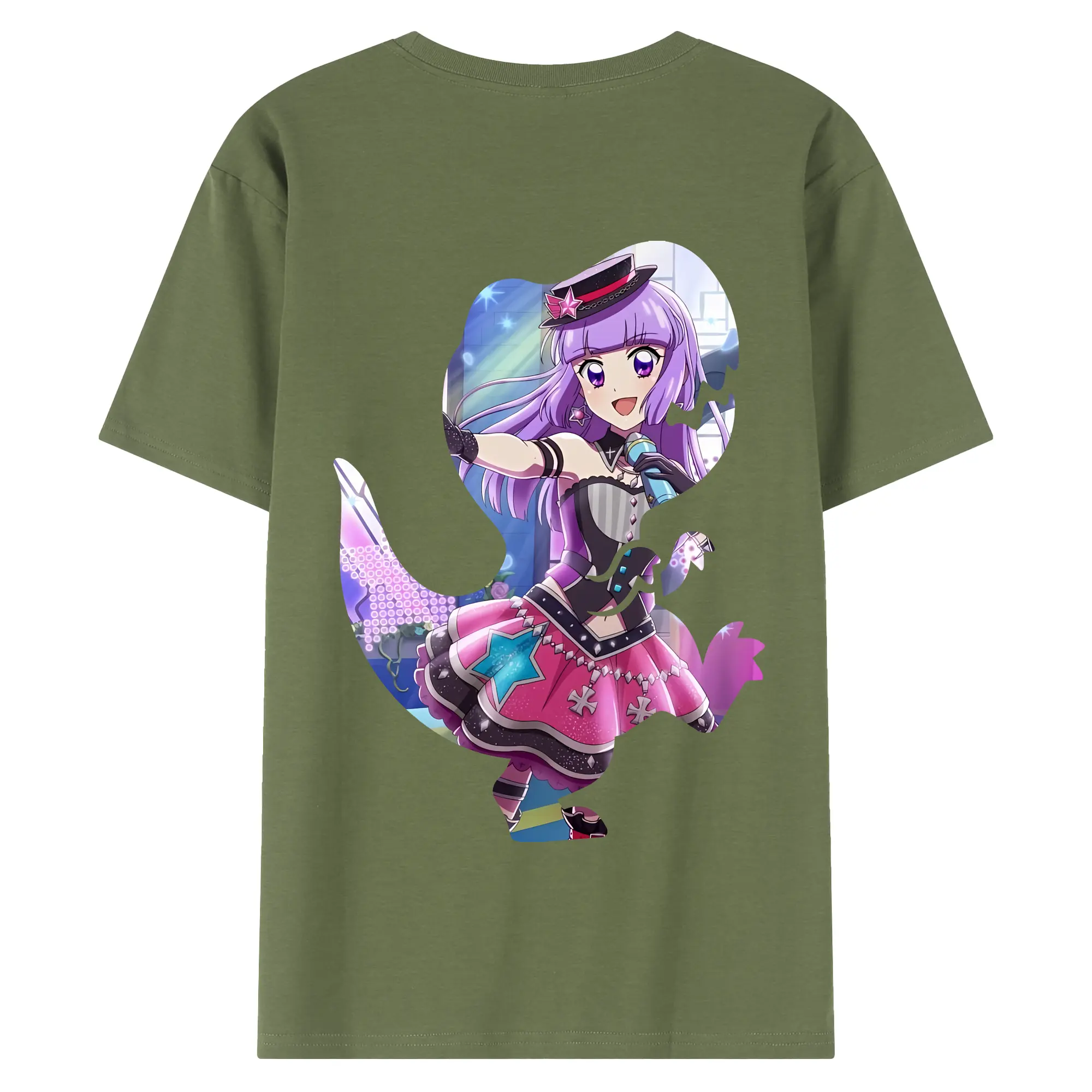 アイカツ グッズ 氷上 スミレ - 綿100% ヴィンテージ風 半袖Tシャツ ・ 背面プリント ・ 柔らか肌触り ・ 通気性 快適 ・ スポーツ カジュアル 外出用