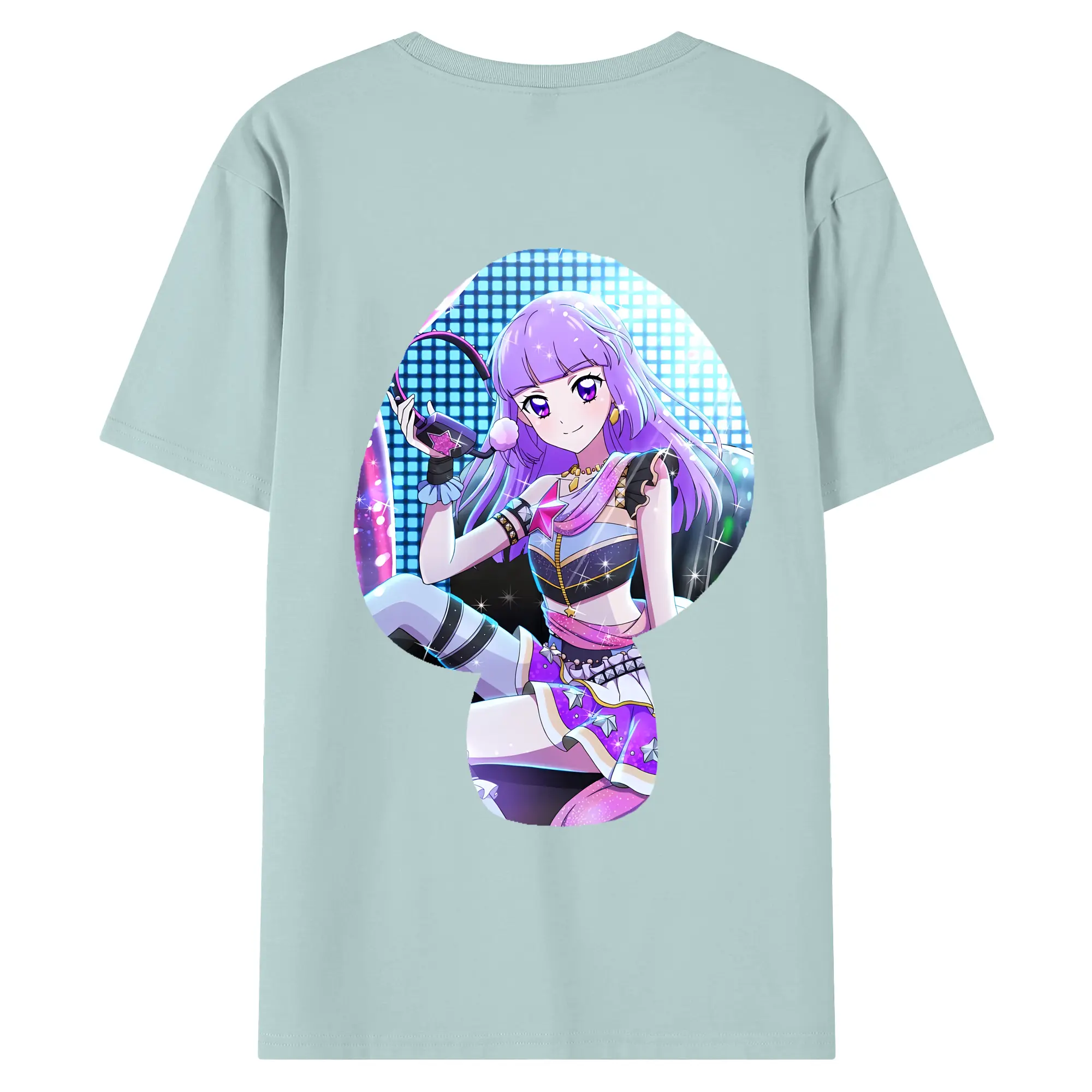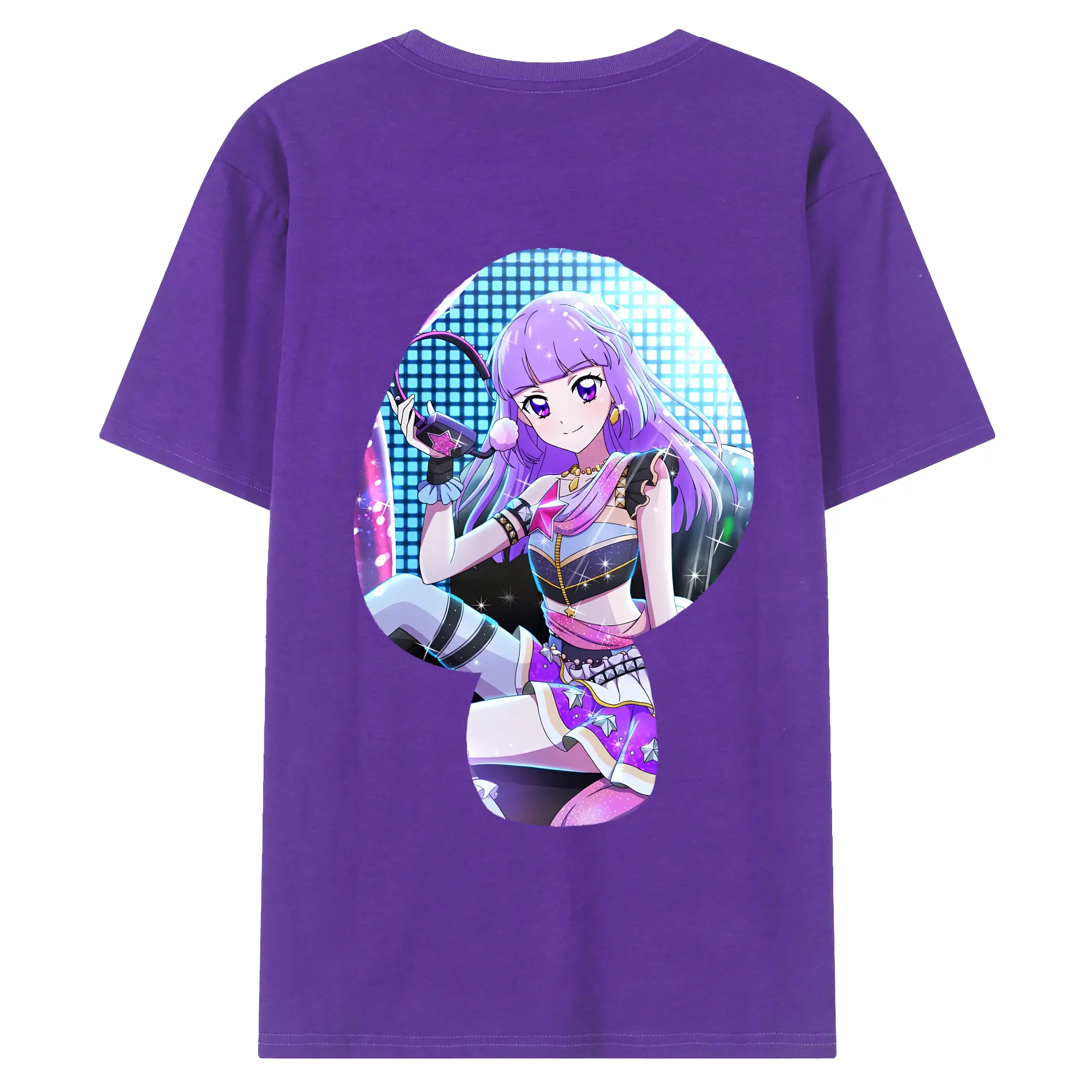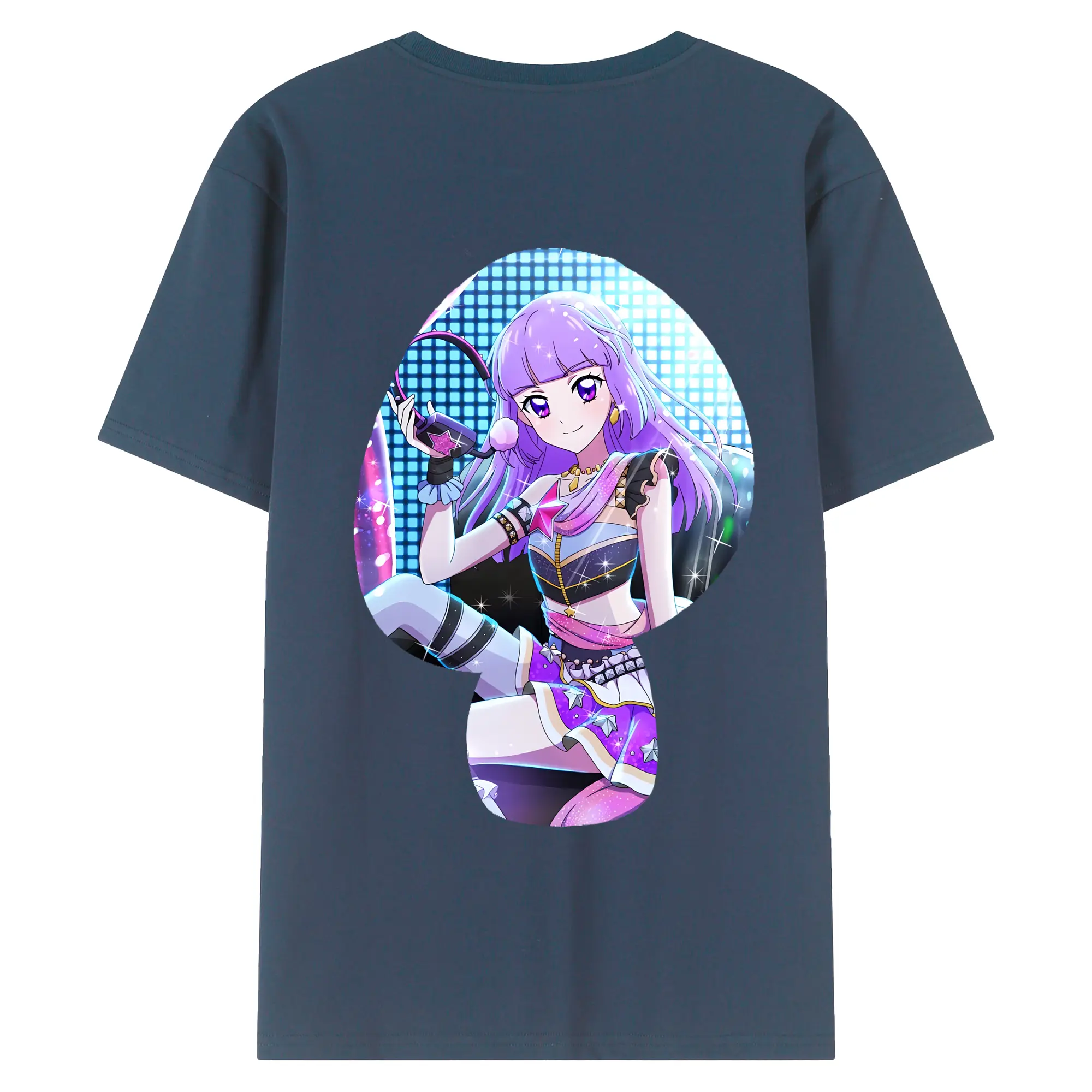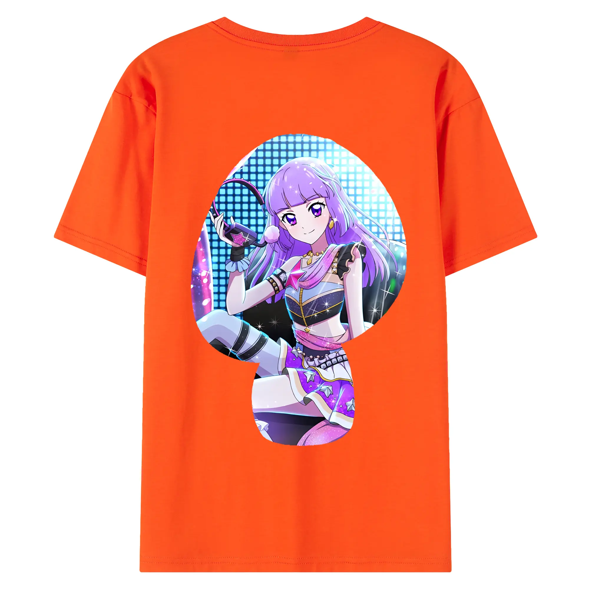 アイカツ グッズ 氷上 スミレ - 綿100% ヴィンテージ風 半袖Tシャツ ・ 背面プリント ・ 柔らか肌触り ・ 通気性 快適 ・ スポーツ カジュアル 外出用