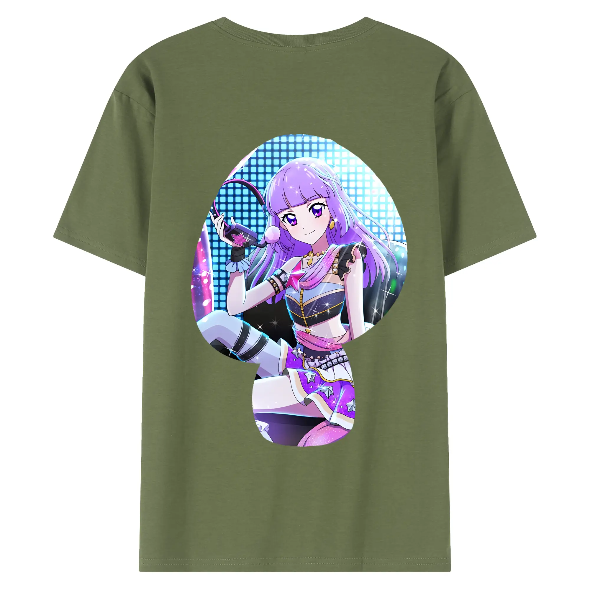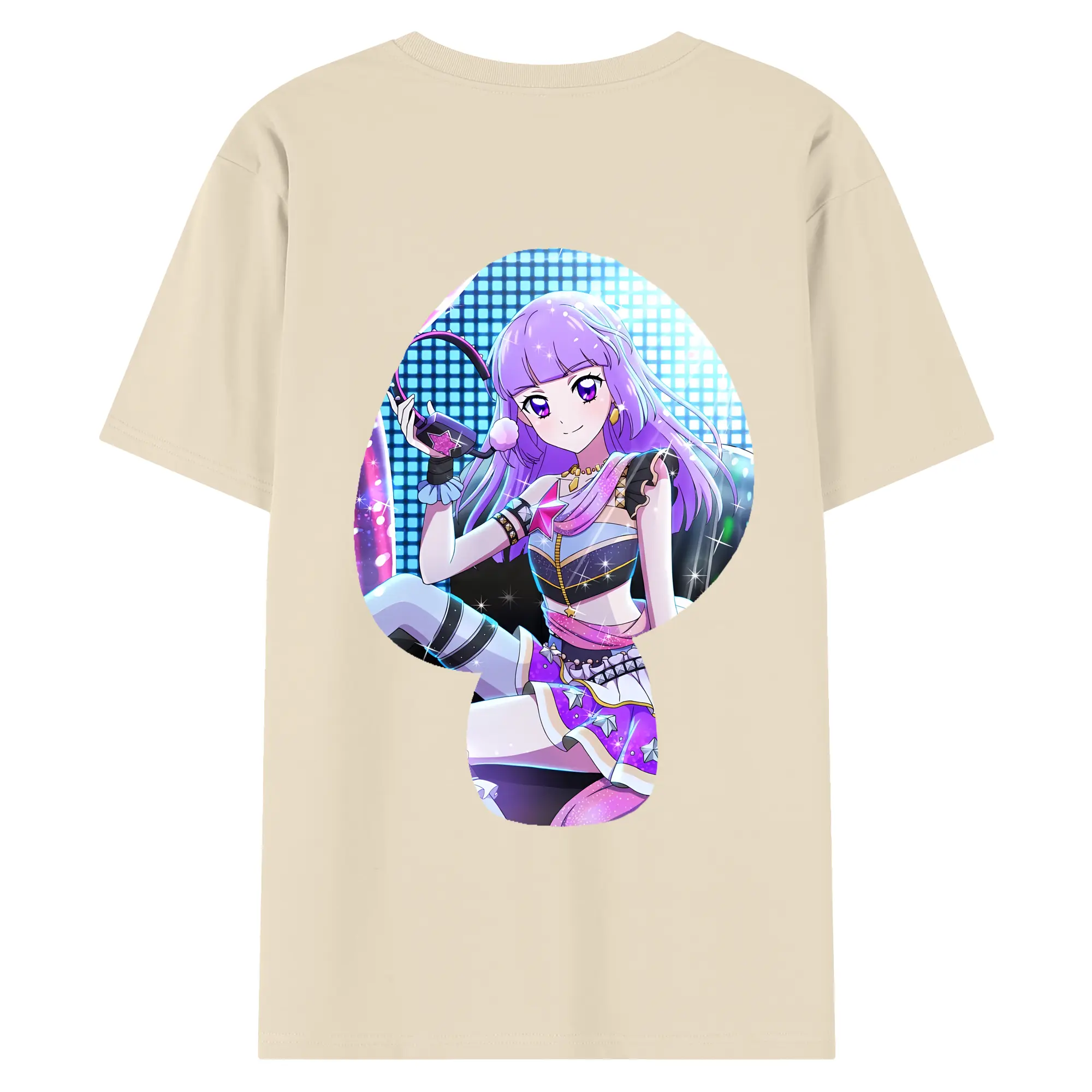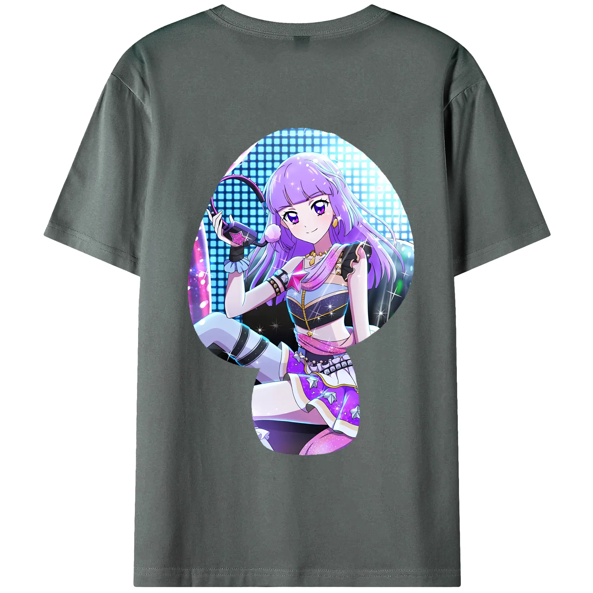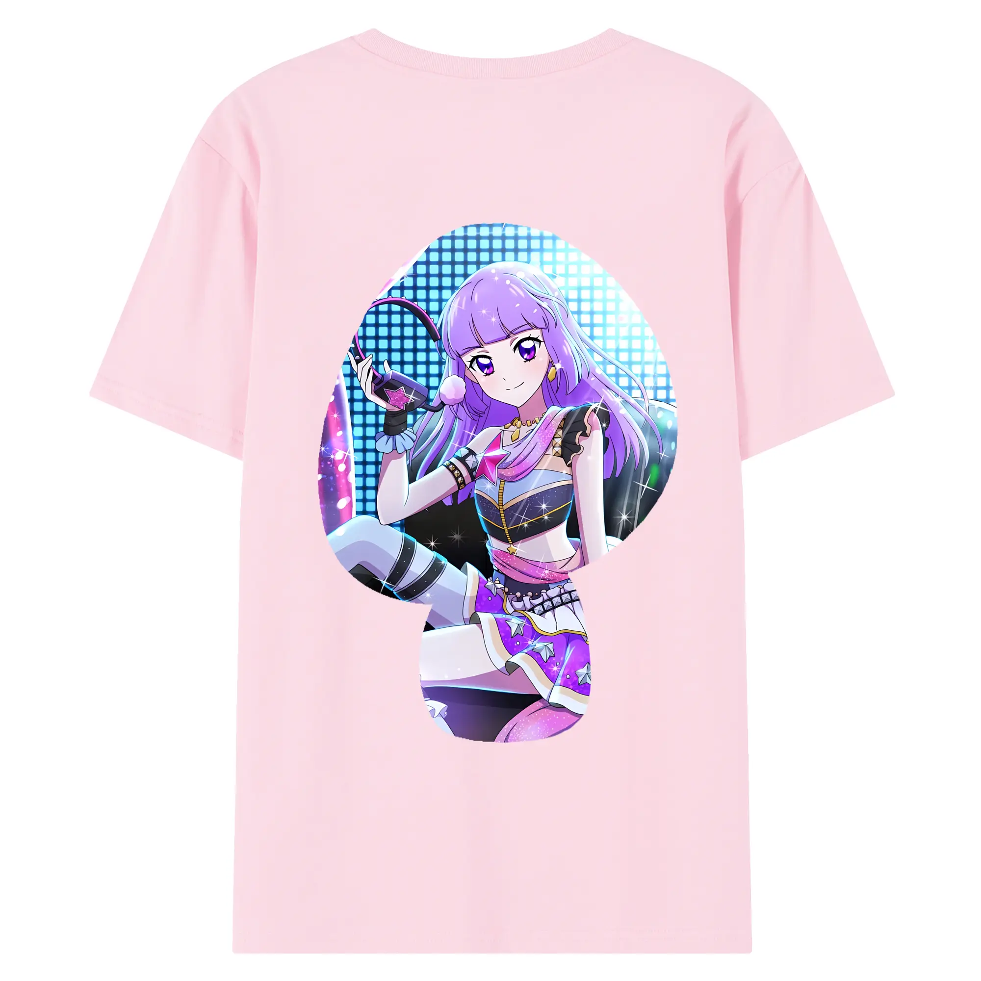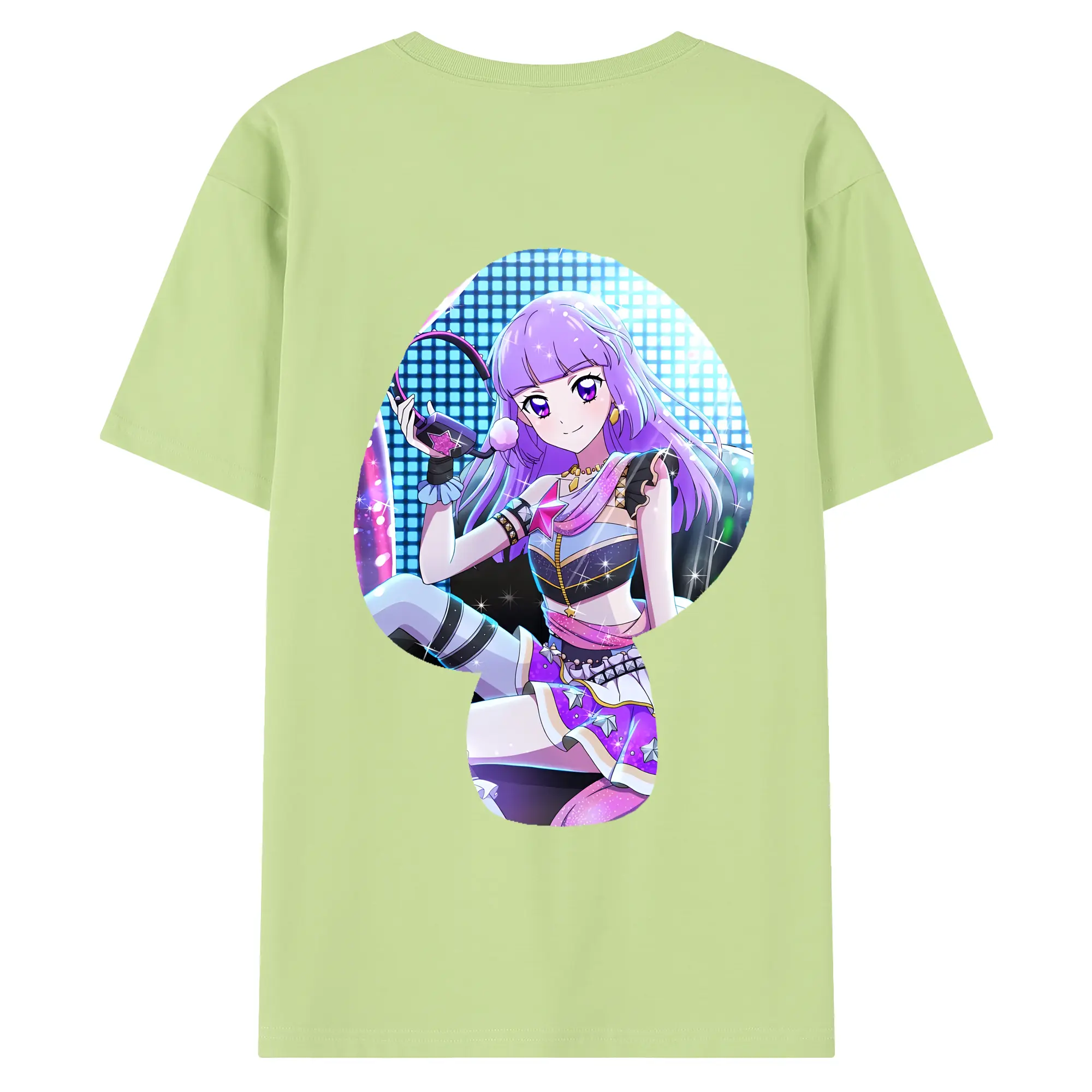 アイカツ グッズ 氷上 スミレ - 綿100% ヴィンテージ風 半袖Tシャツ ・ 背面プリント ・ 柔らか肌触り ・ 通気性 快適 ・ スポーツ カジュアル 外出用
