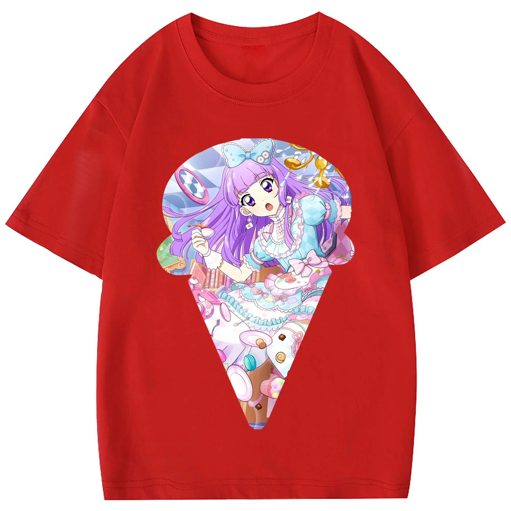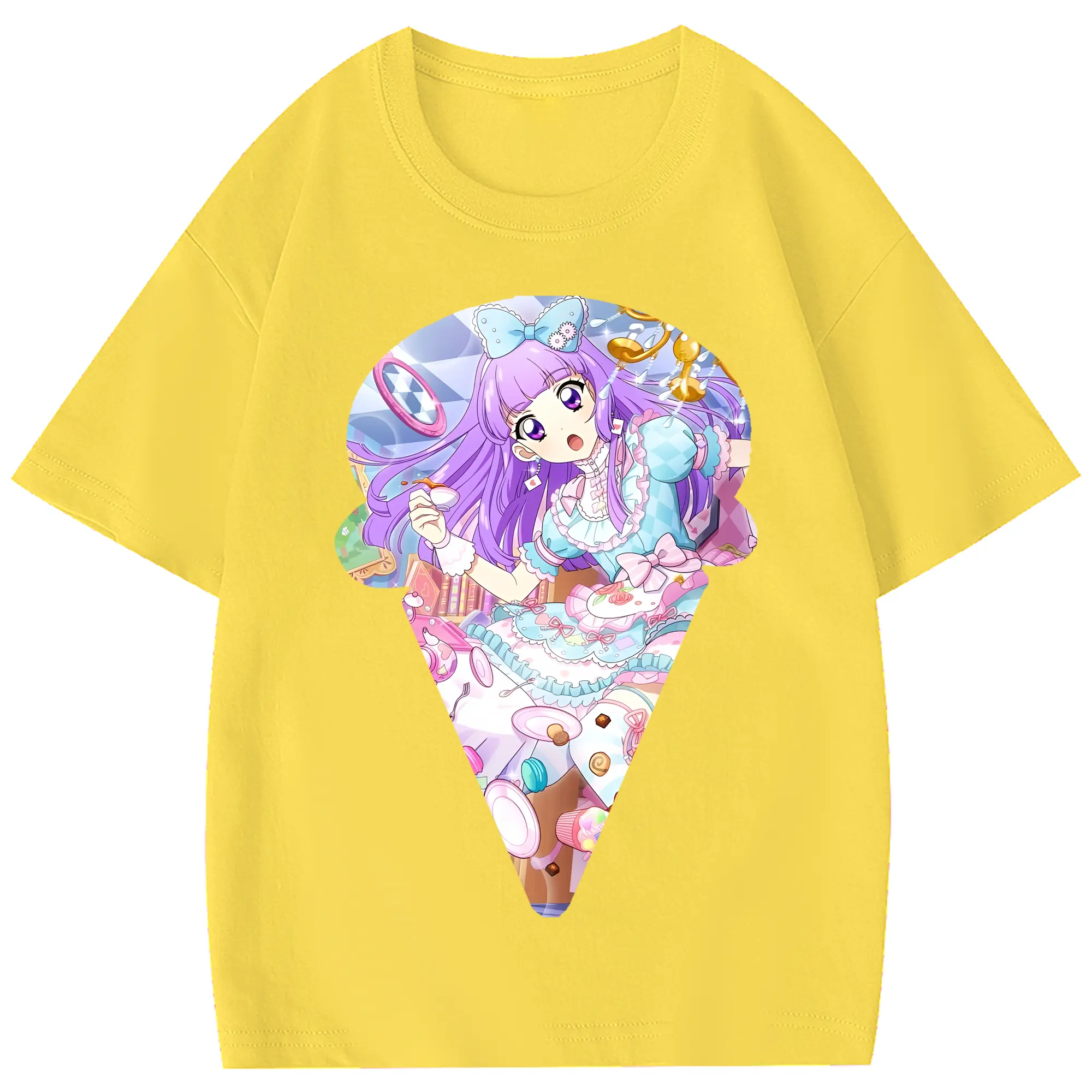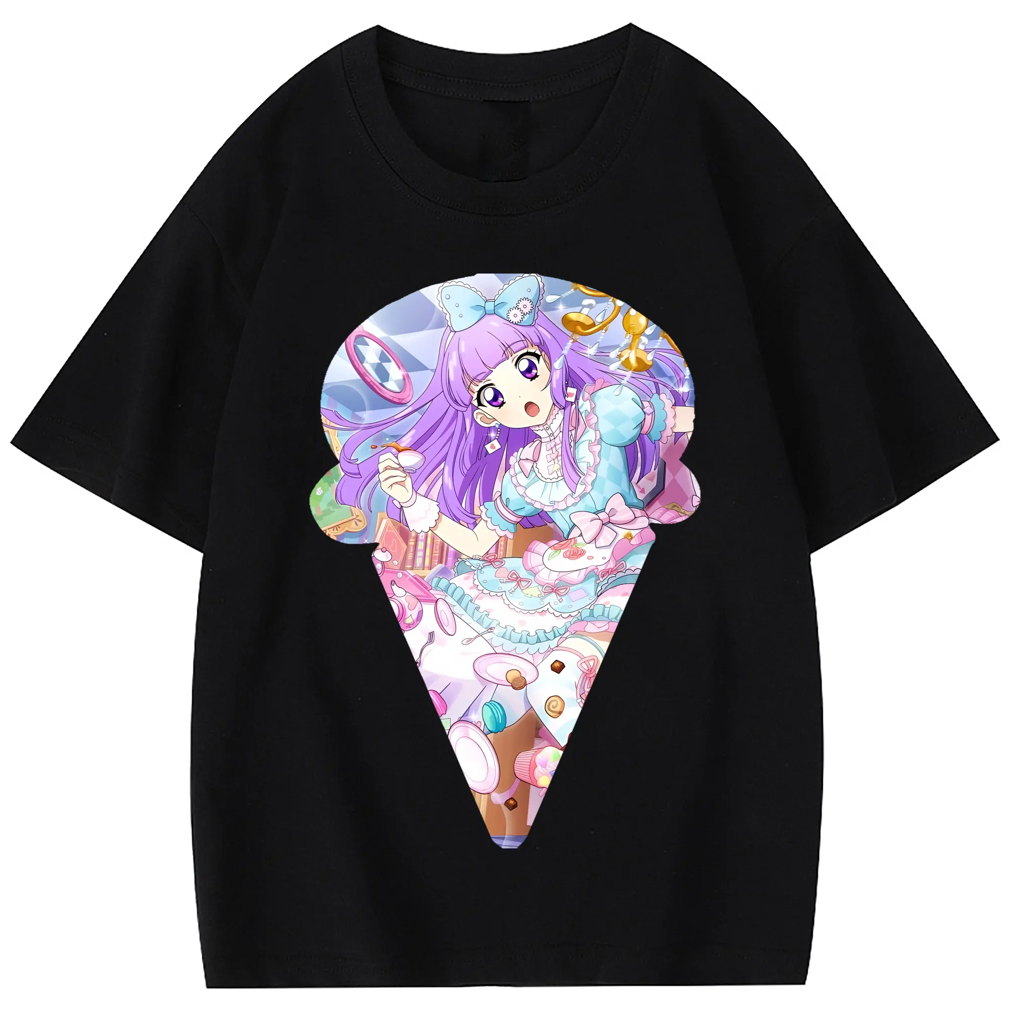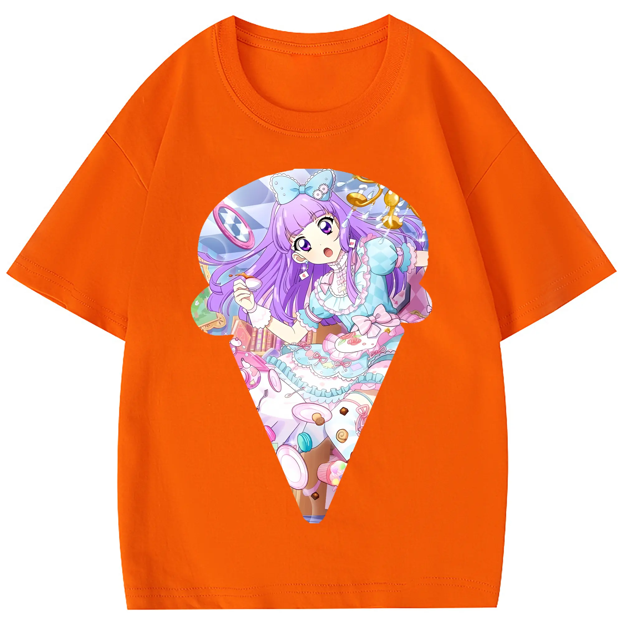 アイカツ グッズ 氷上 スミレ - 綿100% ヴィンテージ風 半袖Tシャツ ・ フロントプリント ・ 柔らか肌触り ・ 通気性 快適 ・ スポーツ カジュアル 外出用