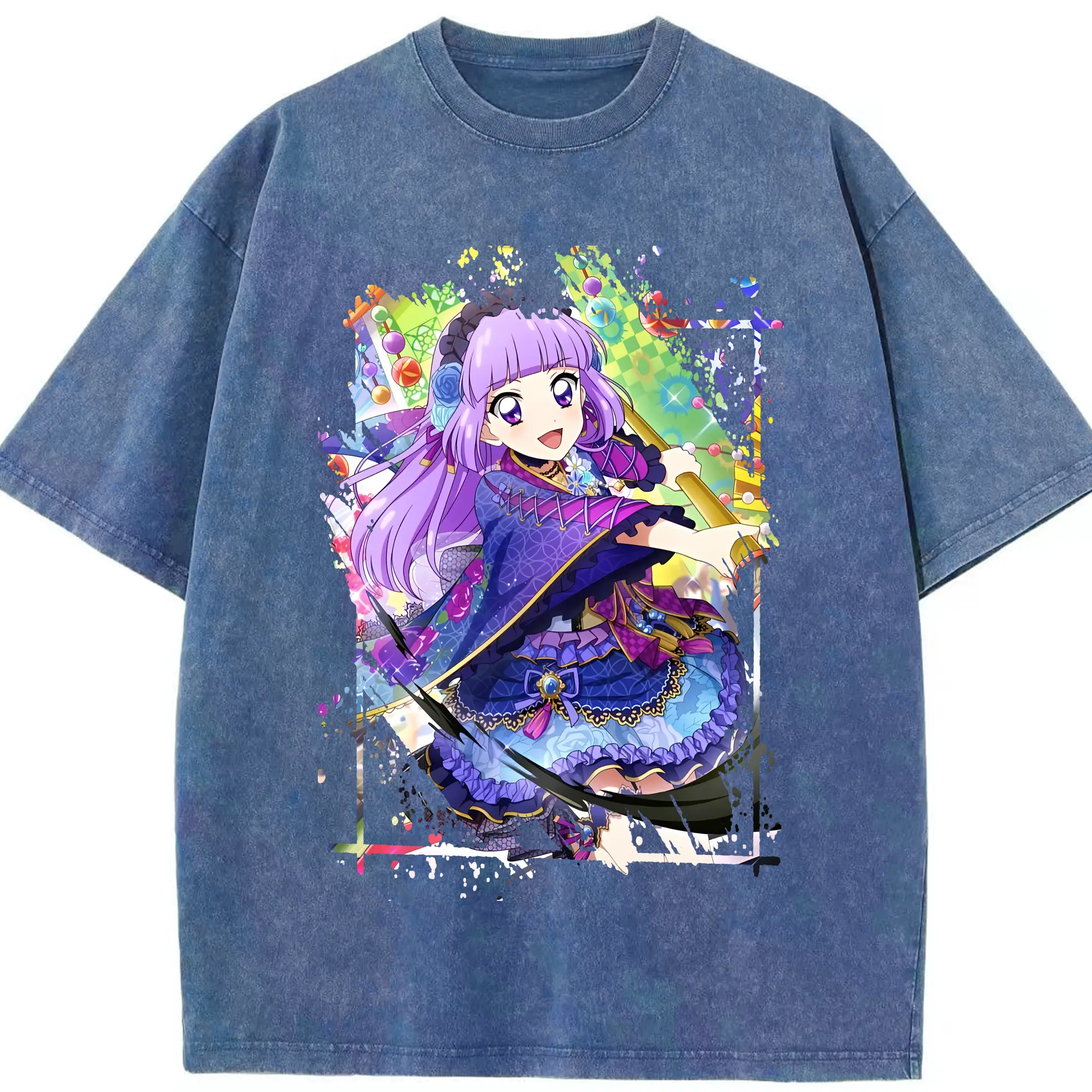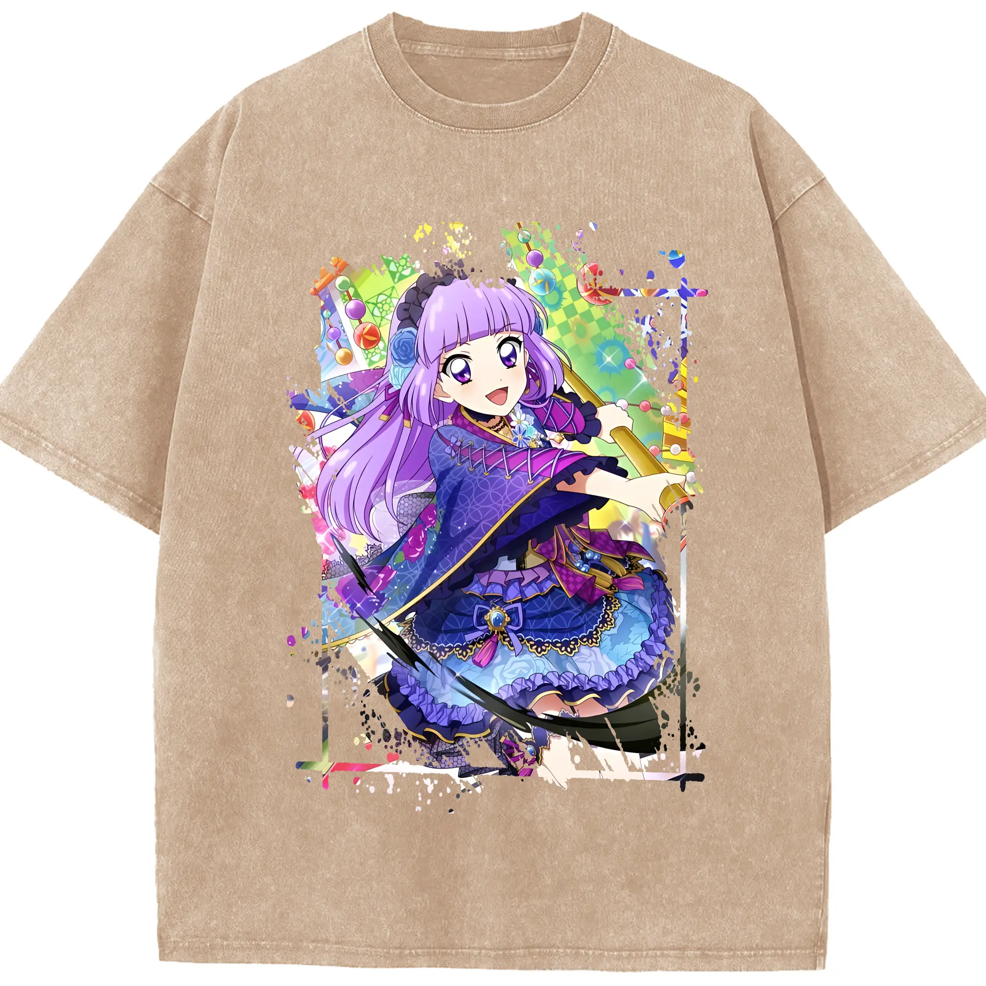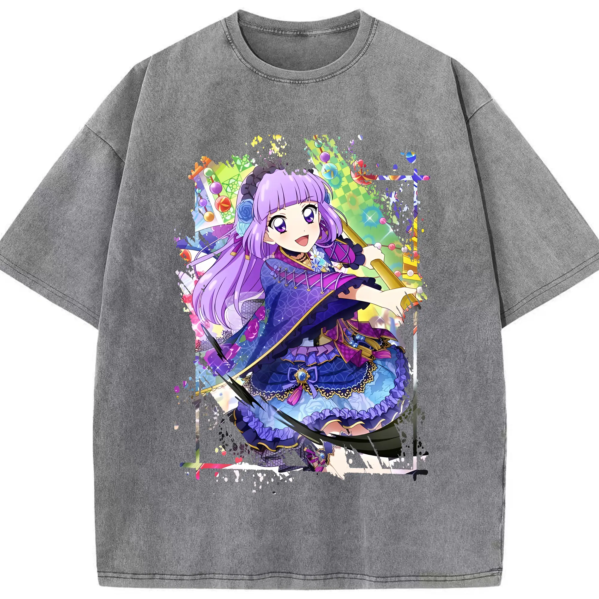 アイカツ グッズ 氷上 スミレ - 綿100% ヴィンテージ風 半袖Tシャツ ・ 背面プリント ・ 柔らか肌触り ・ 通気性 快適 ・ スポーツ カジュアル 外出用
