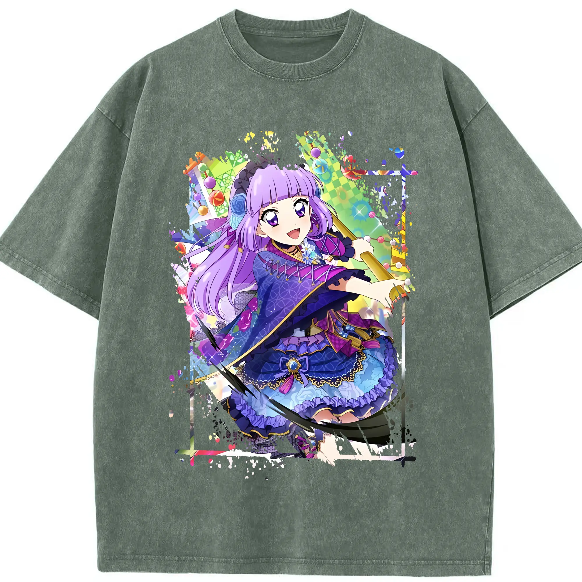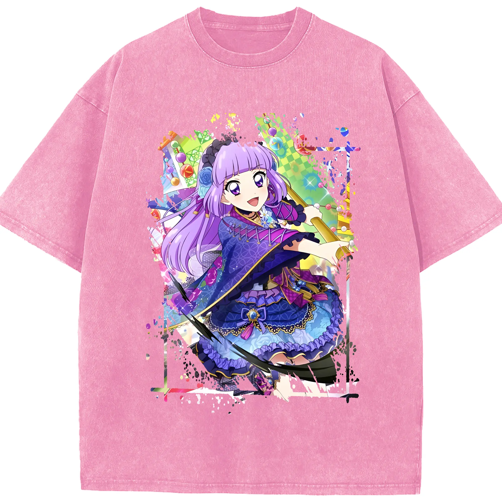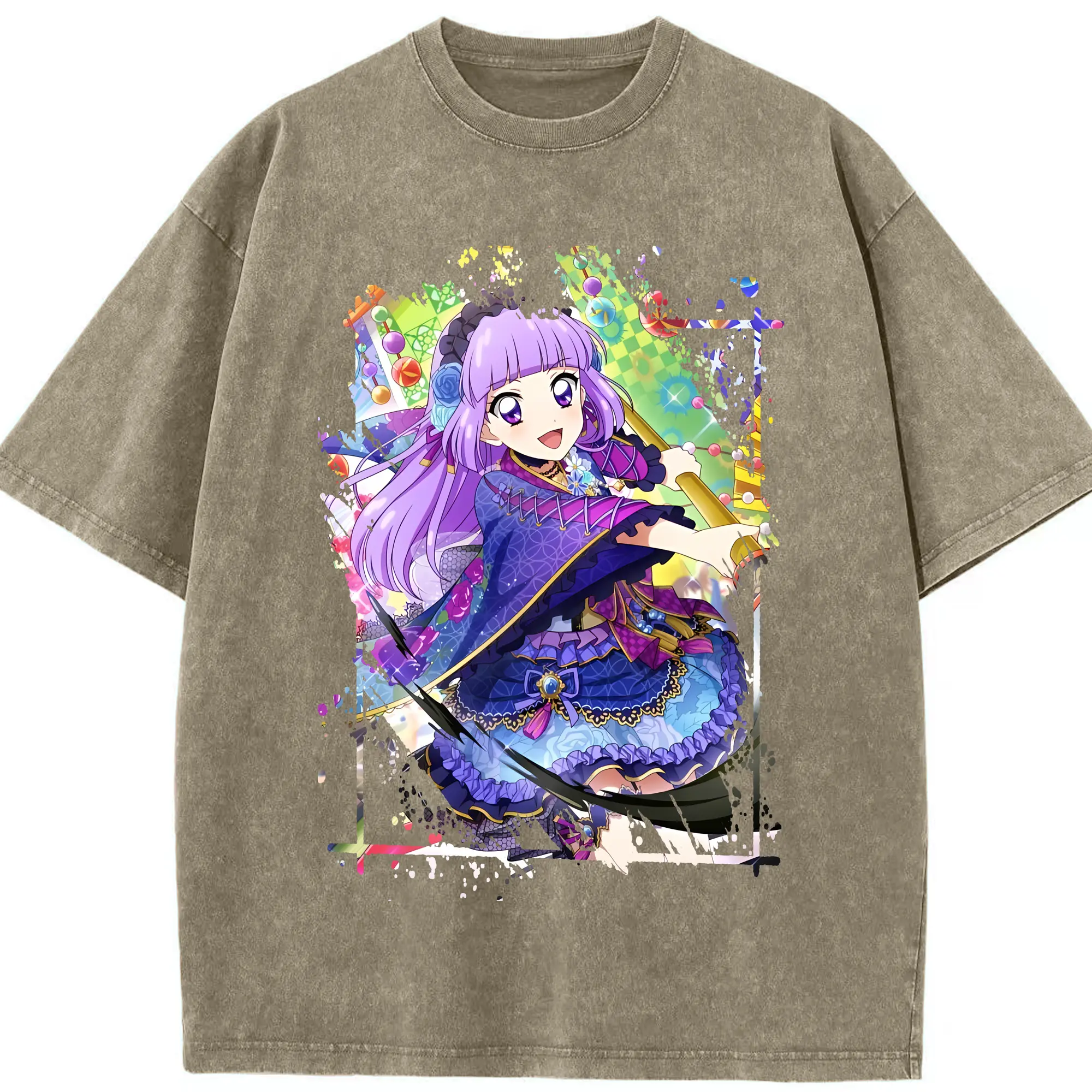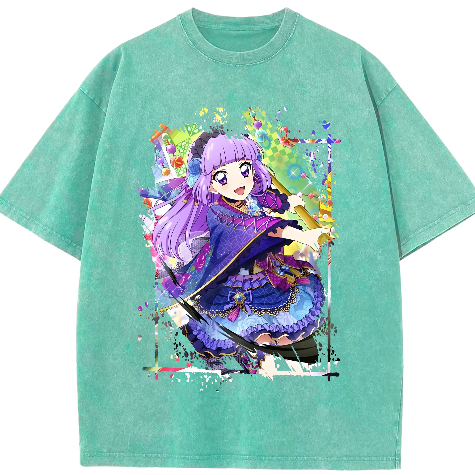 アイカツ グッズ 氷上 スミレ - 綿100% ヴィンテージ風 半袖Tシャツ ・ 背面プリント ・ 柔らか肌触り ・ 通気性 快適 ・ スポーツ カジュアル 外出用