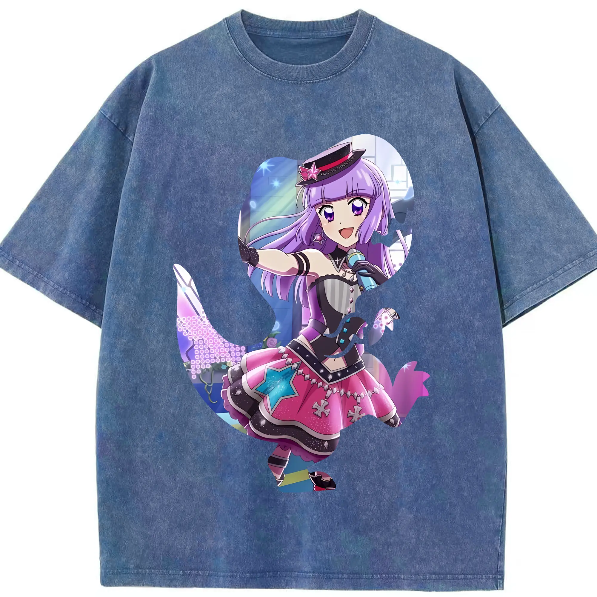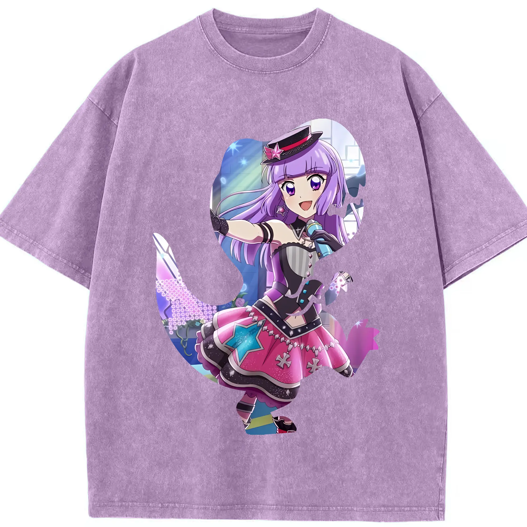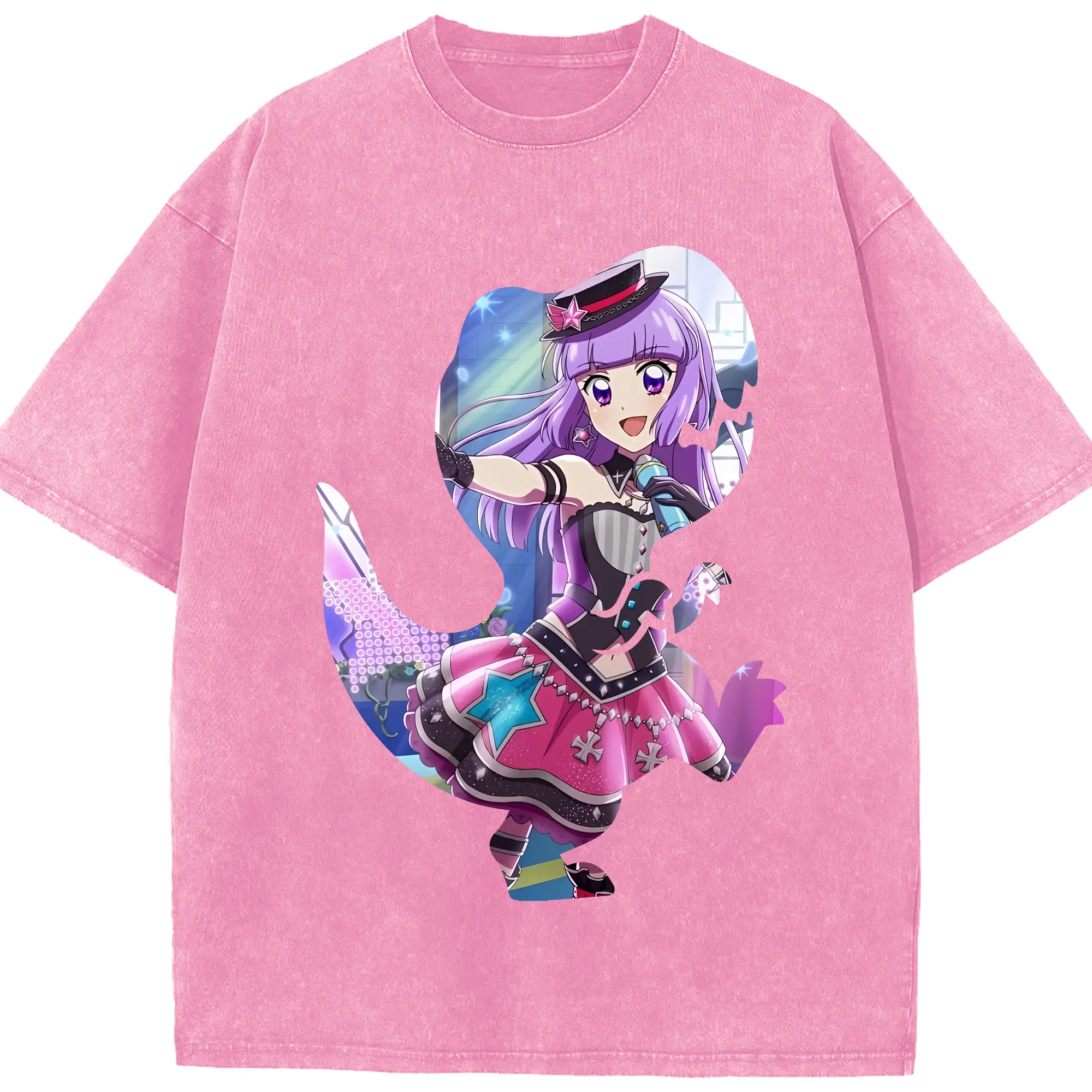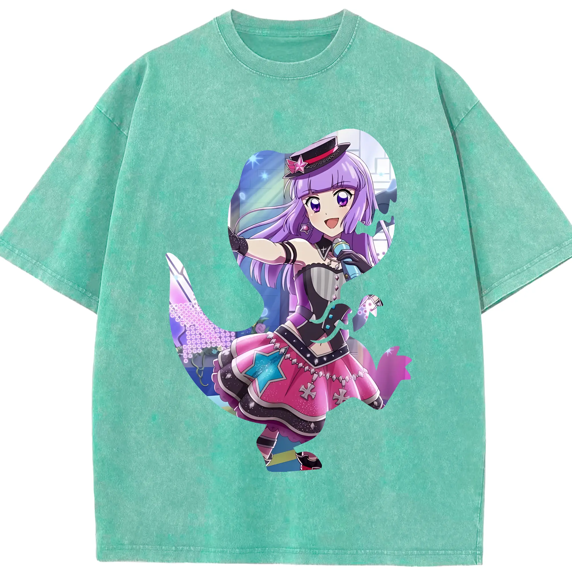 アイカツ グッズ 氷上 スミレ - 綿100% ヴィンテージ風 半袖Tシャツ ・ 背面プリント ・ 柔らか肌触り ・ 通気性 快適 ・ スポーツ カジュアル 外出用