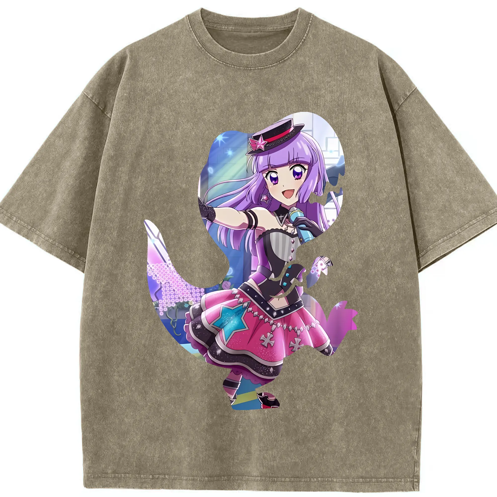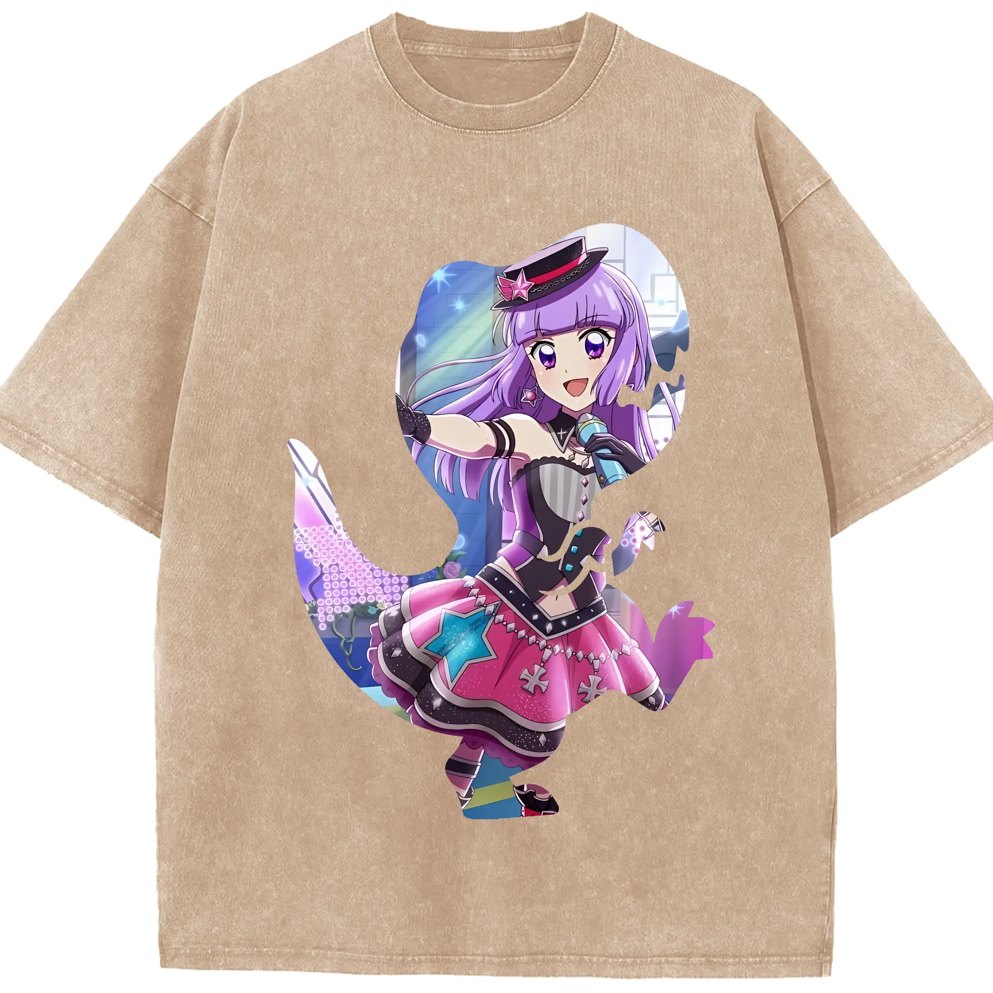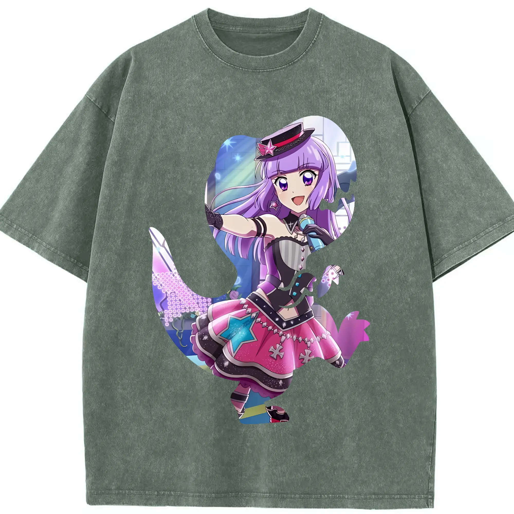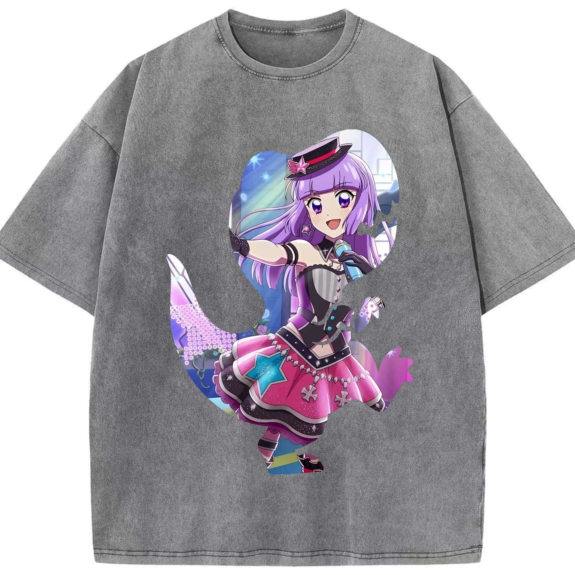 アイカツ グッズ 氷上 スミレ - 綿100% ヴィンテージ風 半袖Tシャツ ・ 背面プリント ・ 柔らか肌触り ・ 通気性 快適 ・ スポーツ カジュアル 外出用
