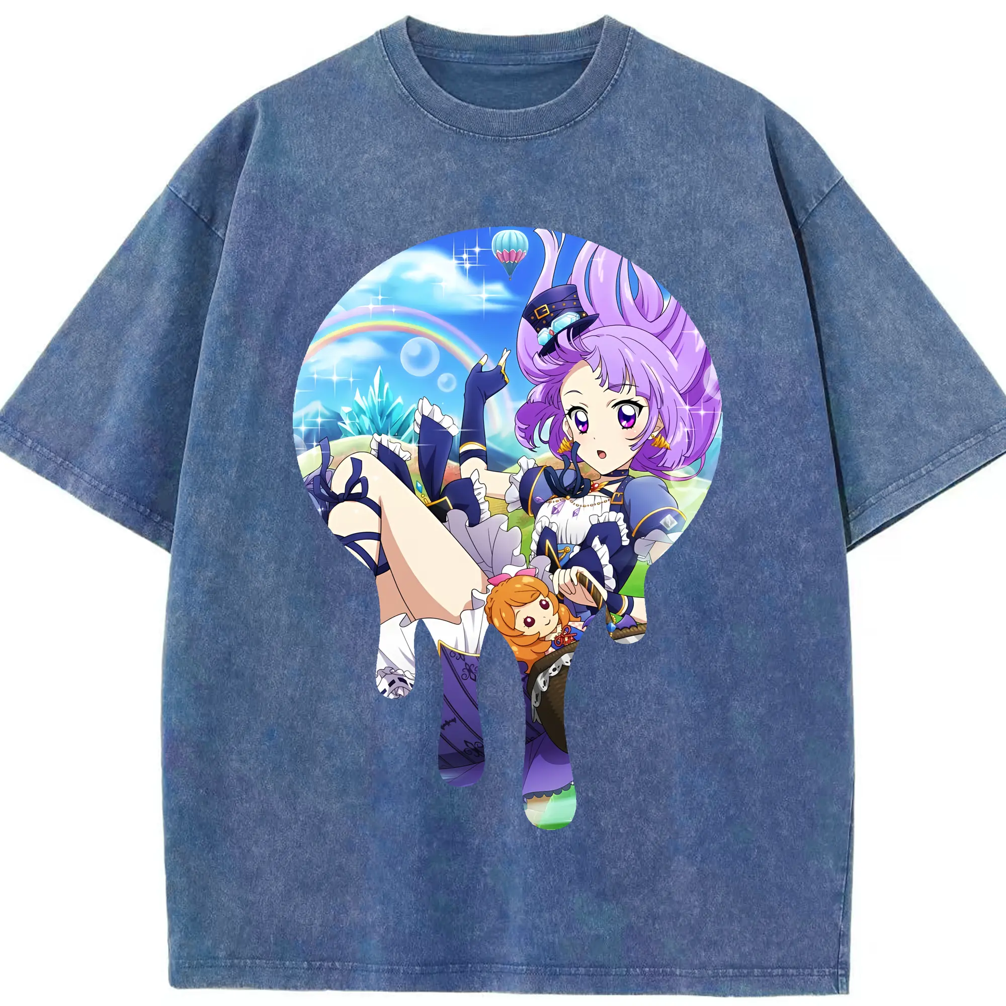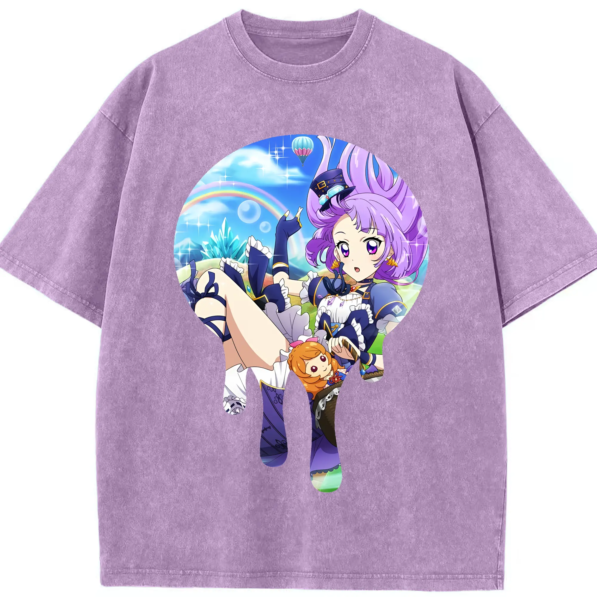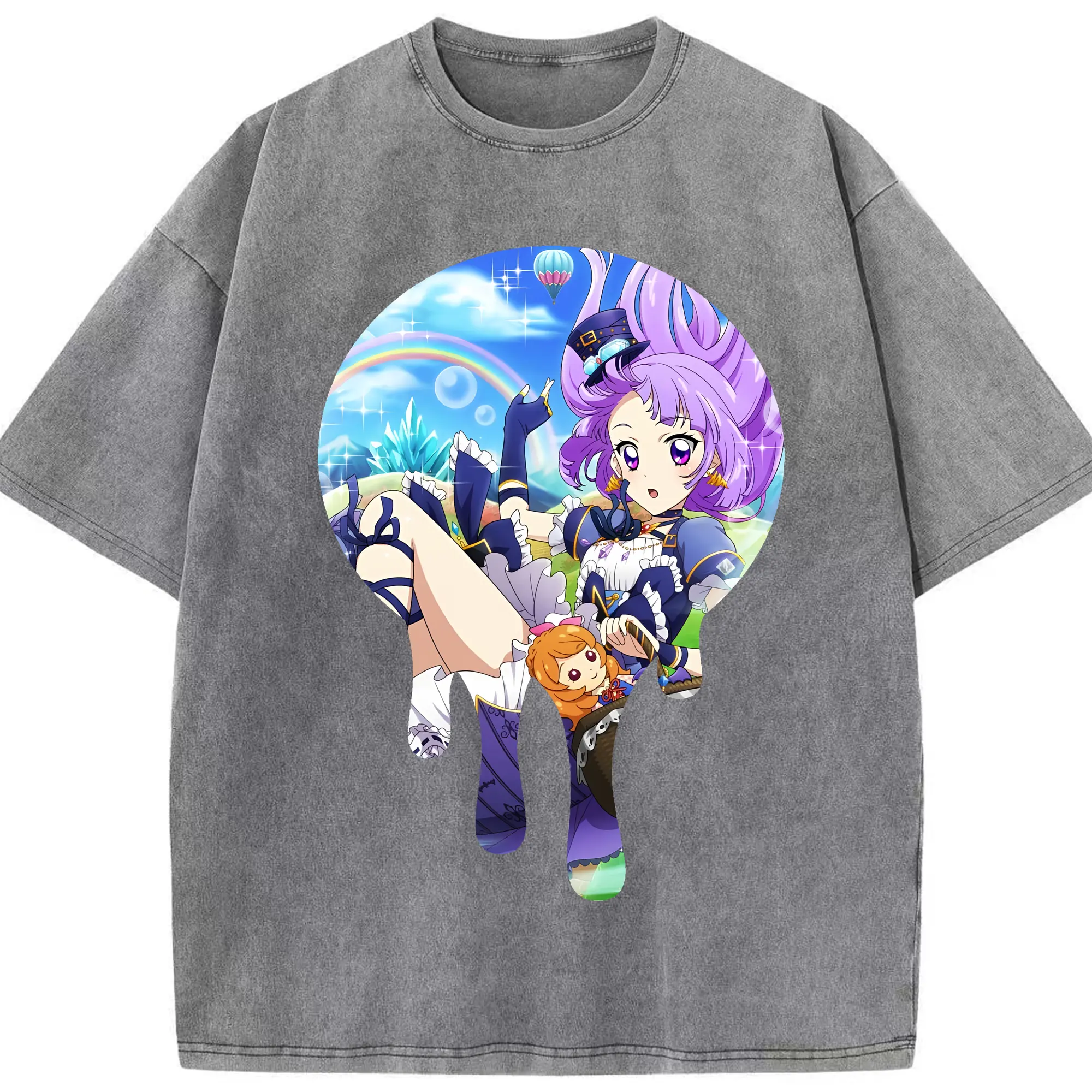 アイカツ グッズ 氷上 スミレ - 綿100% ヴィンテージ風 半袖Tシャツ ・ 背面プリント ・ 柔らか肌触り ・ 通気性 快適 ・ スポーツ カジュアル 外出用