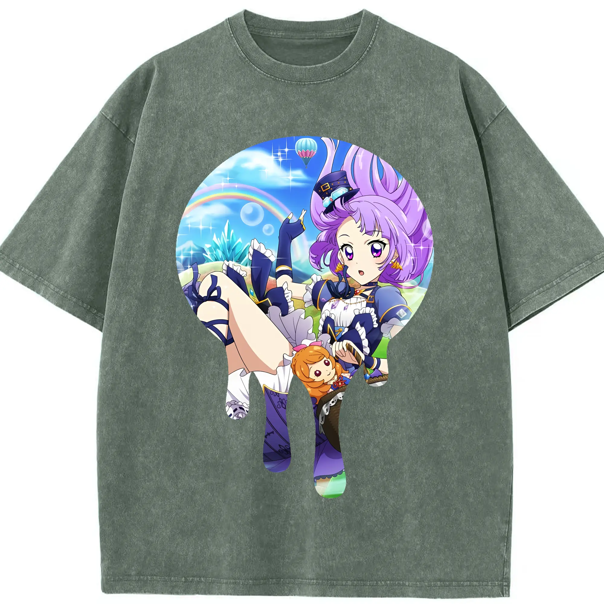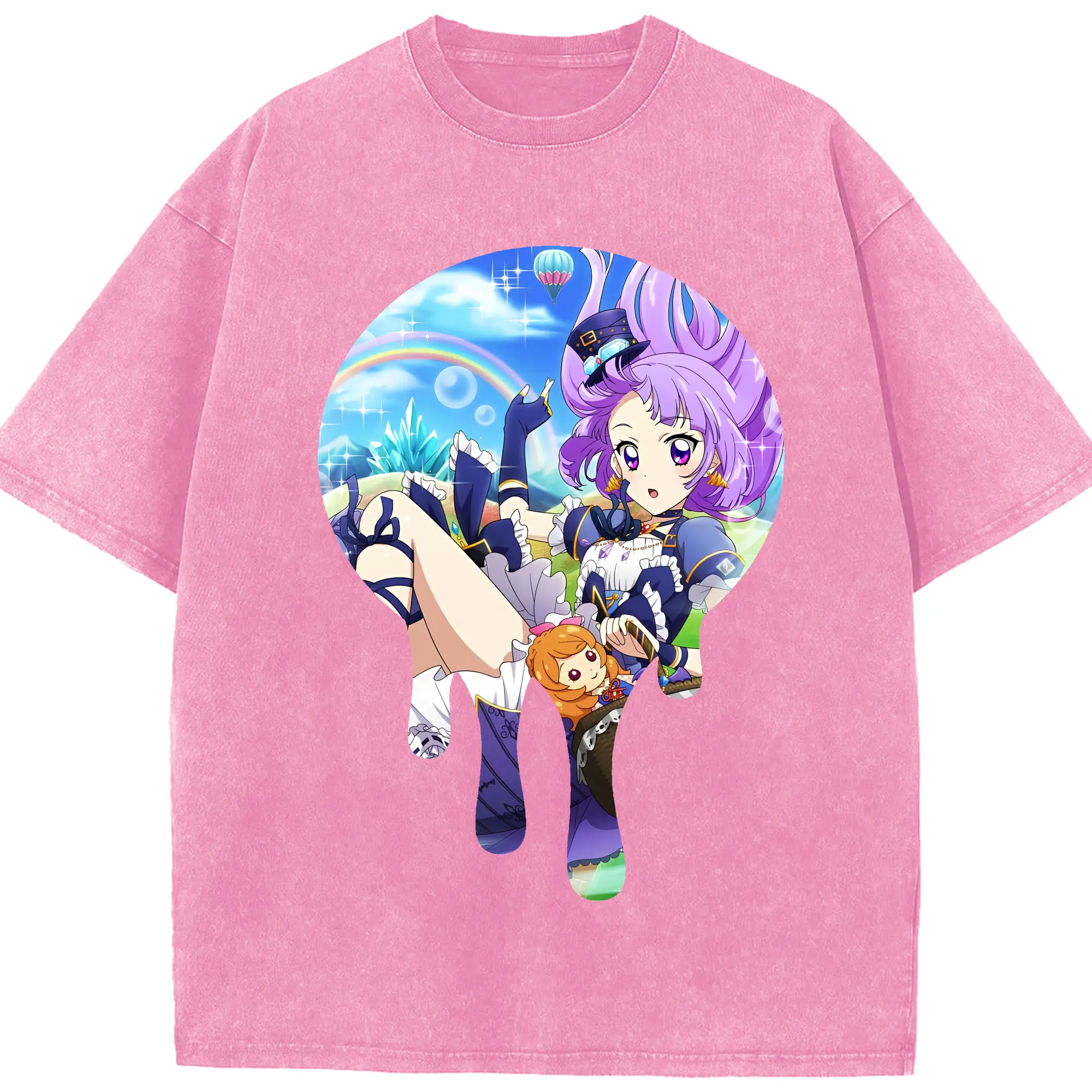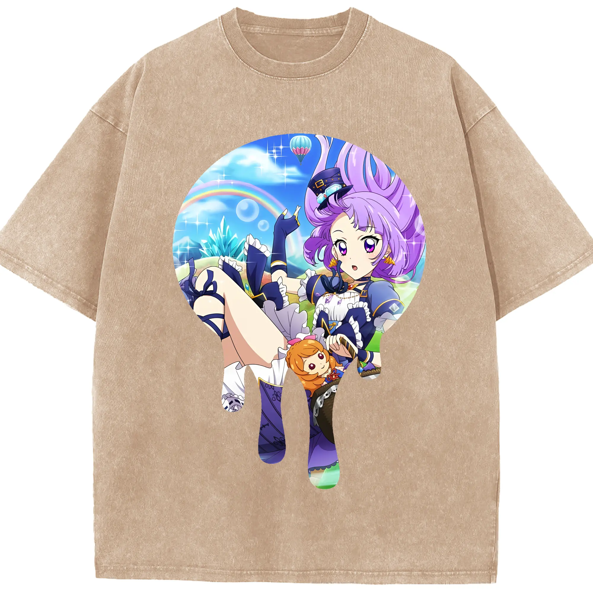 アイカツ グッズ 氷上 スミレ - 綿100% ヴィンテージ風 半袖Tシャツ ・ 背面プリント ・ 柔らか肌触り ・ 通気性 快適 ・ スポーツ カジュアル 外出用