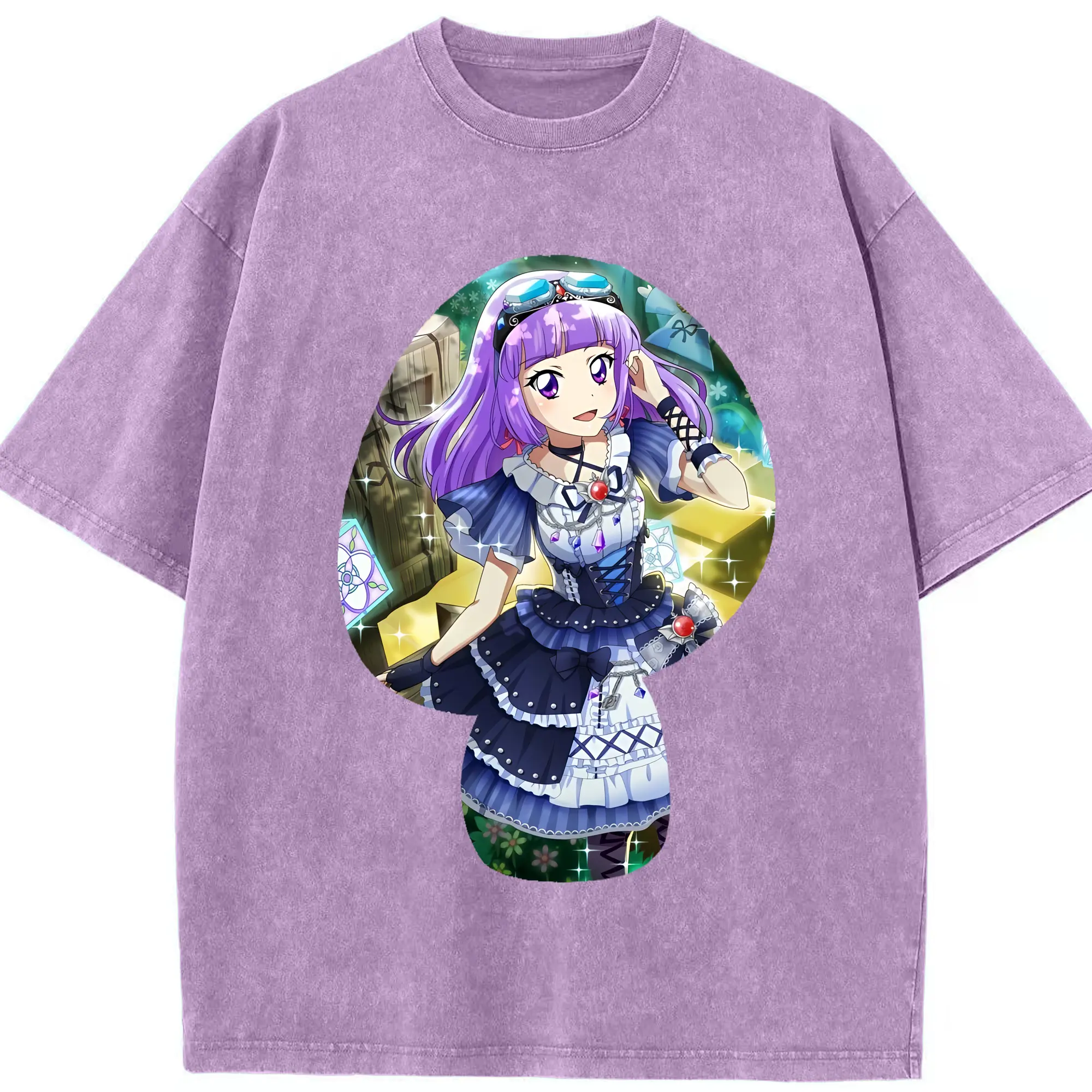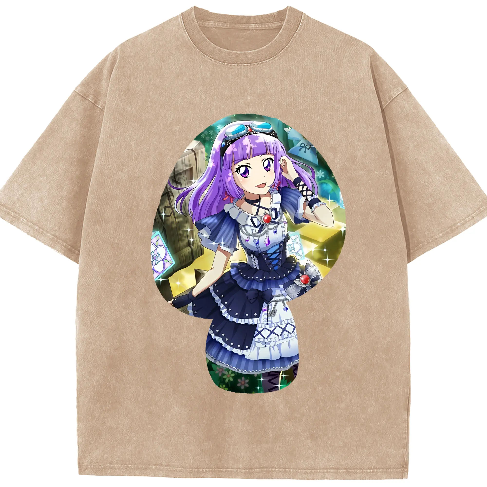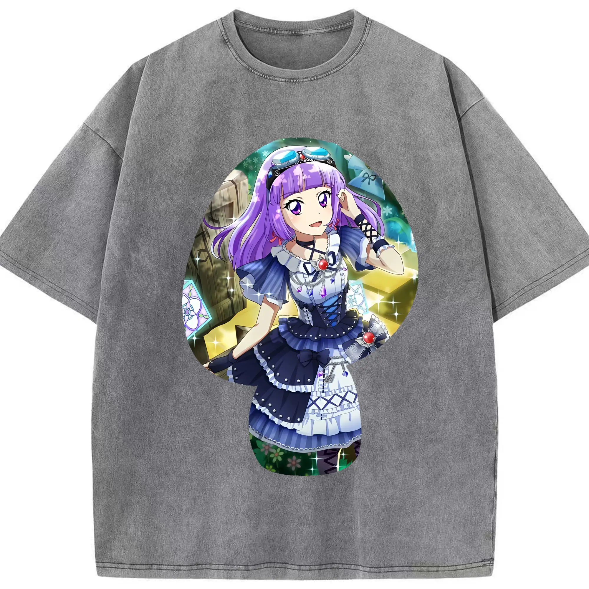 アイカツ グッズ 氷上 スミレ - 綿100% ヴィンテージ風 半袖Tシャツ ・ 背面プリント ・ 柔らか肌触り ・ 通気性 快適 ・ スポーツ カジュアル 外出用