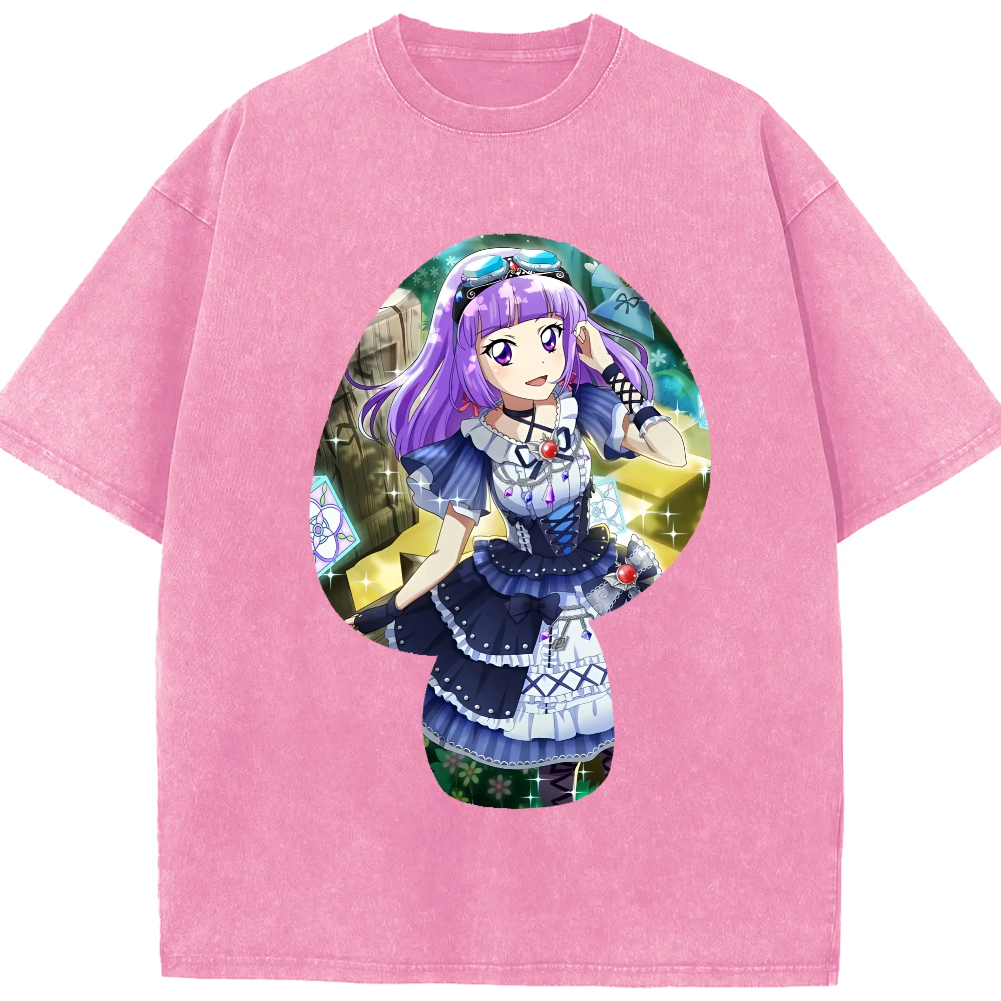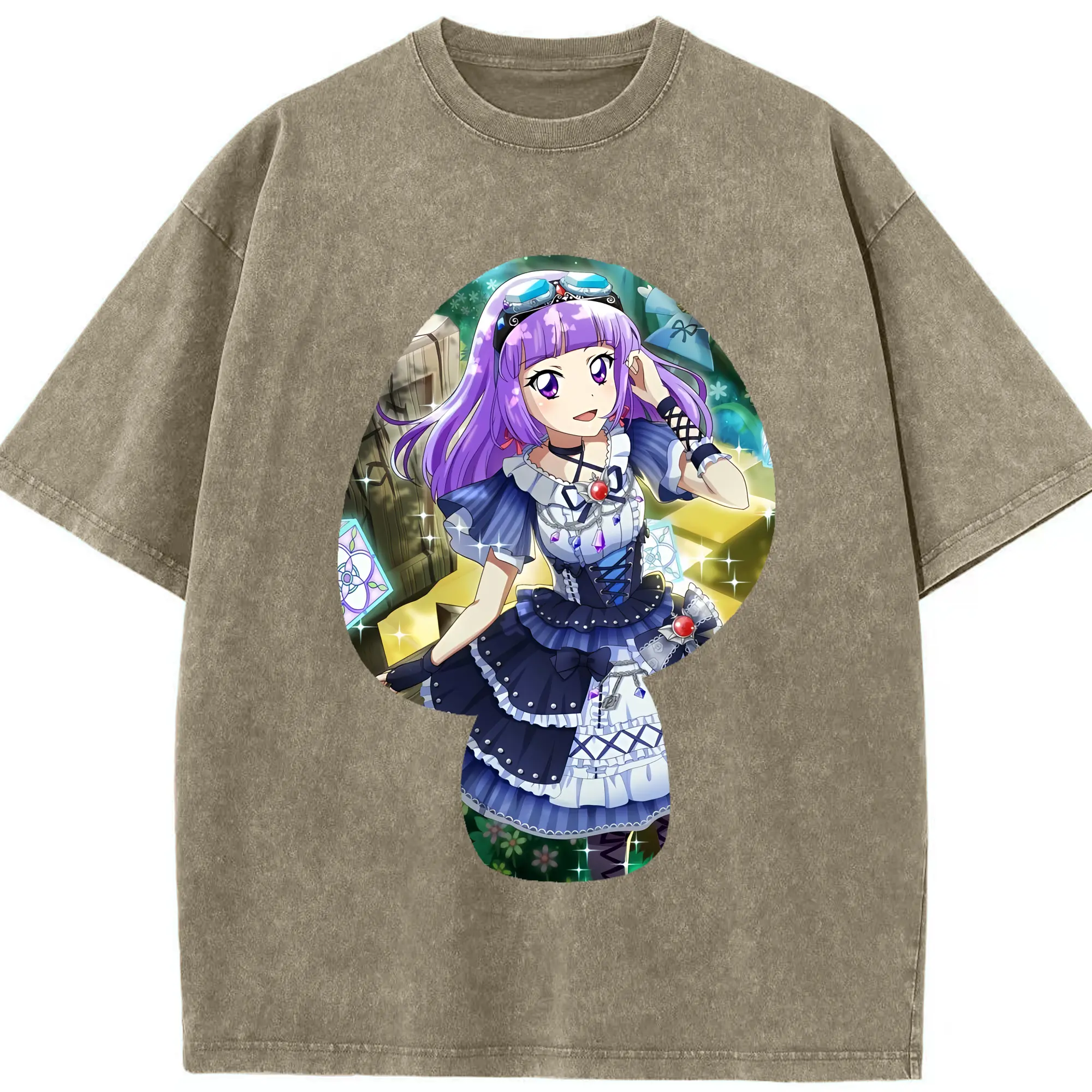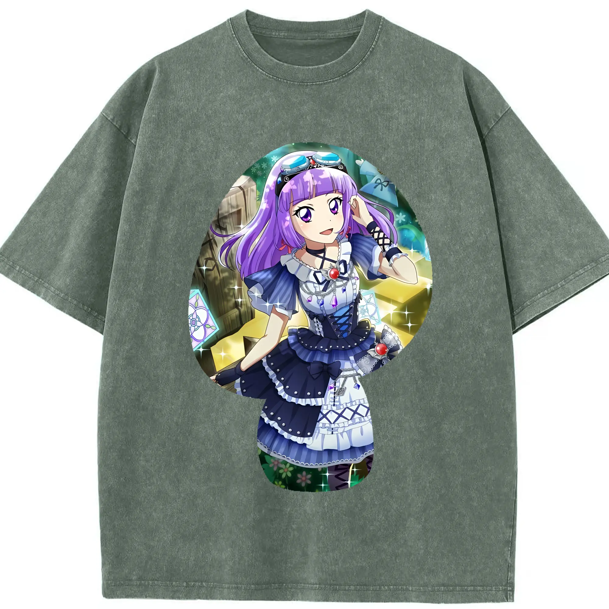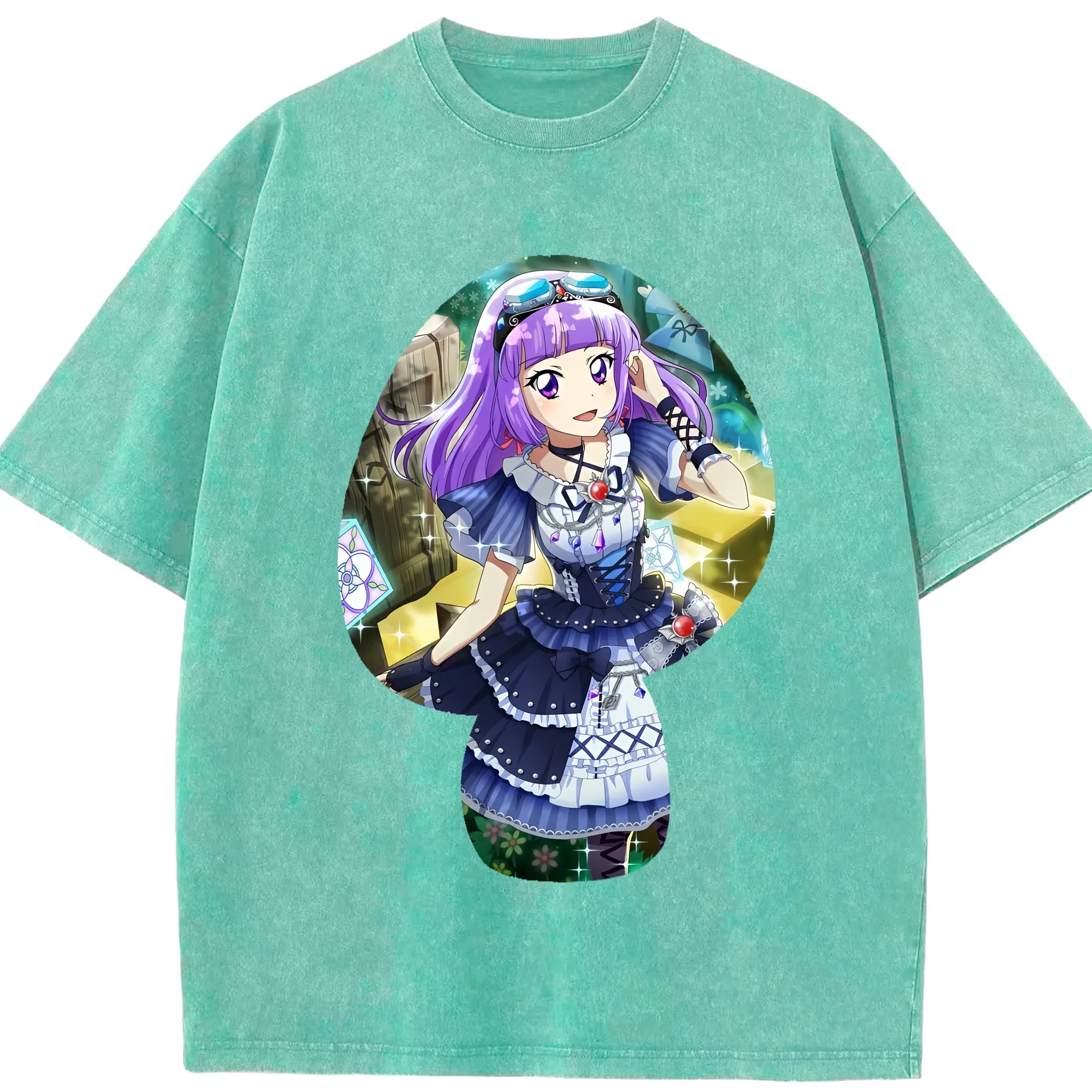 アイカツ グッズ 氷上 スミレ - 綿100% ヴィンテージ風 半袖Tシャツ ・ 背面プリント ・ 柔らか肌触り ・ 通気性 快適 ・ スポーツ カジュアル 外出用
