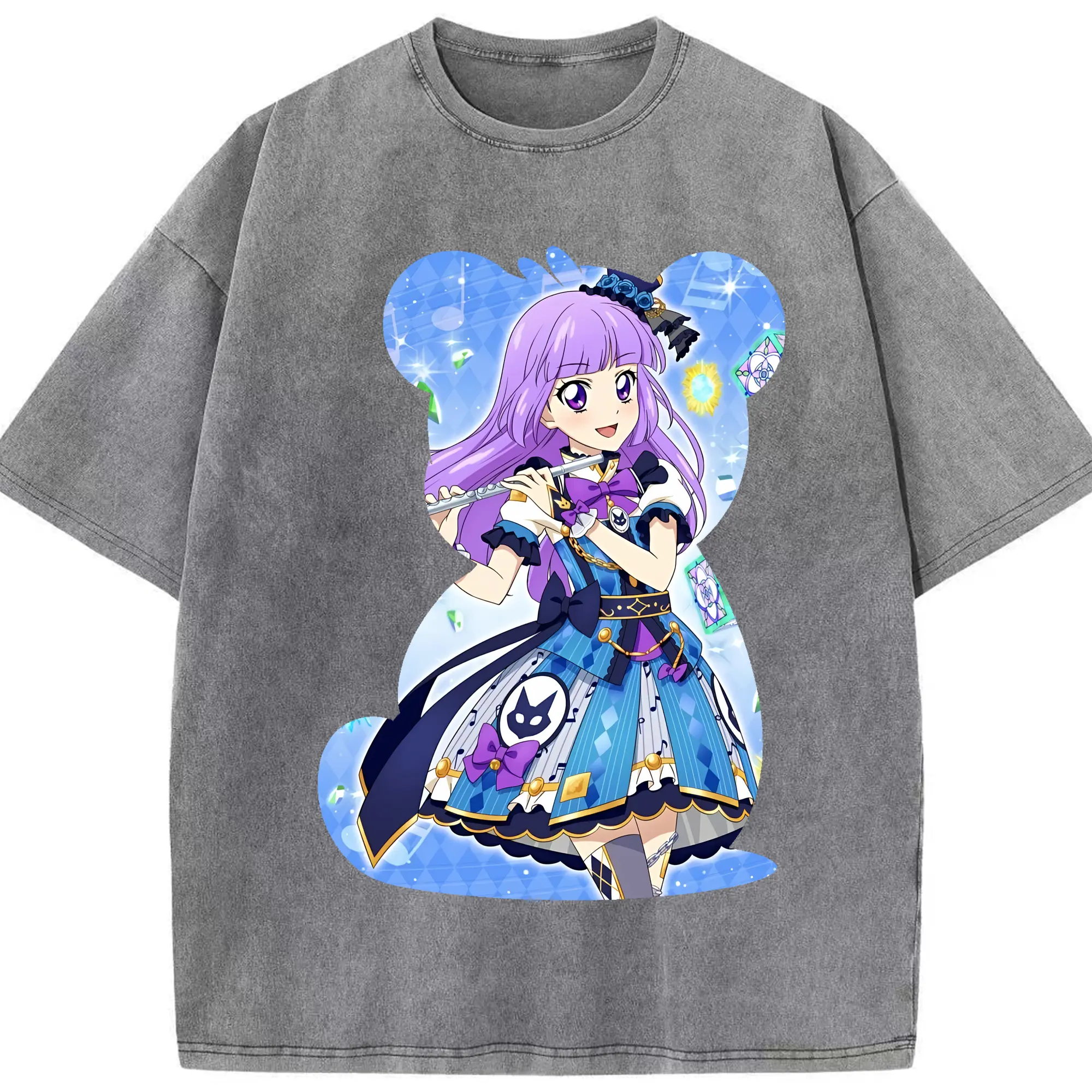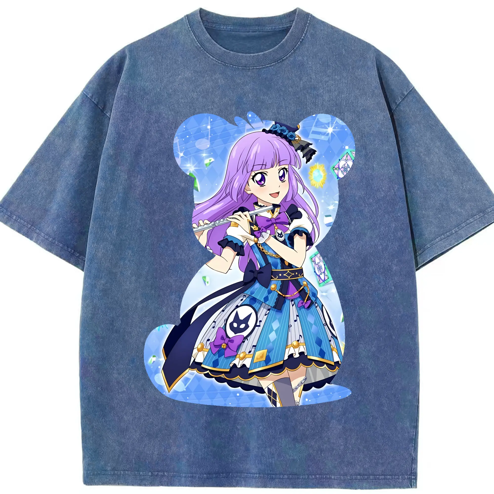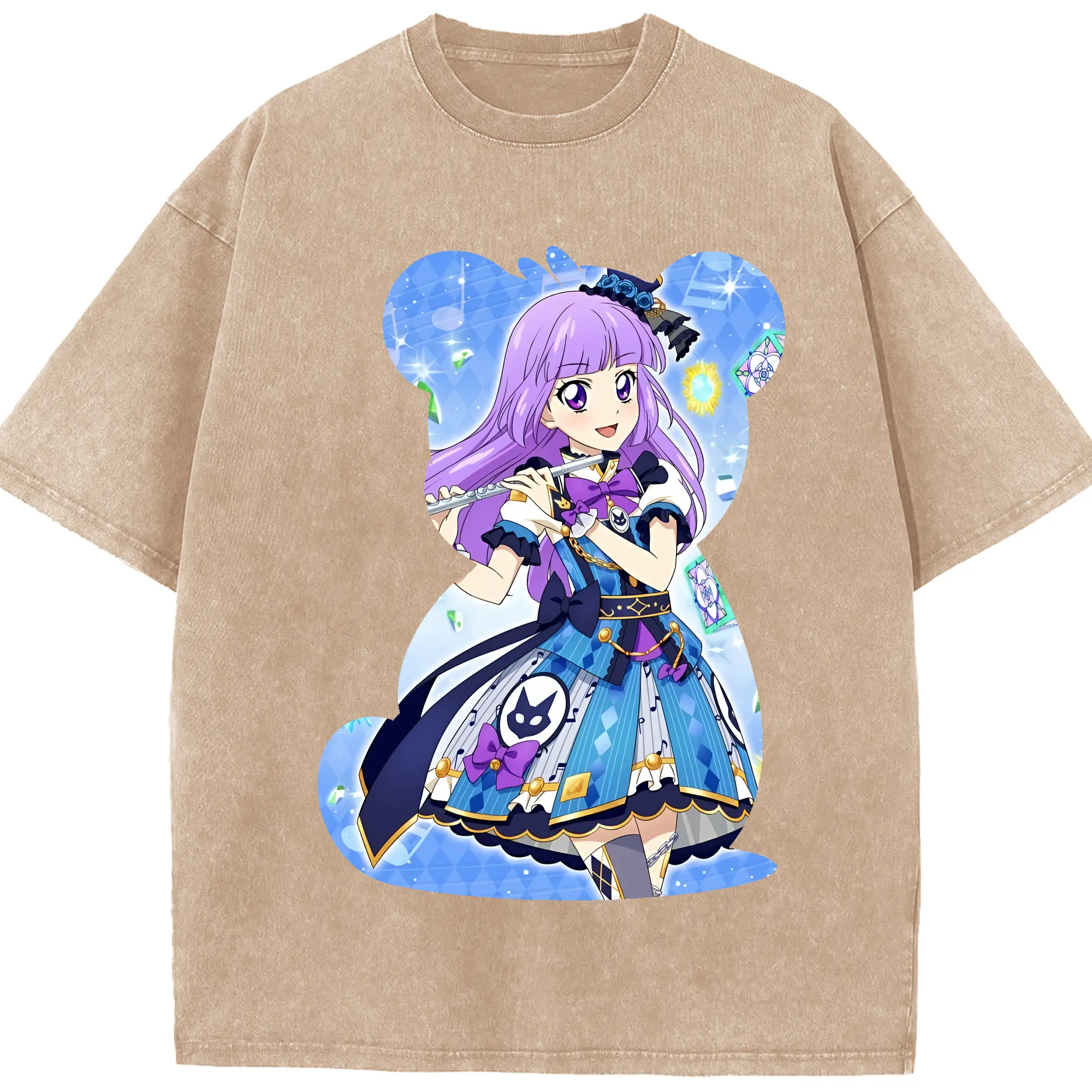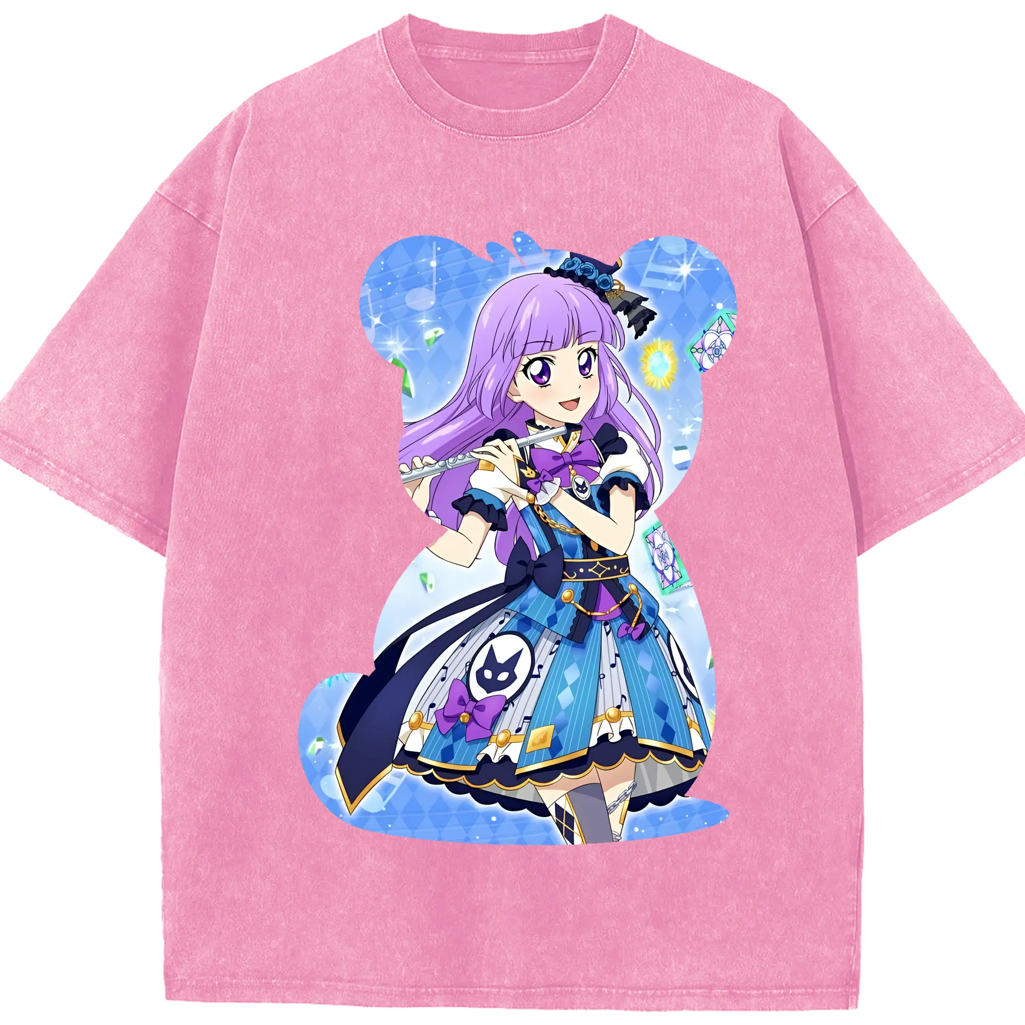 アイカツ グッズ 氷上 スミレ - 綿100% ヴィンテージ風 半袖Tシャツ ・ 背面プリント ・ 柔らか肌触り ・ 通気性 快適 ・ スポーツ カジュアル 外出用